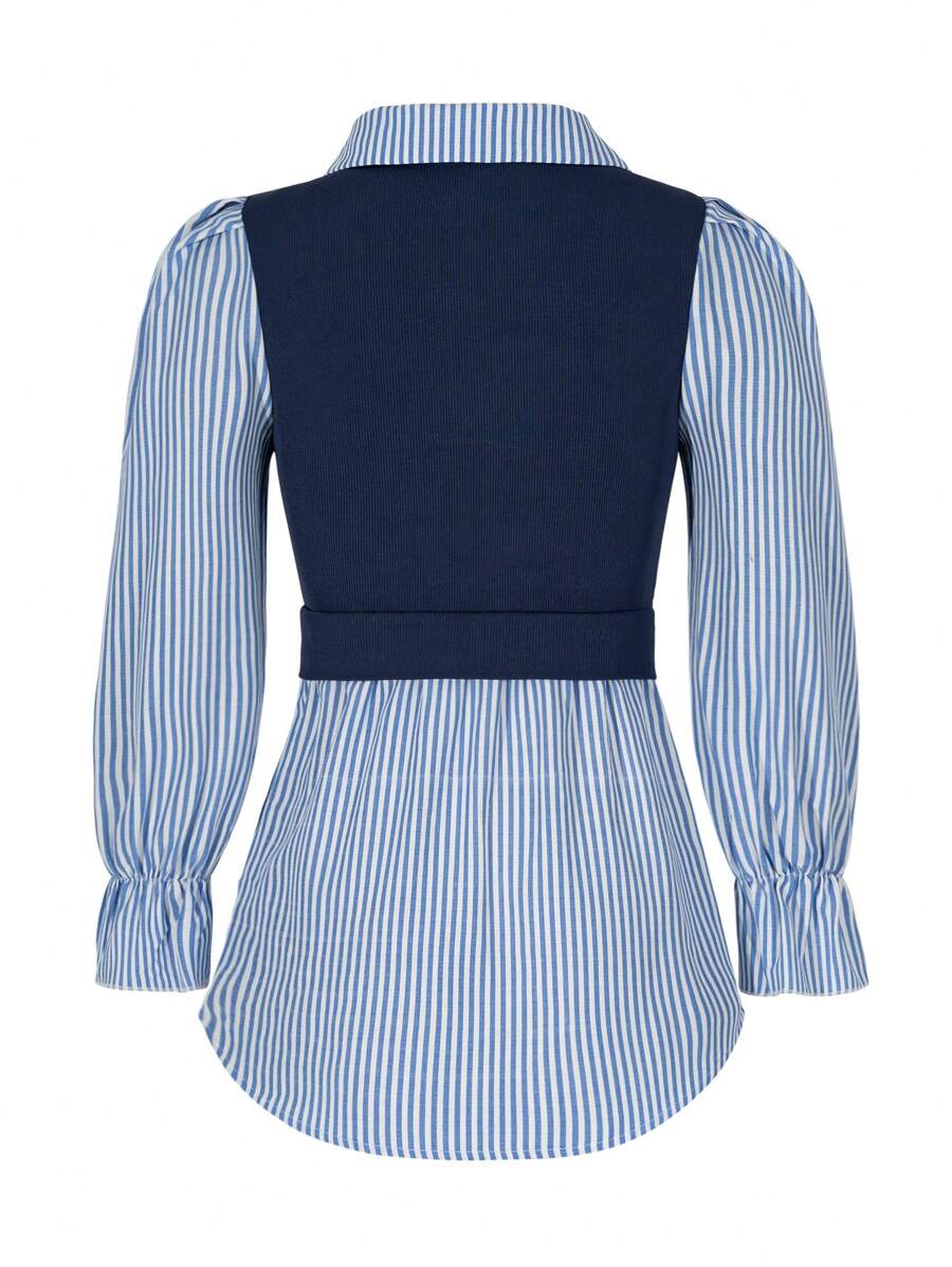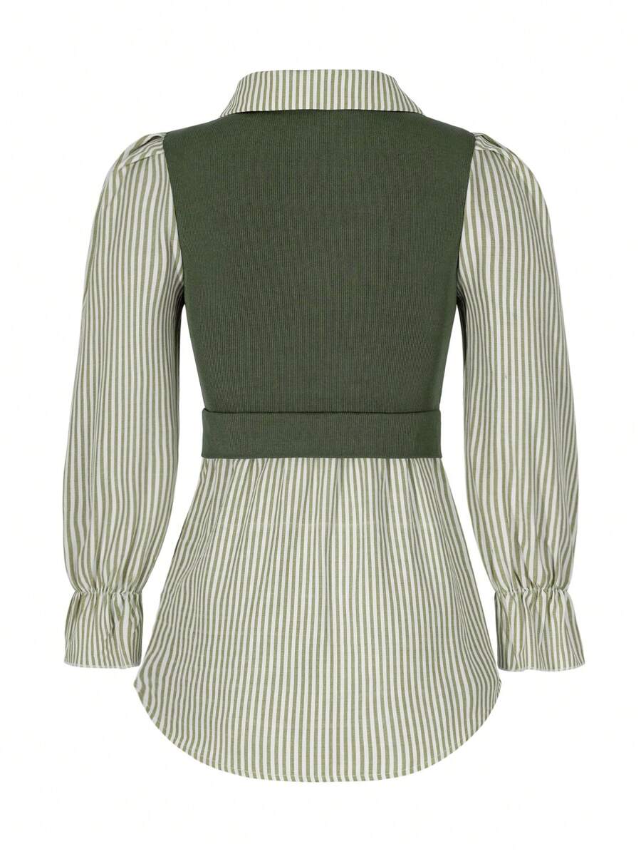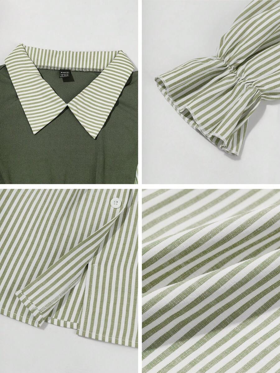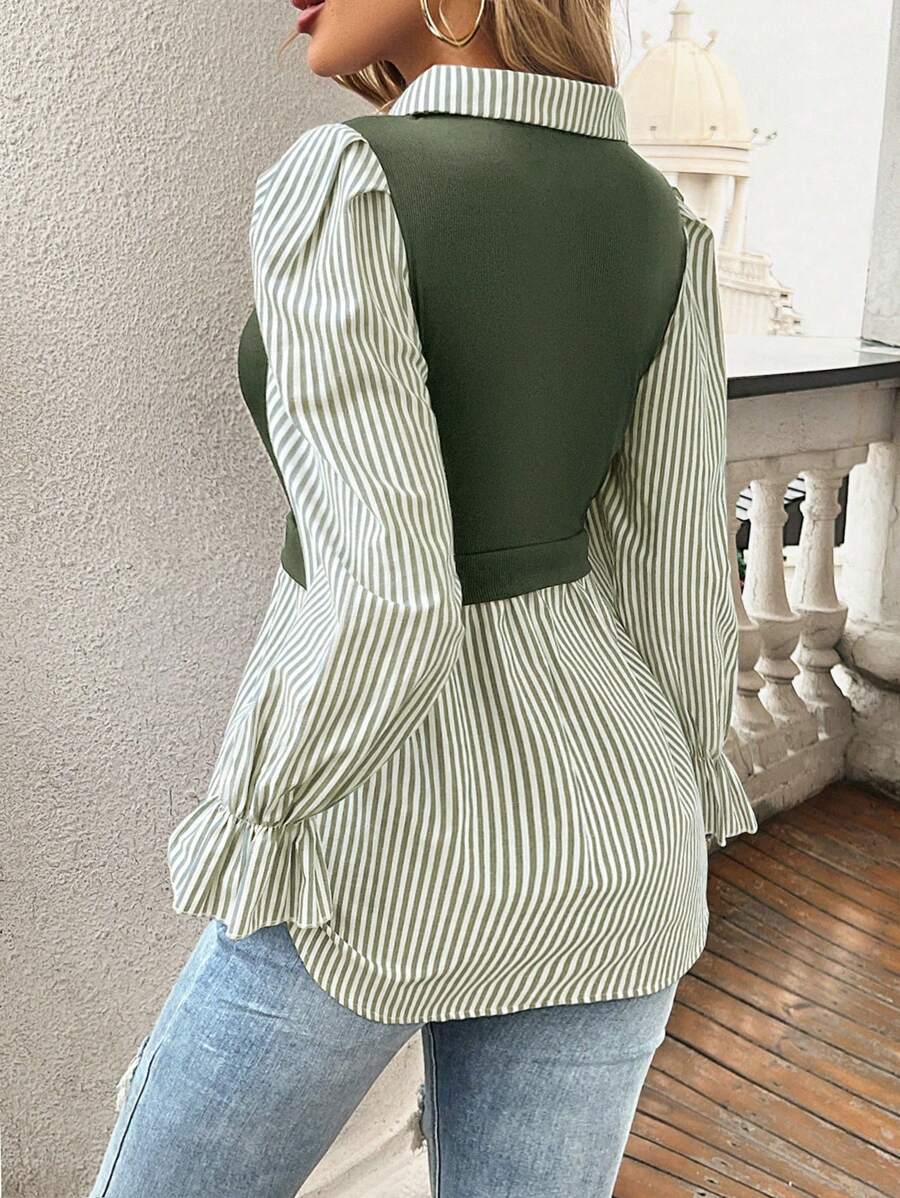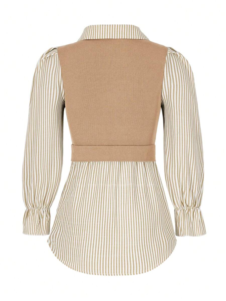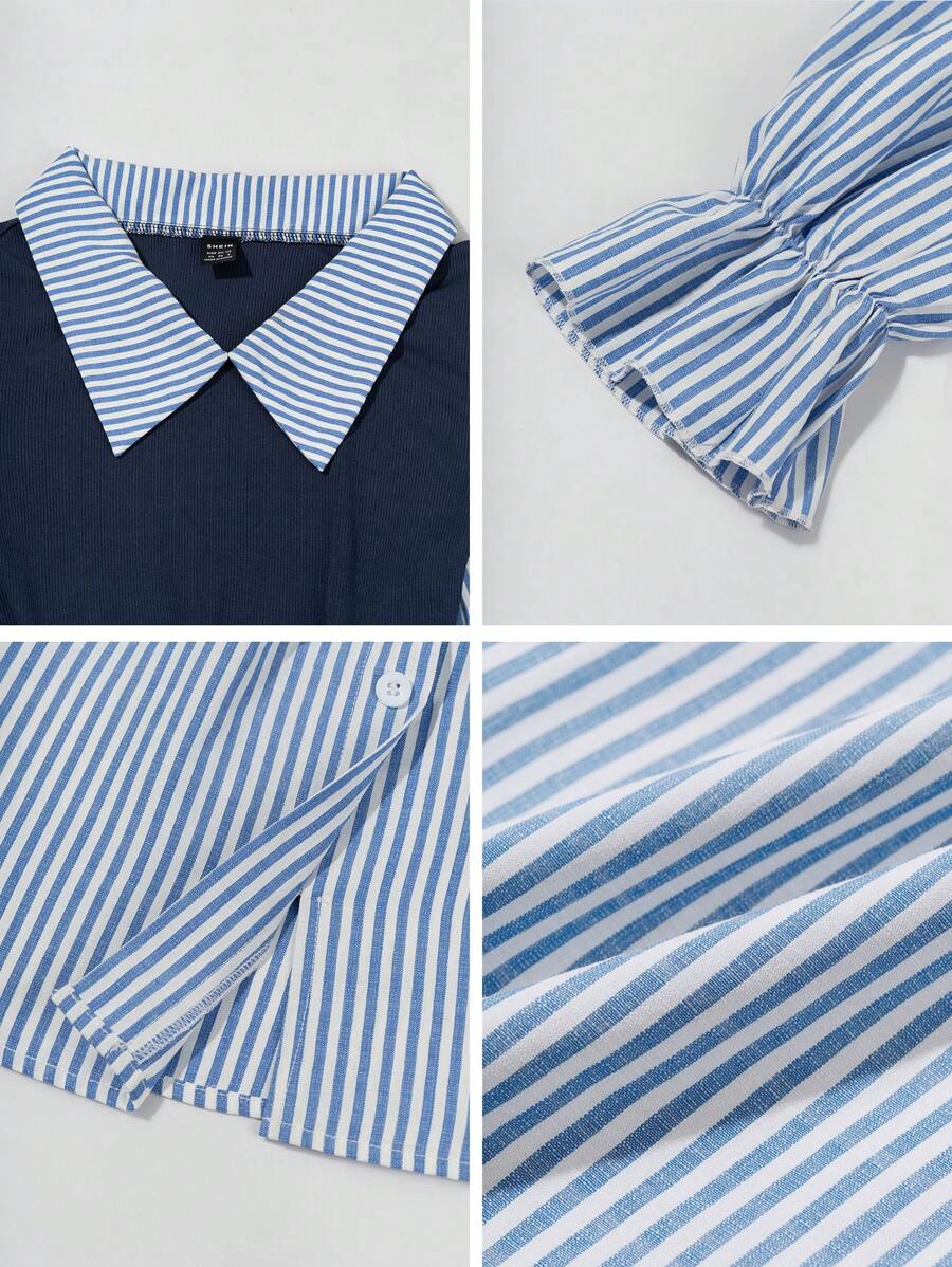 Chiquease Women's Casual Striped Patchwork Puff Sleeve 2 In 1 Top, Spring Autumn Fall Cloth For Women