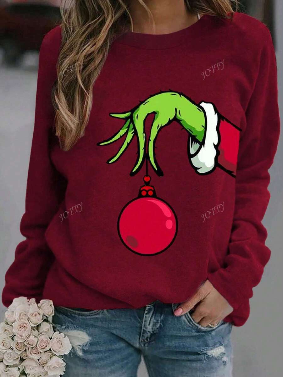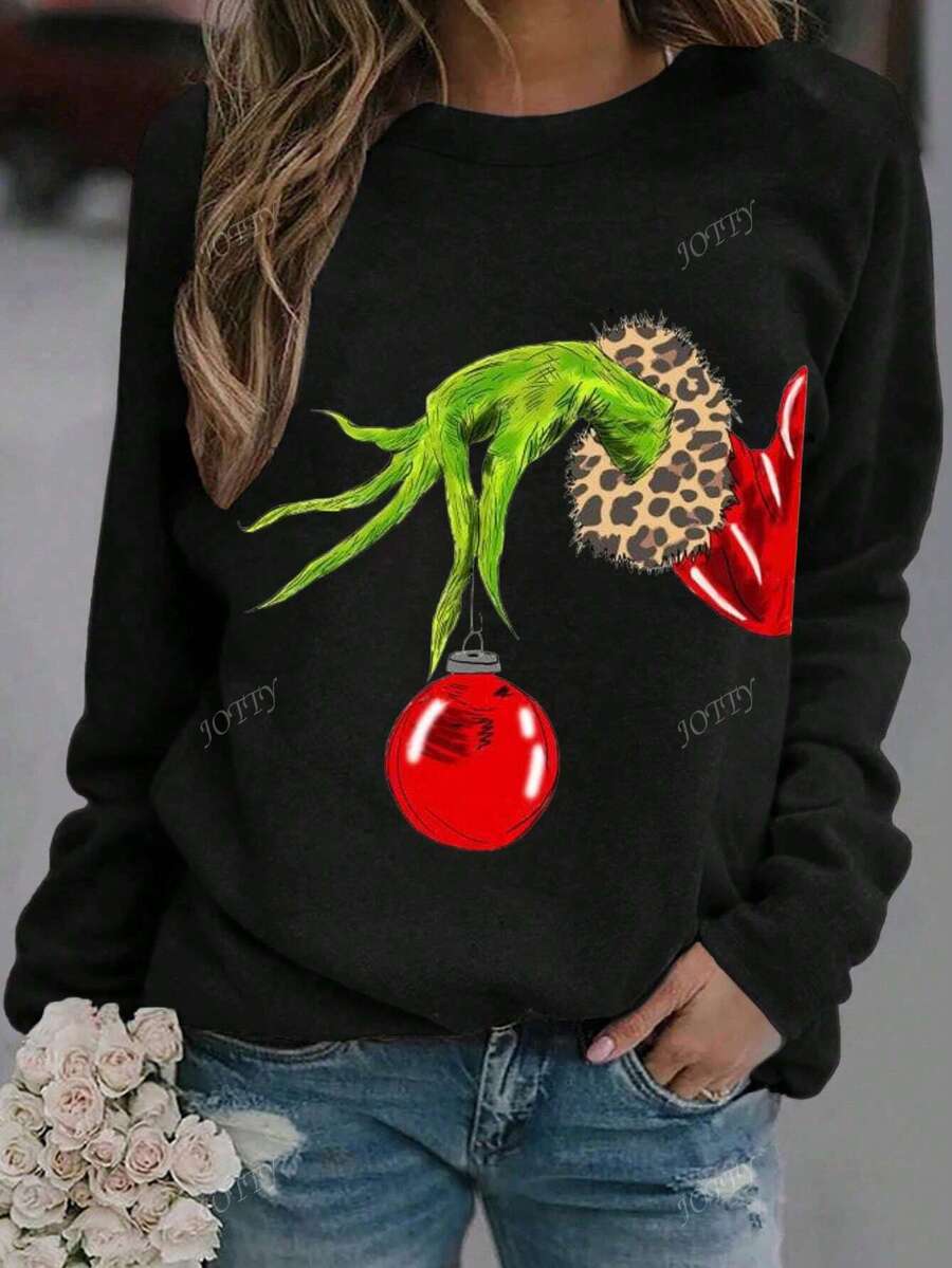 Christmas Casual Graphic Print Round Neck Long Sleeve T-Shirt
