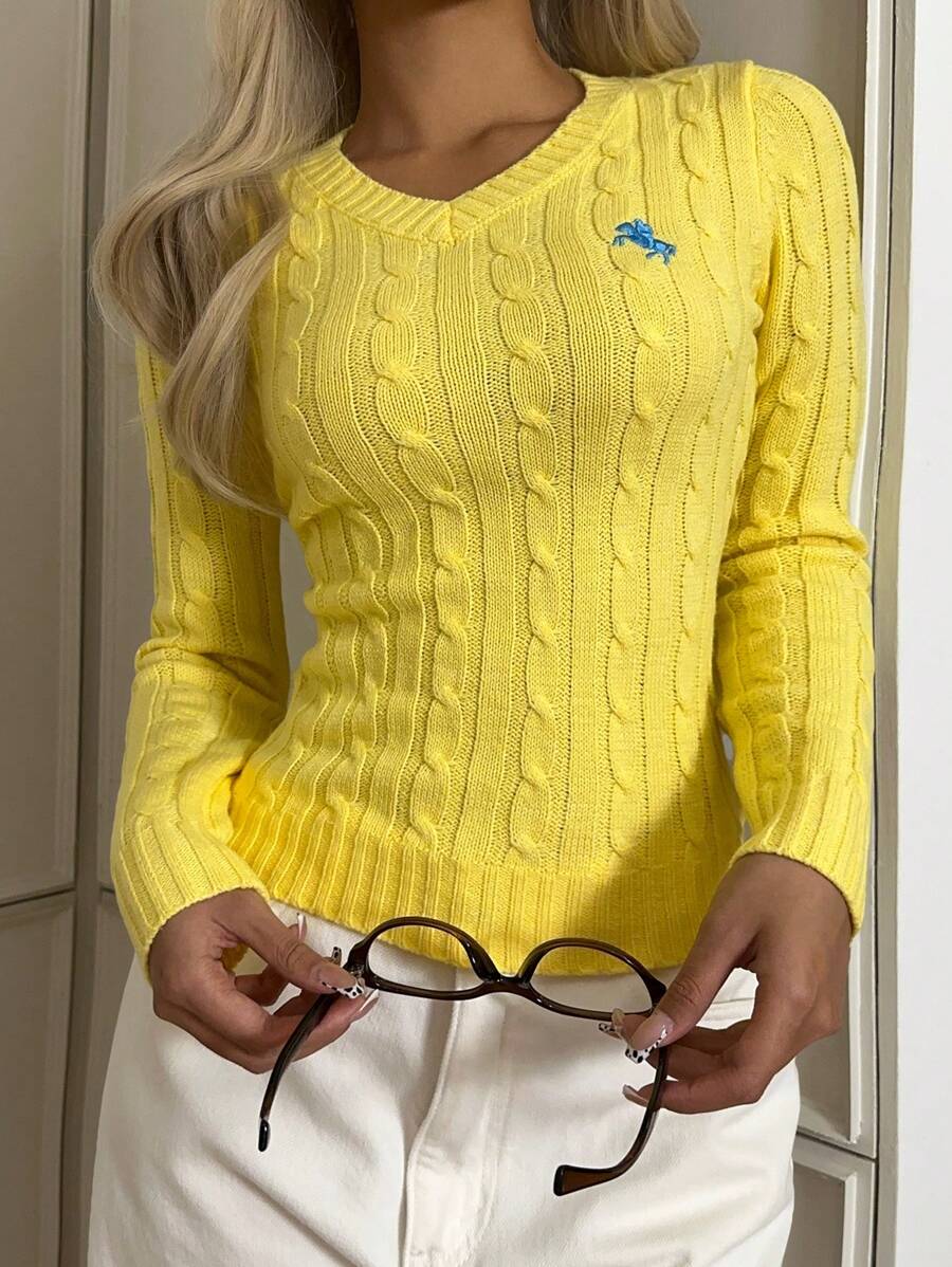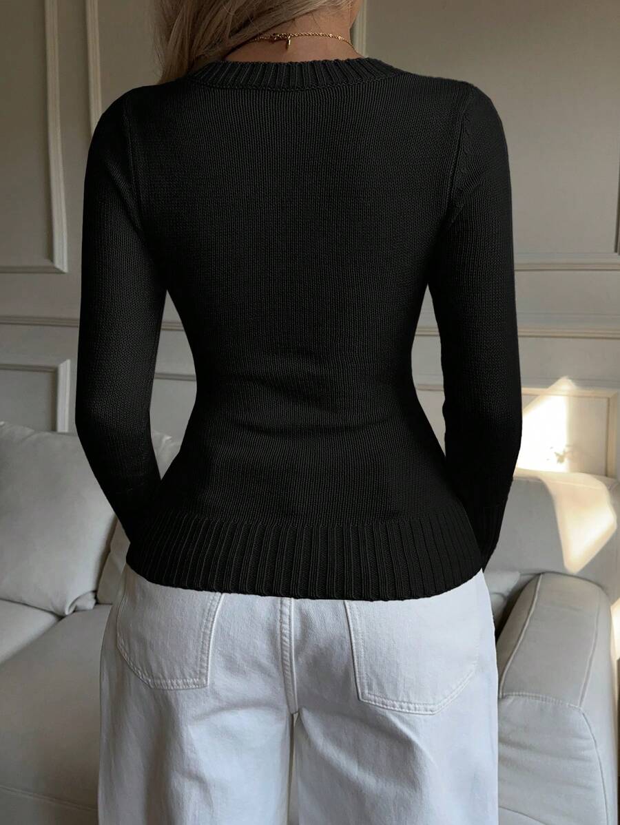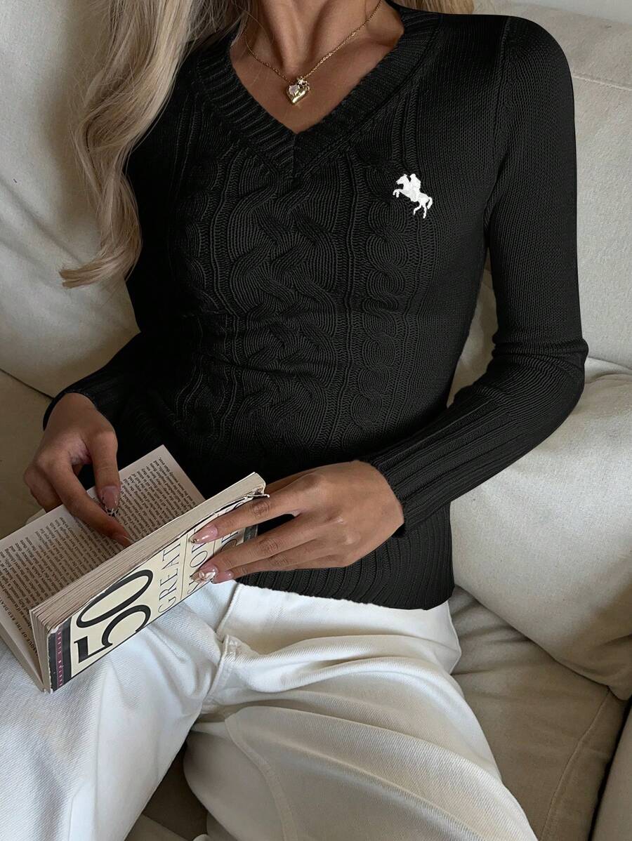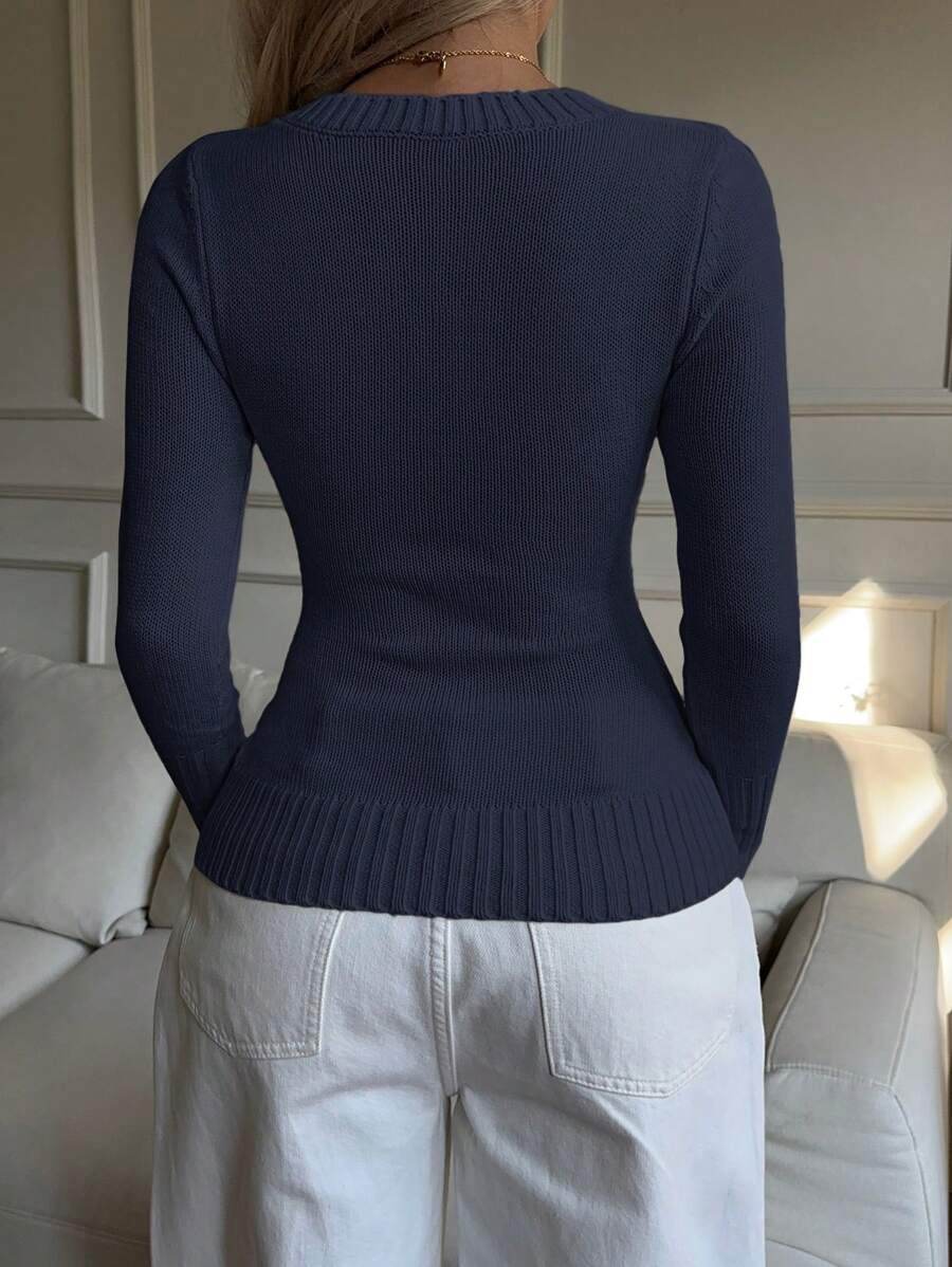 CovetEZ Ženski Casual Minimalistički Džemper sa Vezenim Detaljima, Majice za Školu u Jesen/Zimu
