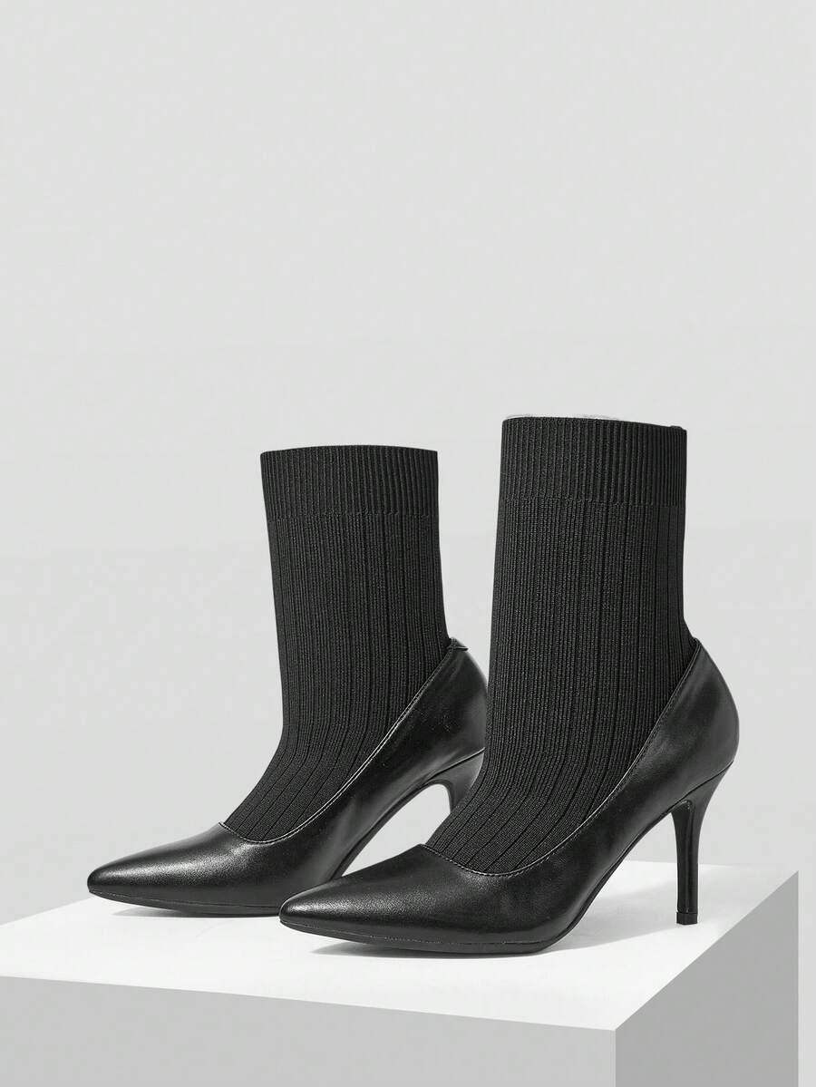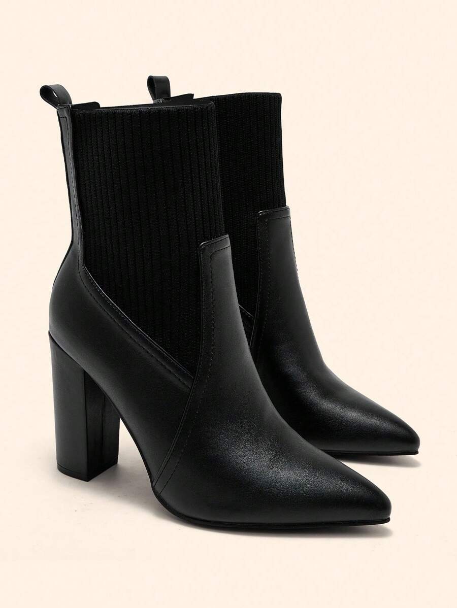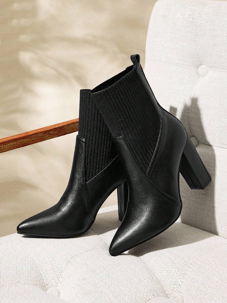 CUCCOO BASICS Ženske Čizme sa Špicastim Prstom i Debelim Petama - Crne, Elegantan Modni Sviđa se za Svaku Priliku - Srednje Visoke Čizme