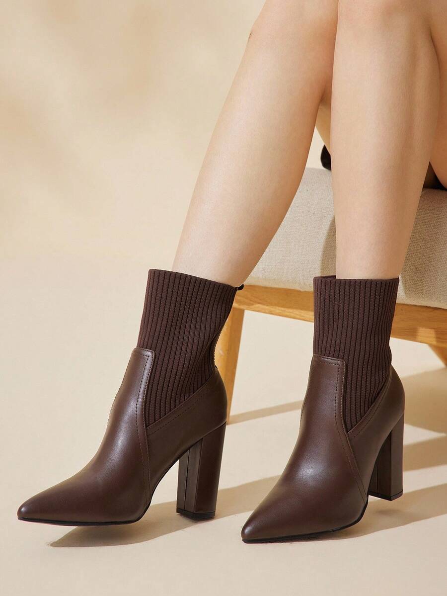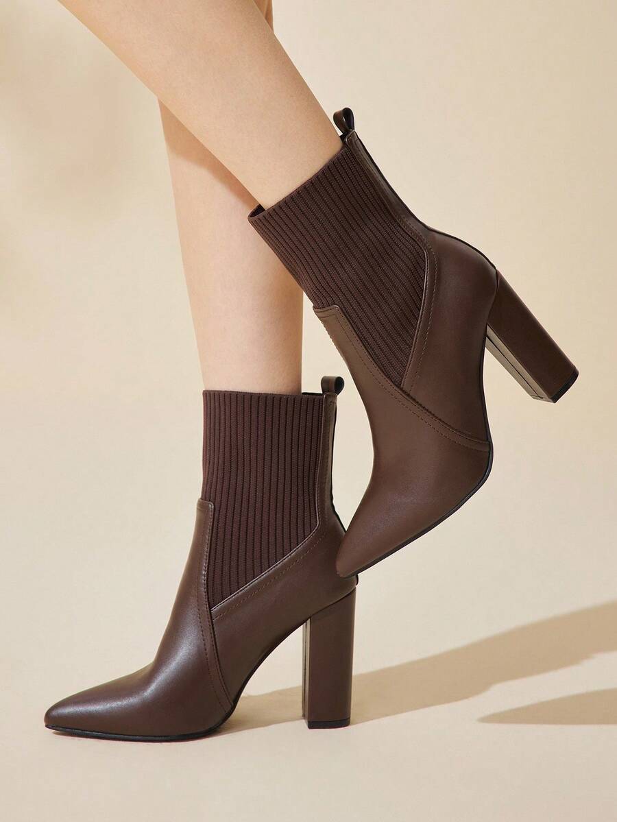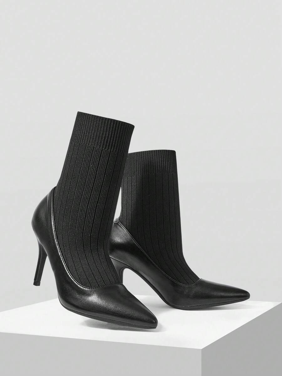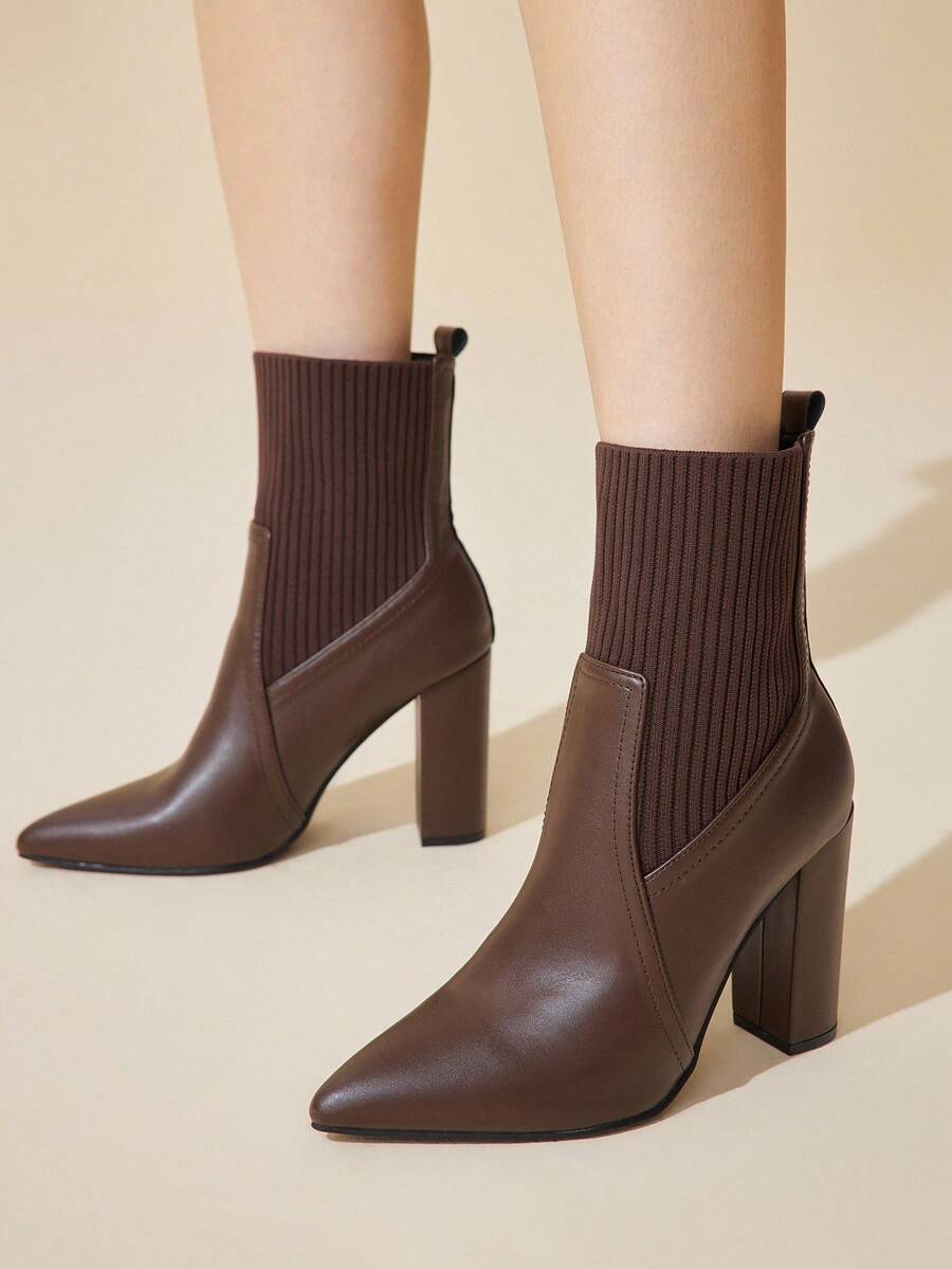 CUCCOO BASICS Ženske Čizme sa Špicastim Prstom i Debelim Petama - Crne, Elegantan Modni Sviđa se za Svaku Priliku - Srednje Visoke Čizme
