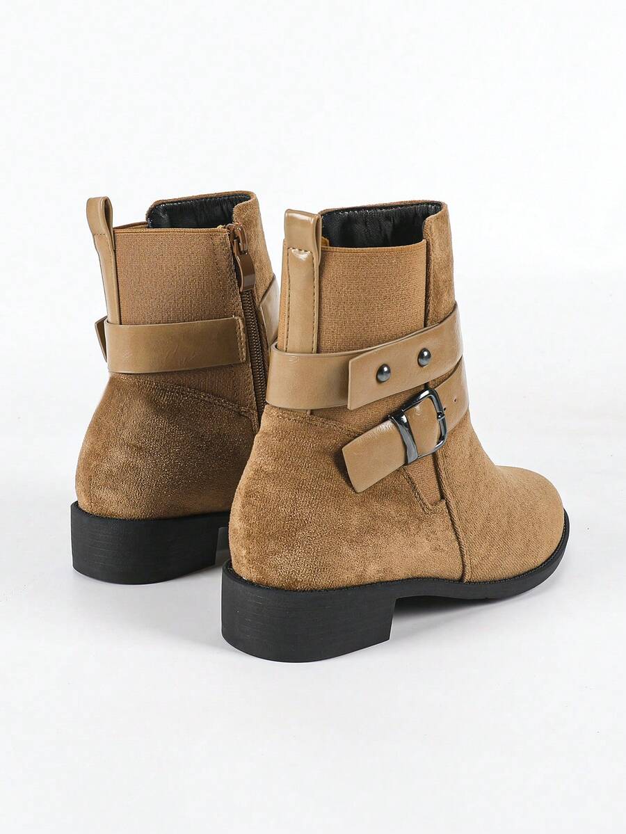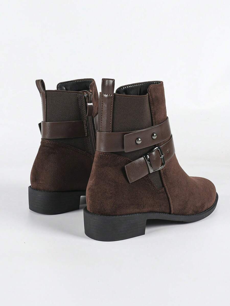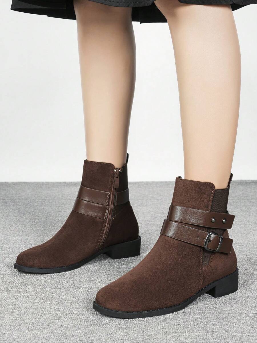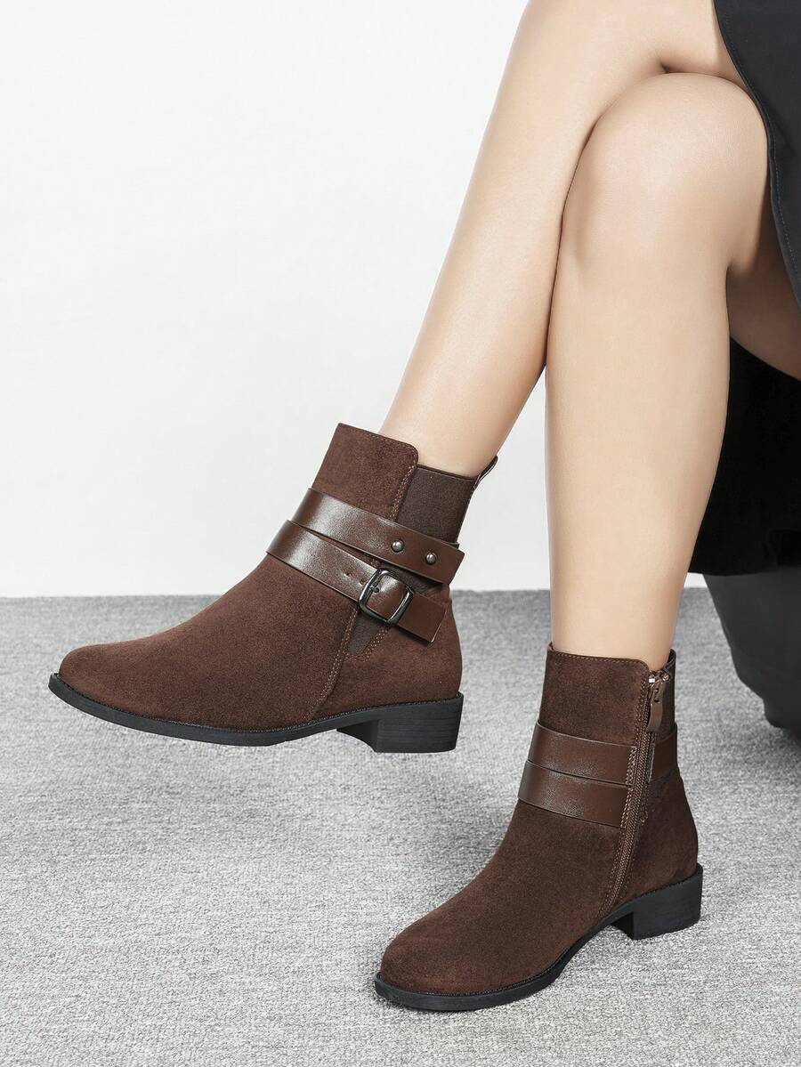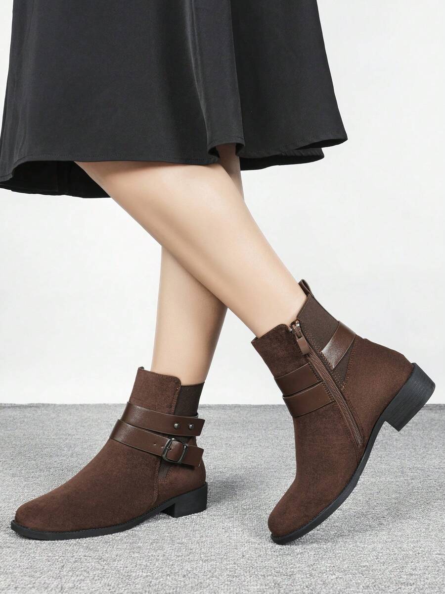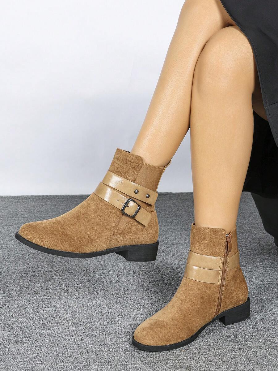 CUCCOO BIZCHIC Ženske modne nubuk kratke čizme, čizme sa debljim potpeticama za jesen/zimu, novi stil sa ukrasnim kopčanjem, bočna munja, elastična pozadina, udobne crne čizme za svakodnevne/Holidays
