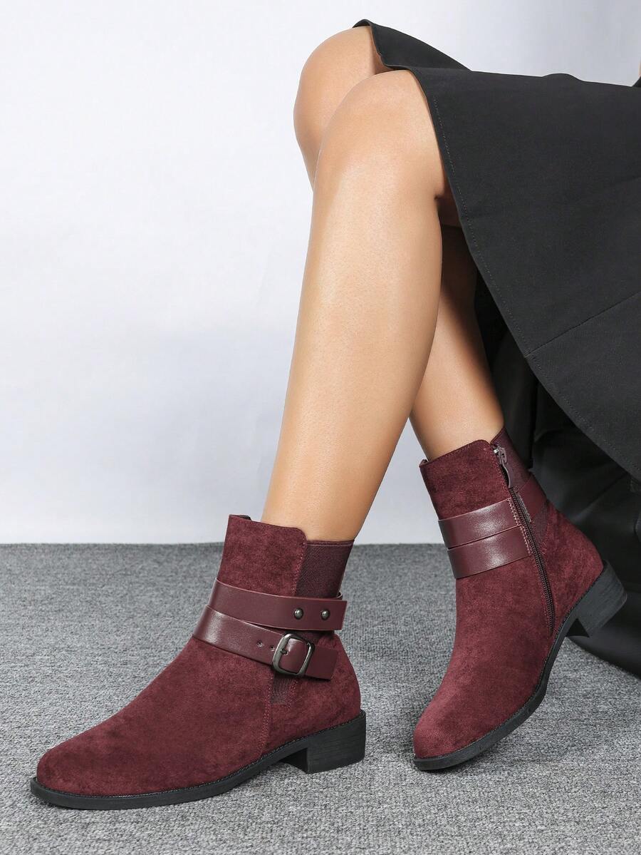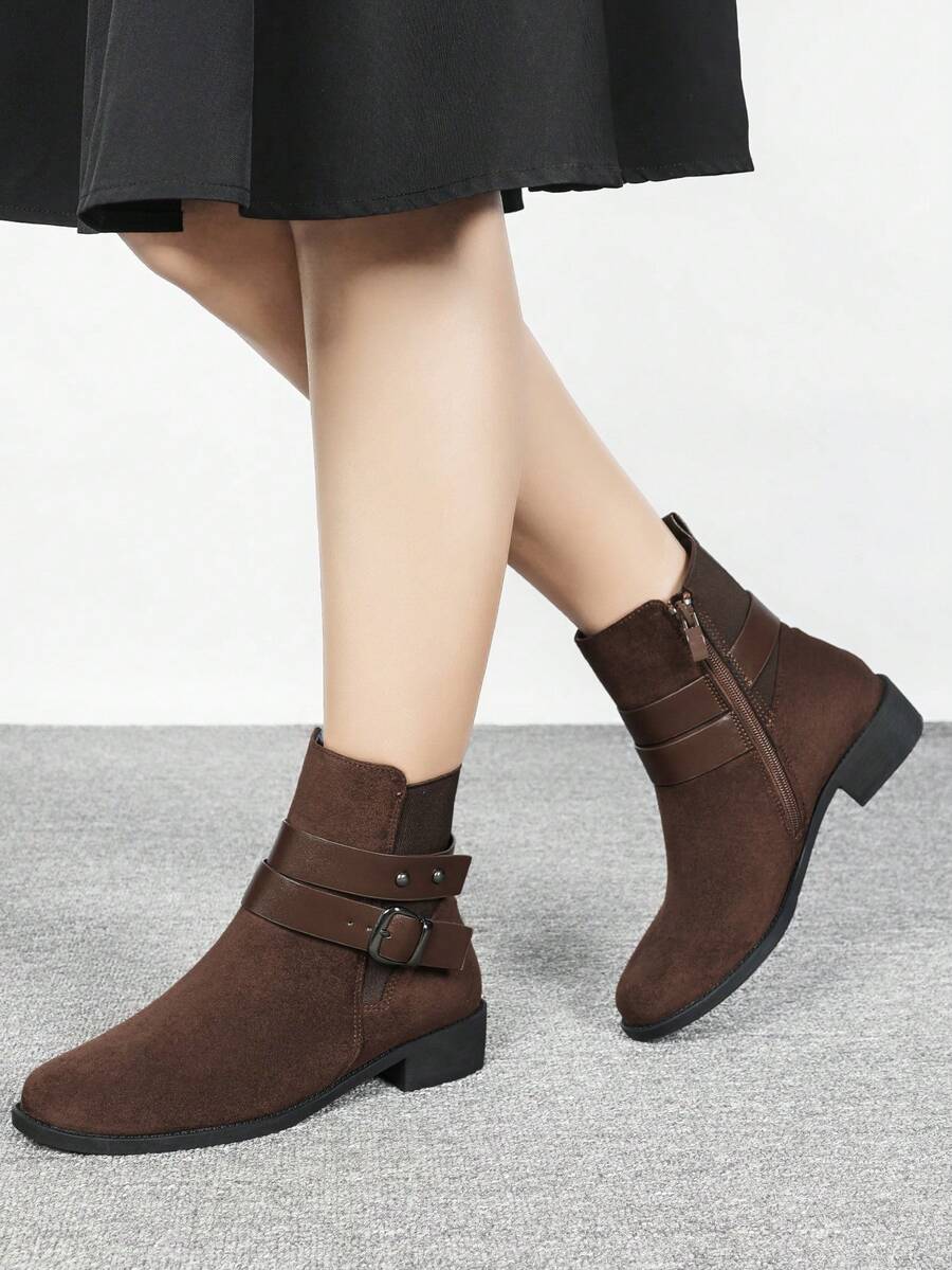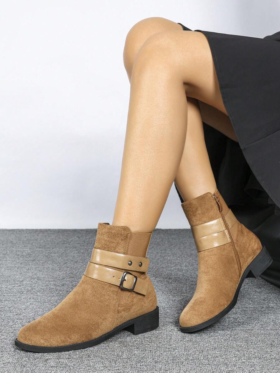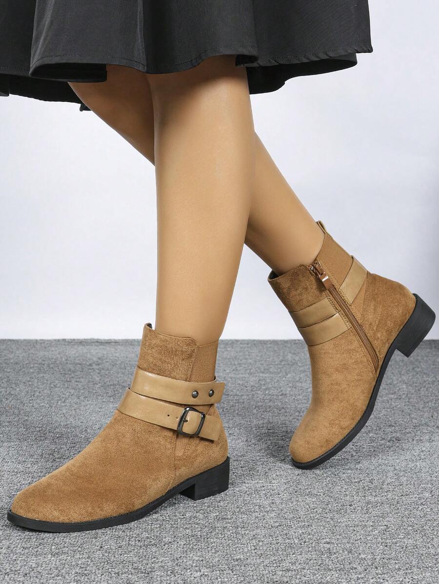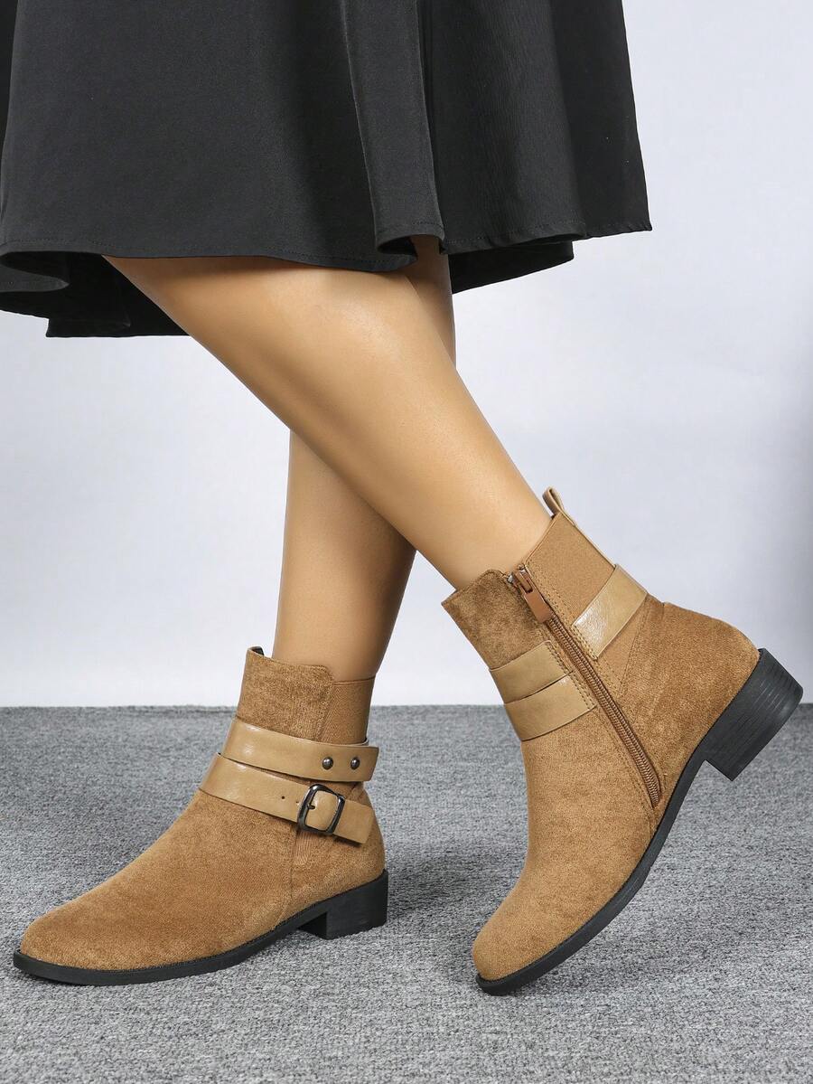 CUCCOO BIZCHIC Ženske modne nubuk kratke čizme, čizme sa debljim potpeticama za jesen/zimu, novi stil sa ukrasnim kopčanjem, bočna munja, elastična pozadina, udobne crne čizme za svakodnevne/Holidays