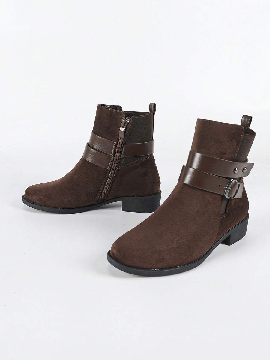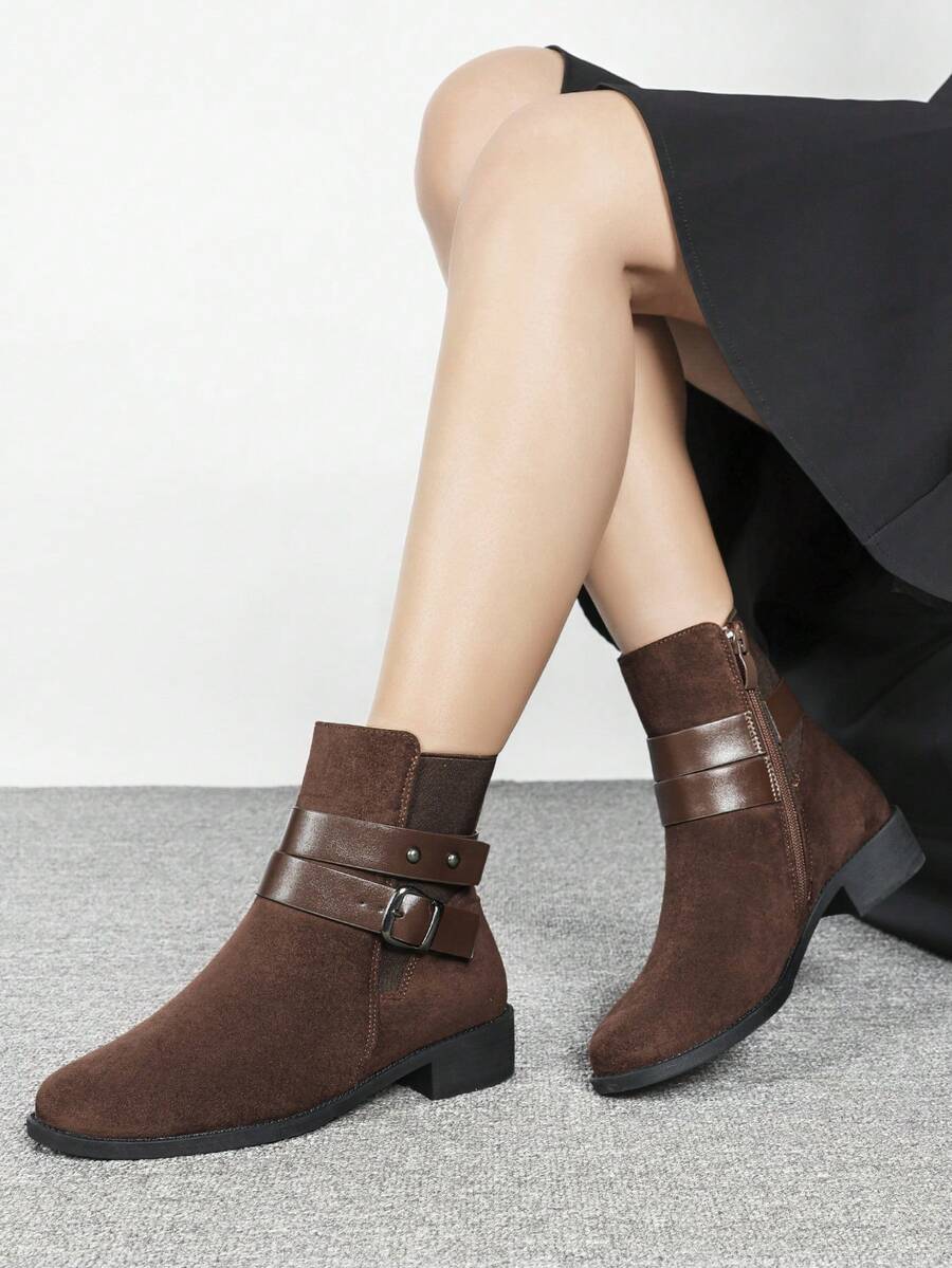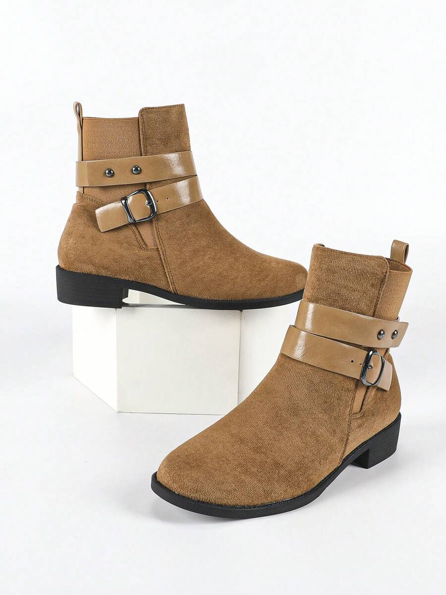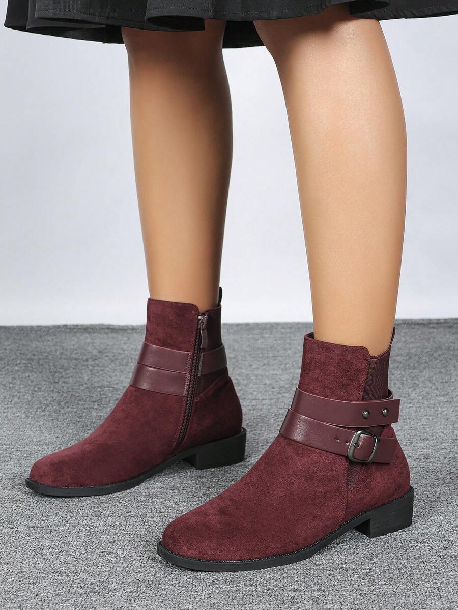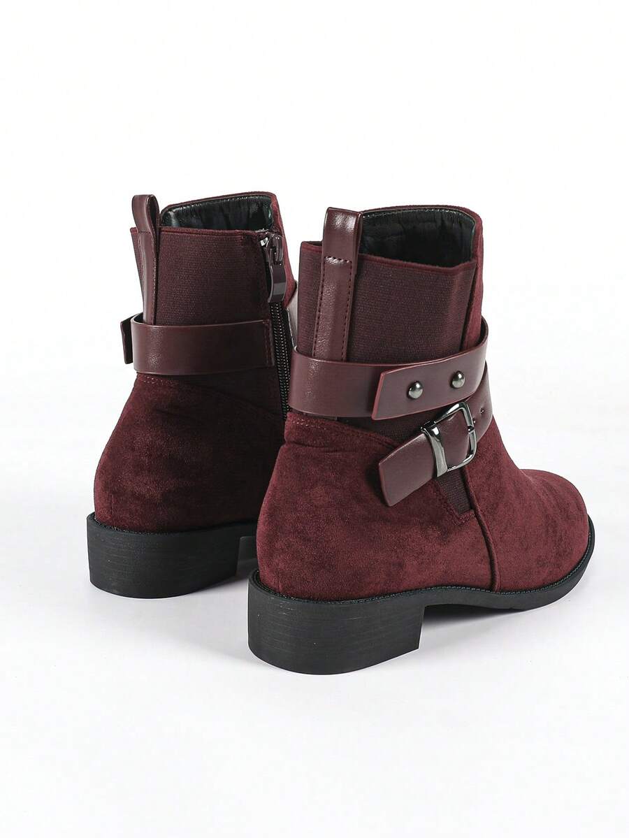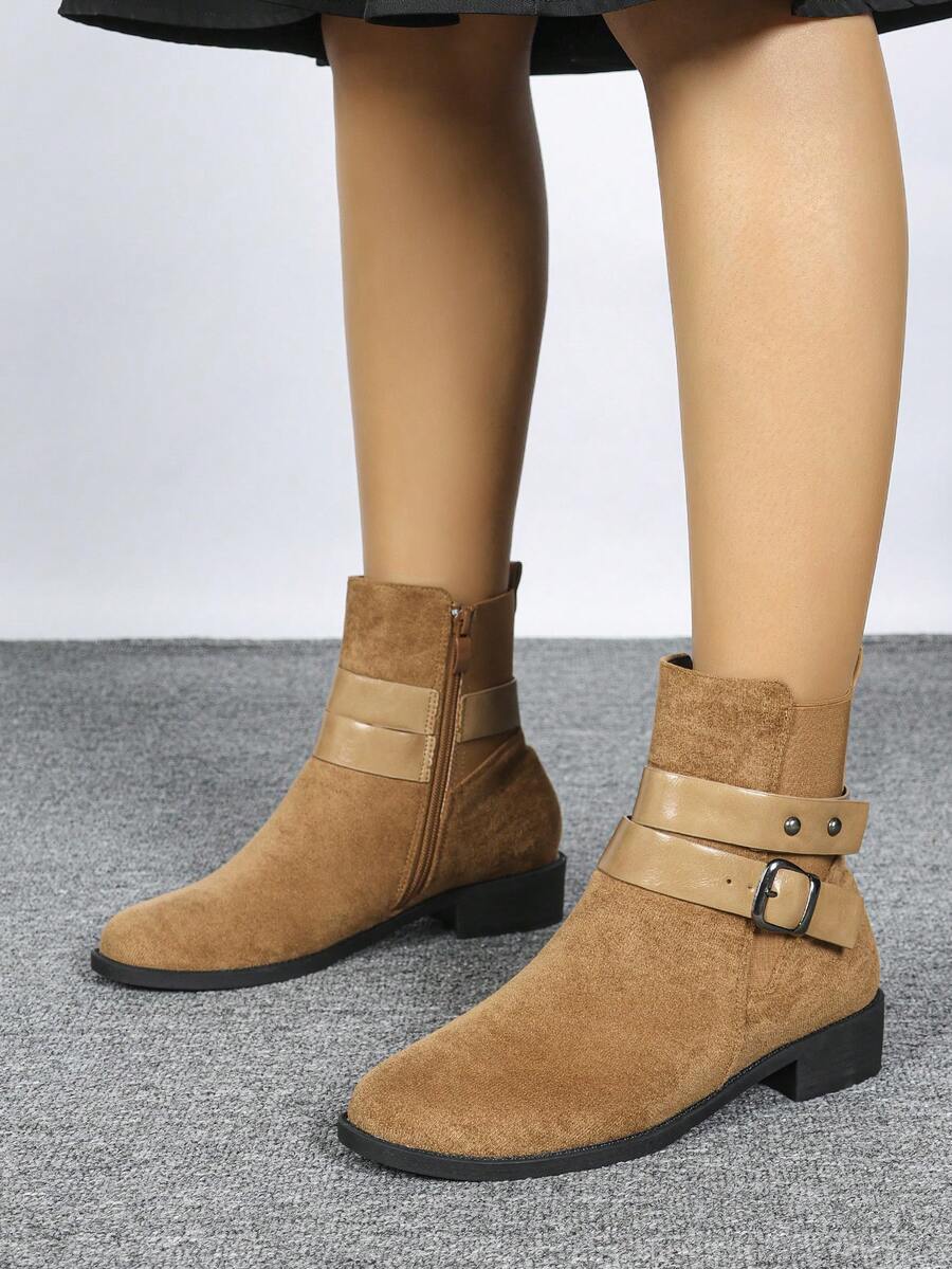 CUCCOO BIZCHIC Ženske modne nubuk kratke čizme, čizme sa debljim potpeticama za jesen/zimu, novi stil sa ukrasnim kopčanjem, bočna munja, elastična pozadina, udobne crne čizme za svakodnevne/Holidays