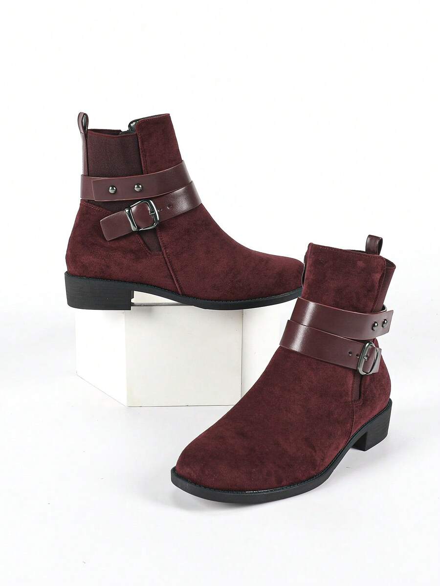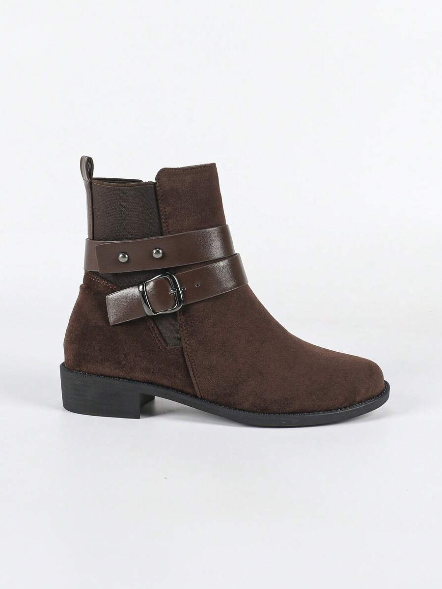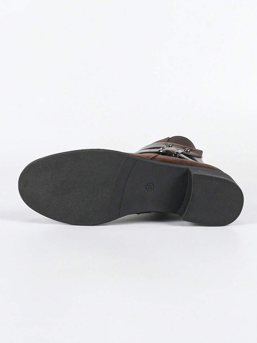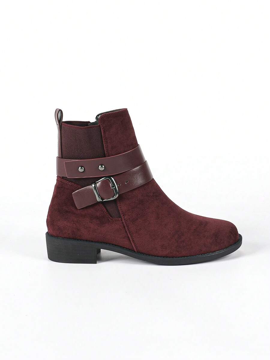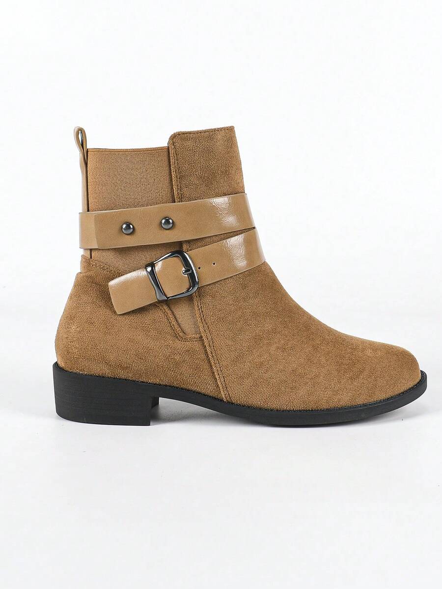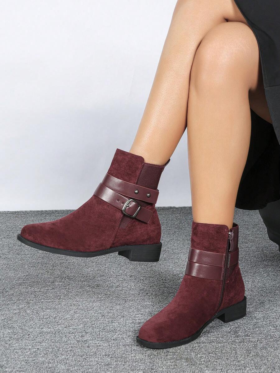 CUCCOO BIZCHIC Ženske modne nubuk kratke čizme, čizme sa debljim potpeticama za jesen/zimu, novi stil sa ukrasnim kopčanjem, bočna munja, elastična pozadina, udobne crne čizme za svakodnevne/Holidays