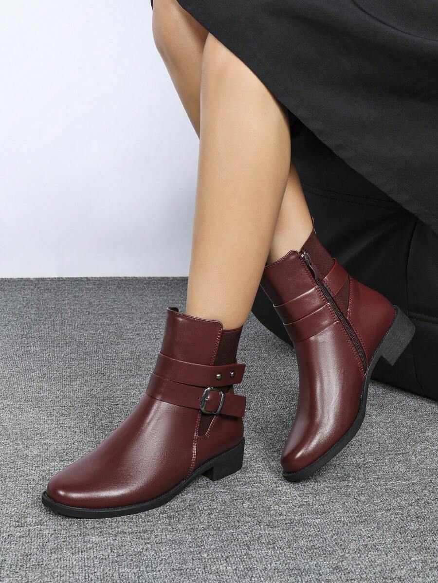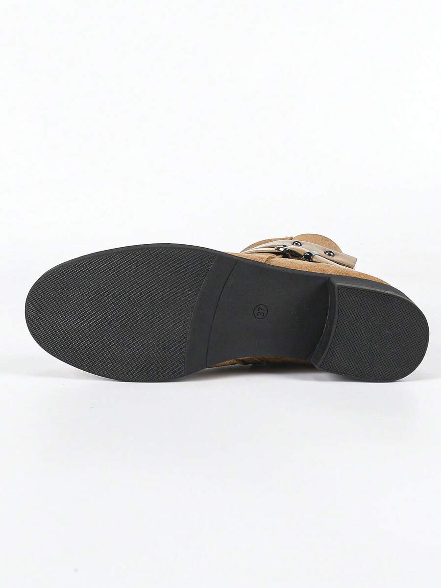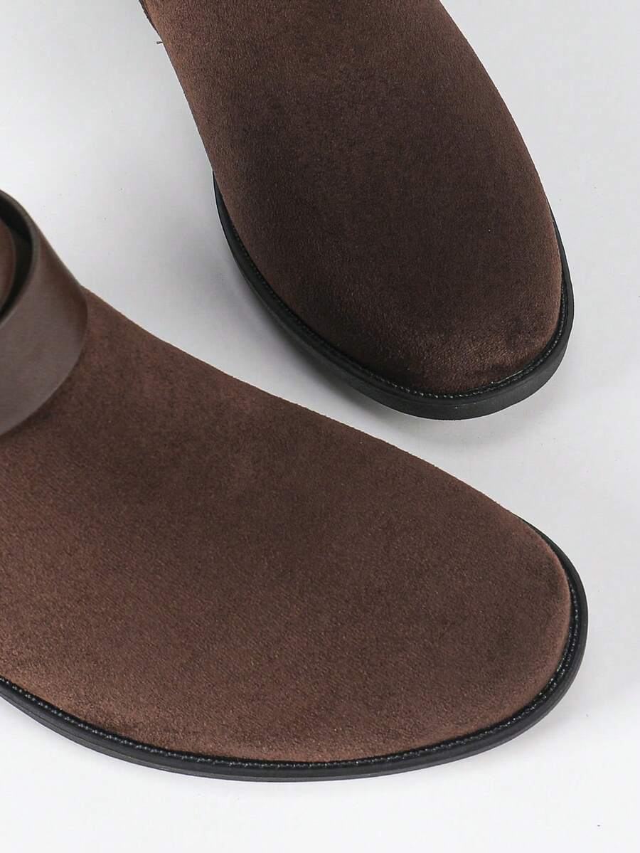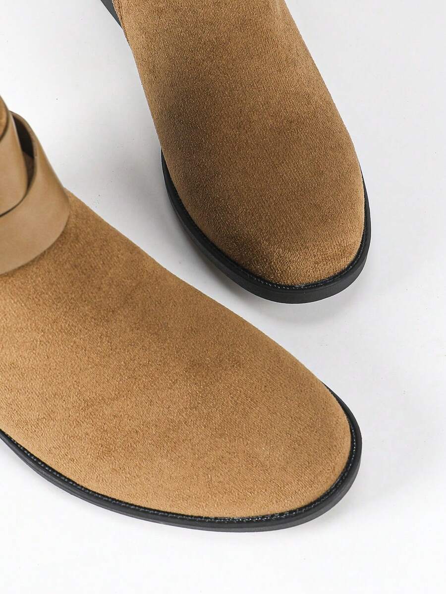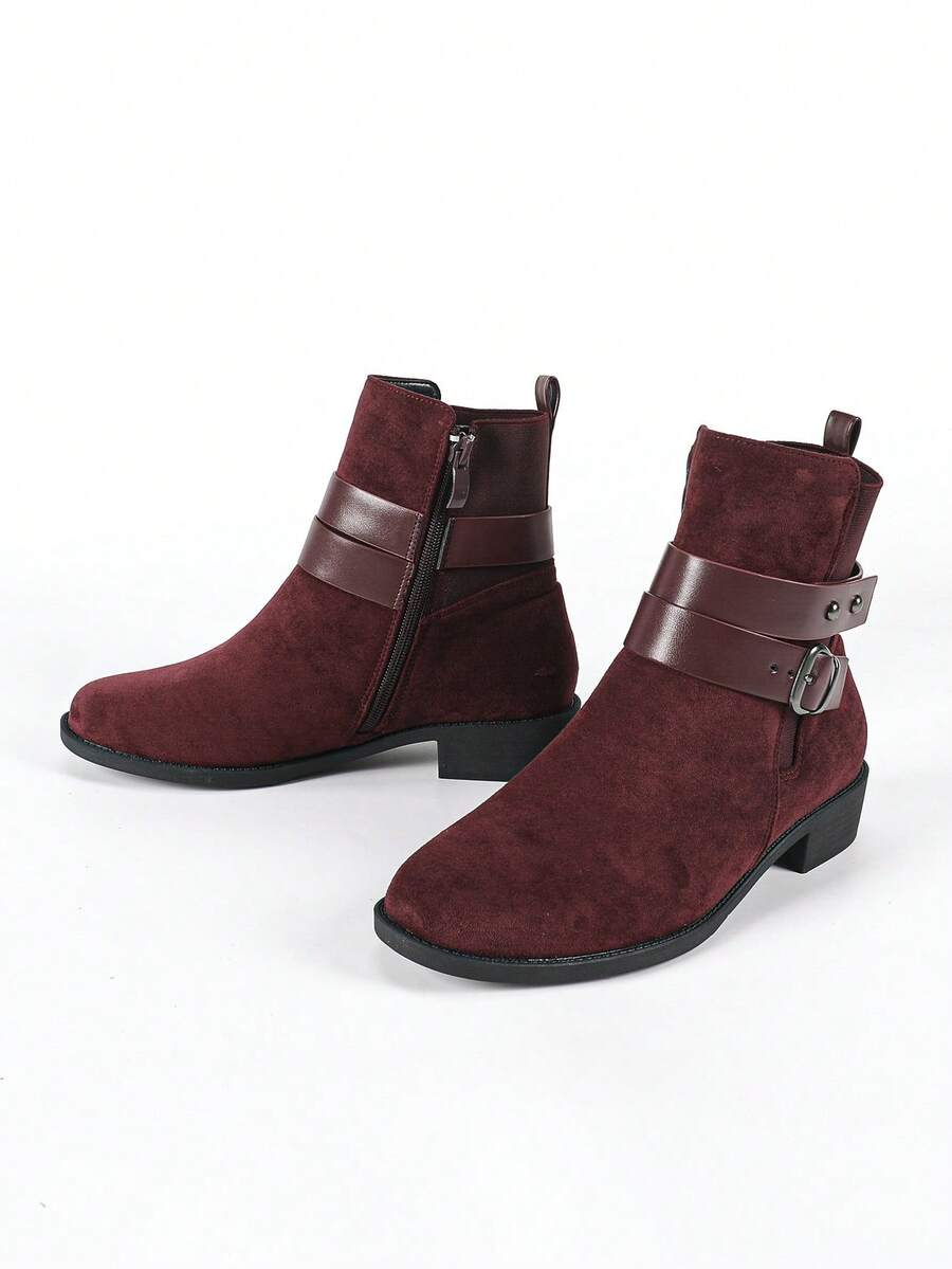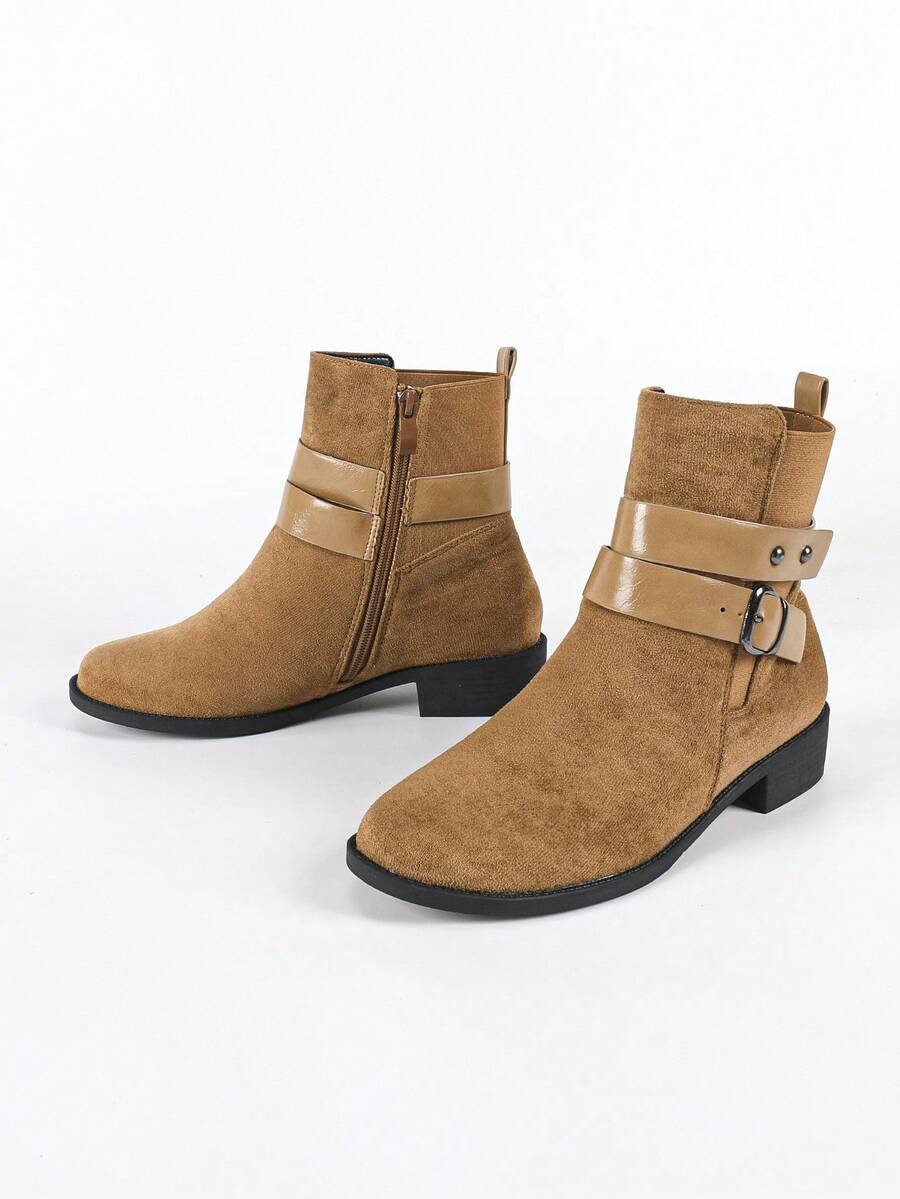 CUCCOO BIZCHIC Ženske modne nubuk kratke čizme, čizme sa debljim potpeticama za jesen/zimu, novi stil sa ukrasnim kopčanjem, bočna munja, elastična pozadina, udobne crne čizme za svakodnevne/Holidays