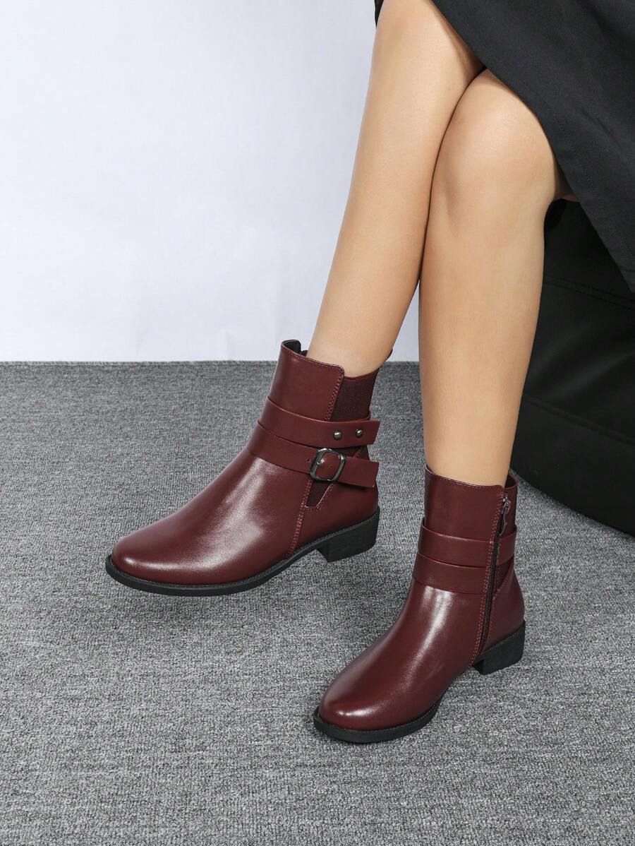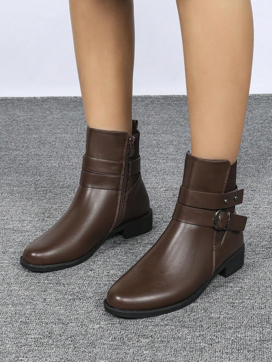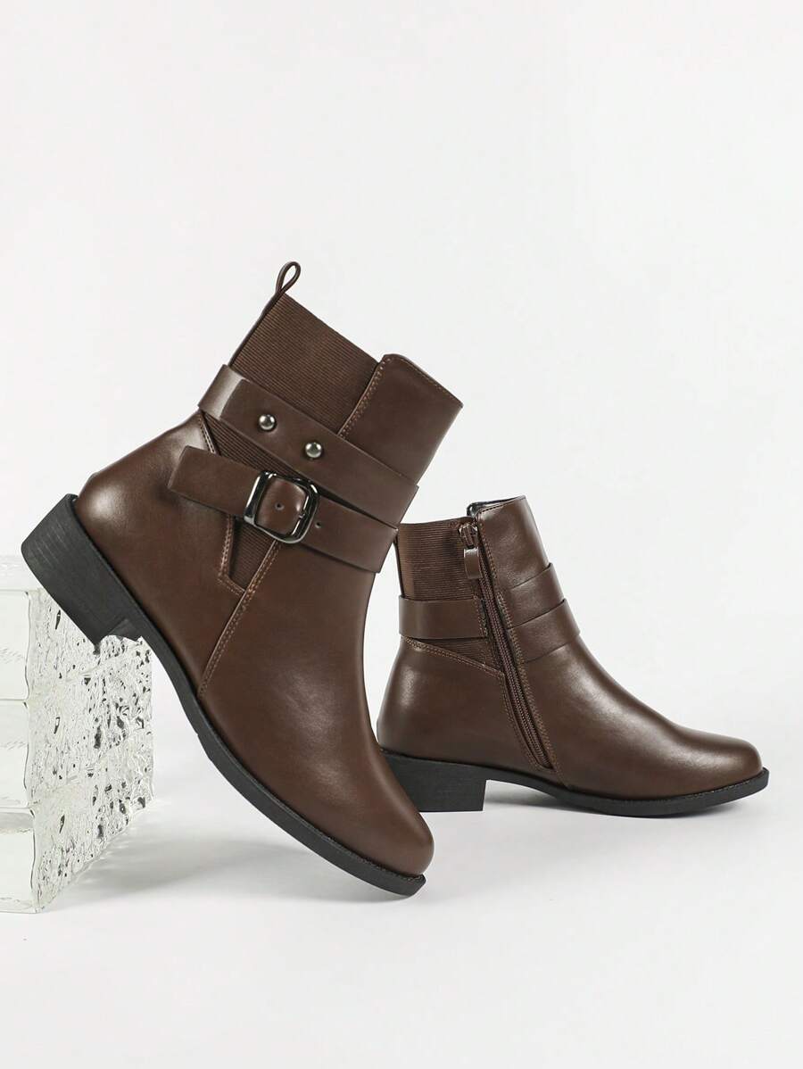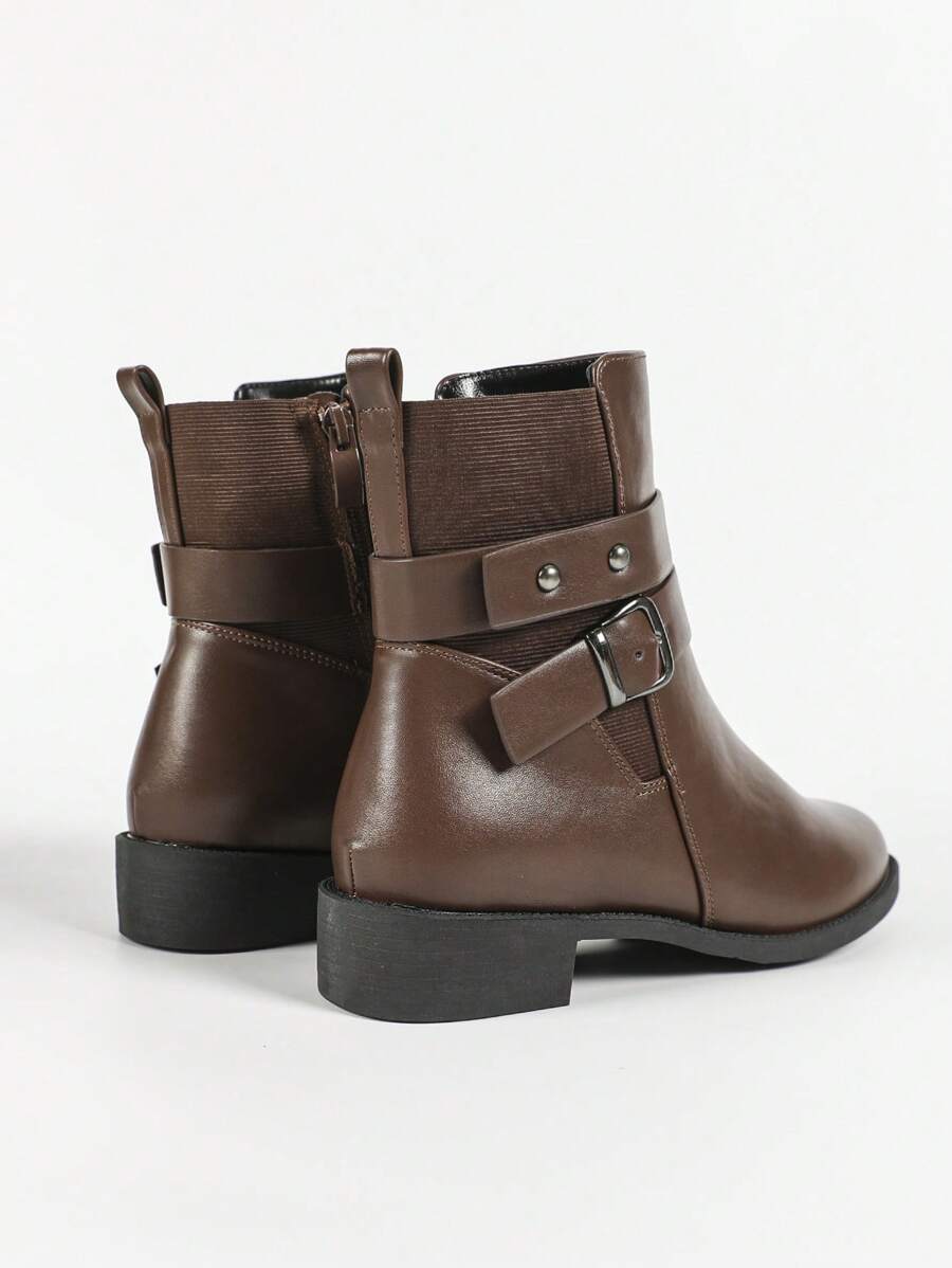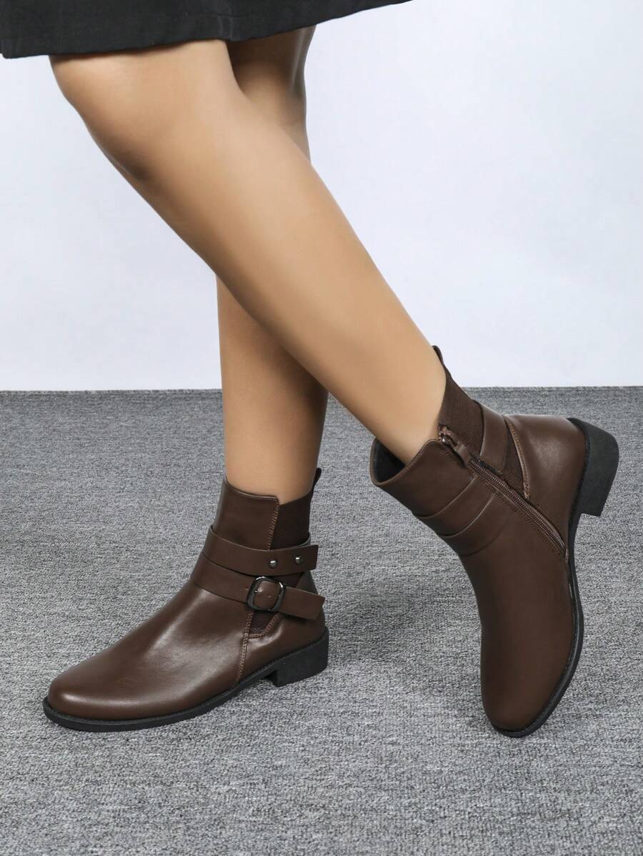 CUCCOO BIZCHIC Ženske modne nubuk kratke čizme, čizme sa debljim potpeticama za jesen/zimu, novi stil sa ukrasnim kopčanjem, bočna munja, elastična pozadina, udobne crne čizme za svakodnevne/Holidays