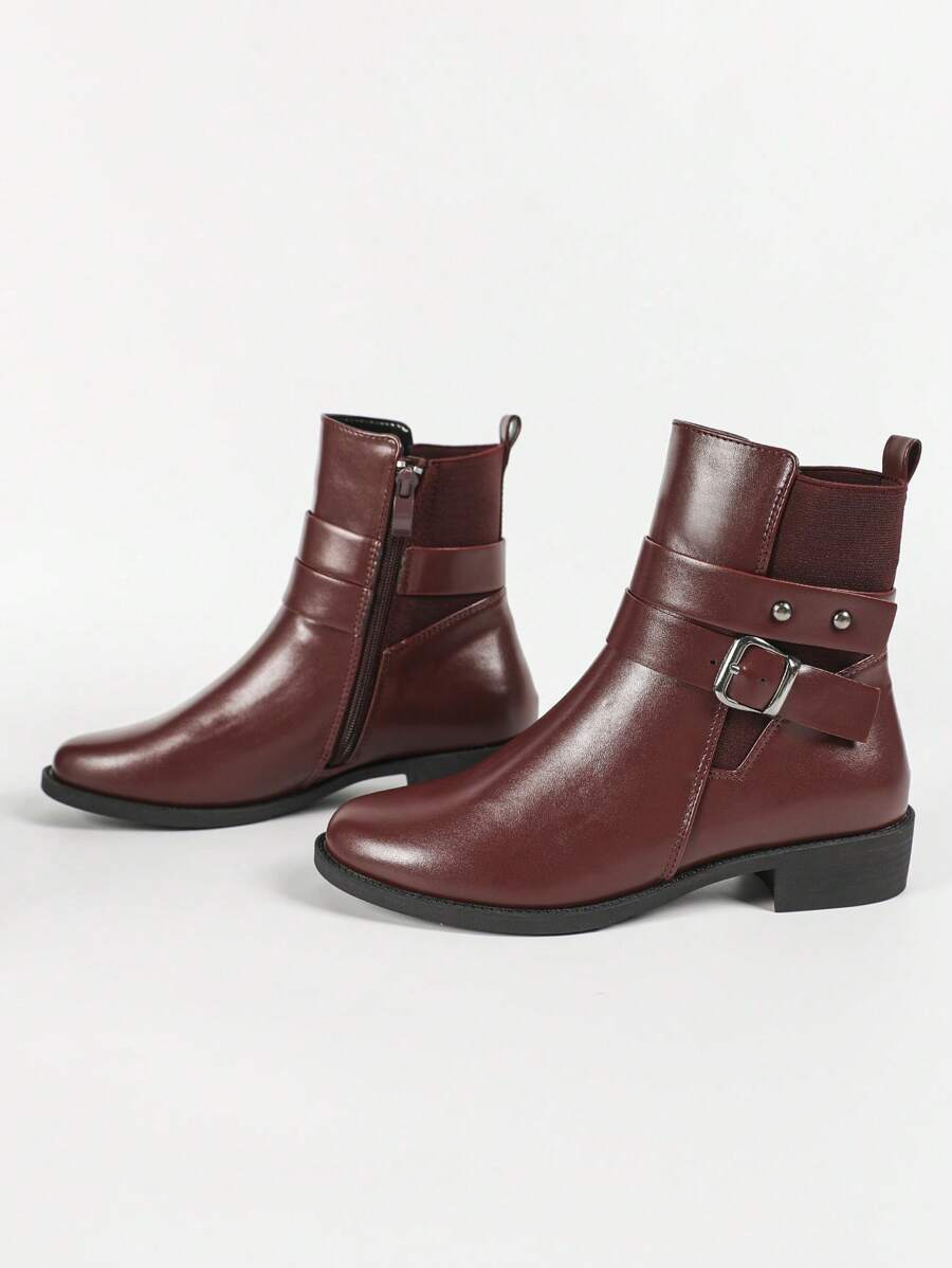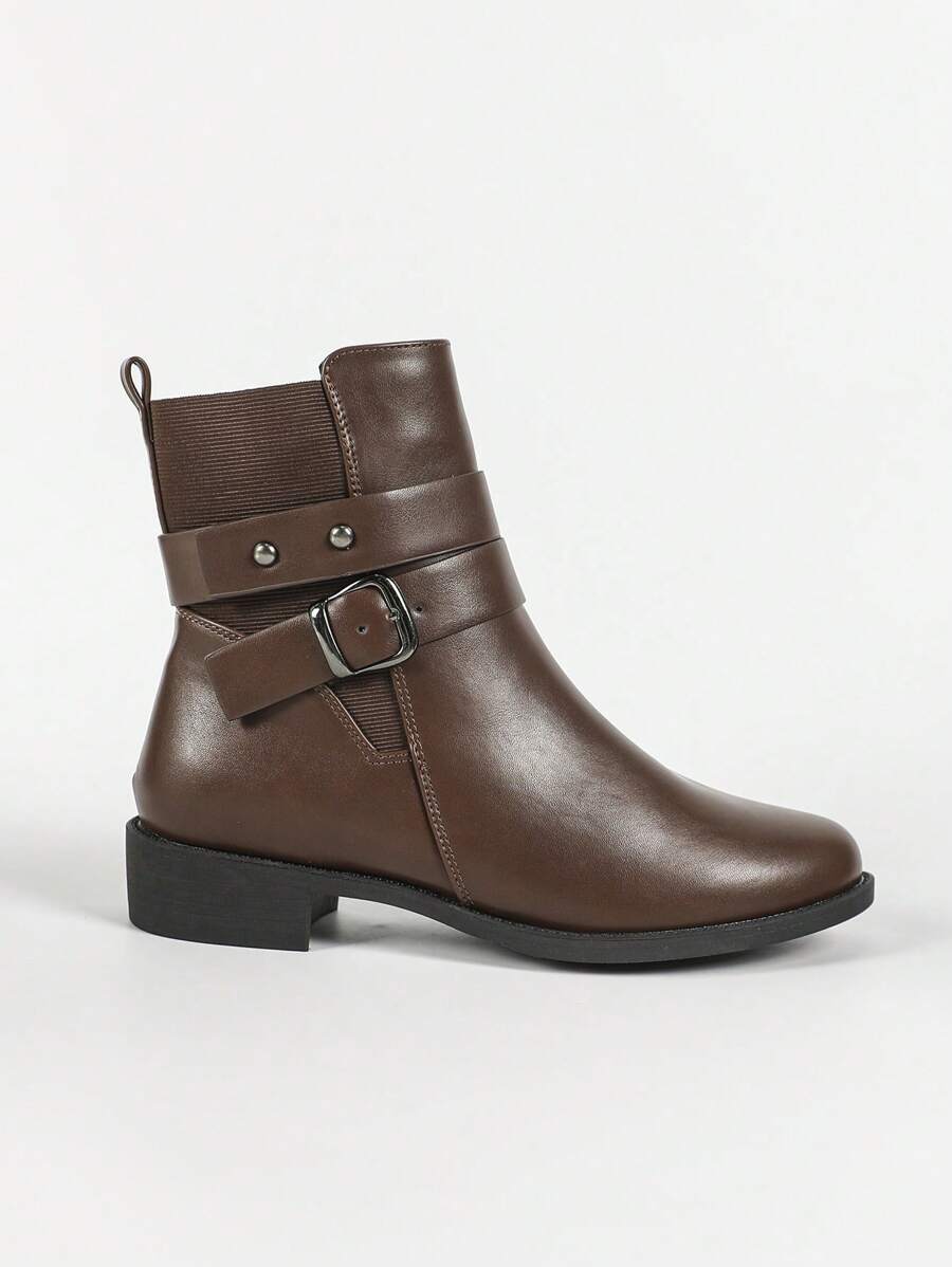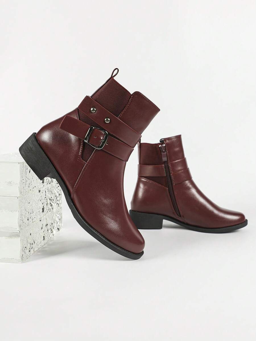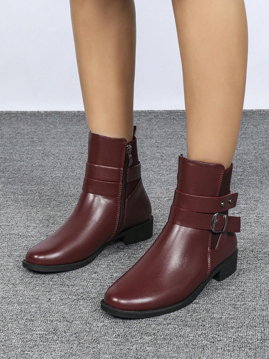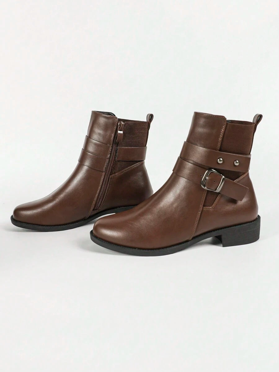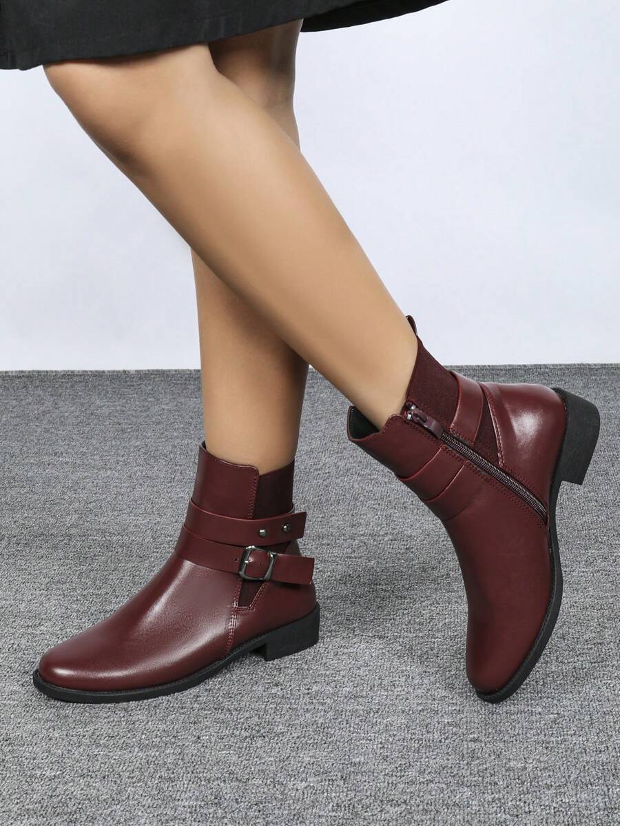 CUCCOO BIZCHIC Ženske modne nubuk kratke čizme, čizme sa debljim potpeticama za jesen/zimu, novi stil sa ukrasnim kopčanjem, bočna munja, elastična pozadina, udobne crne čizme za svakodnevne/Holidays