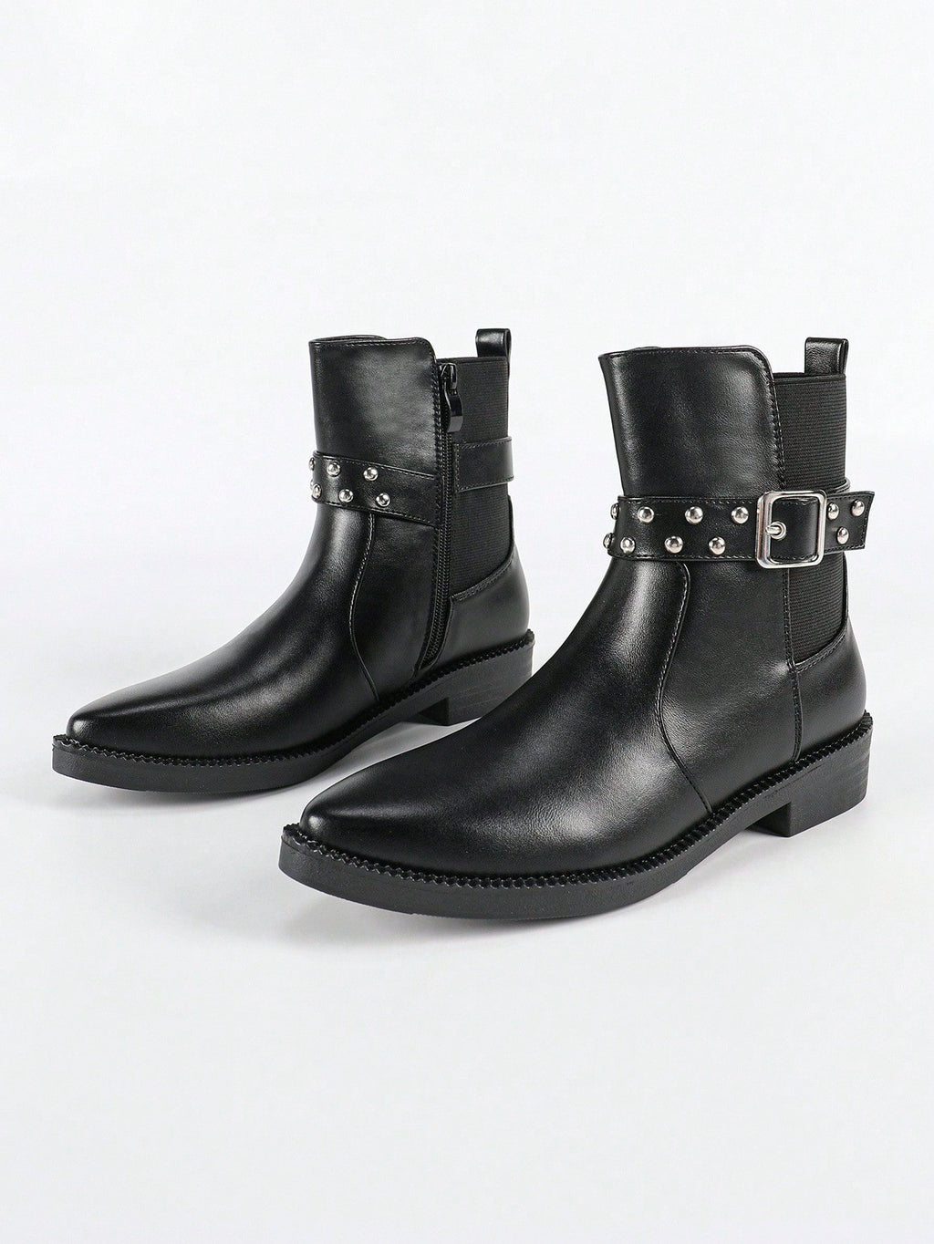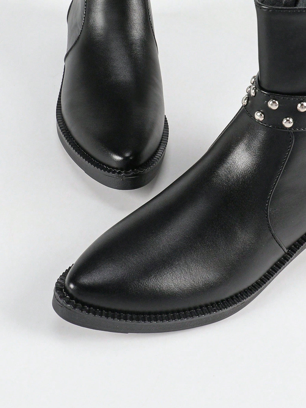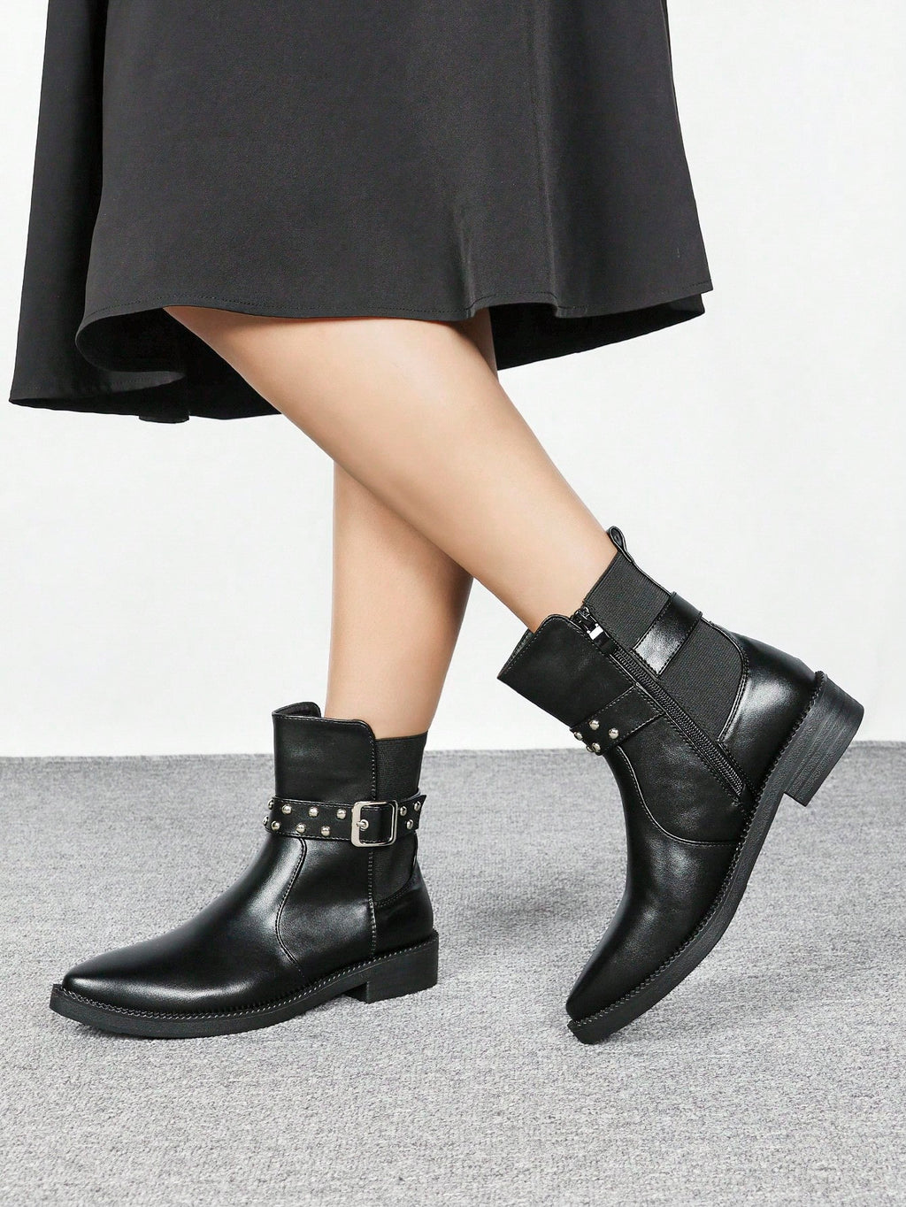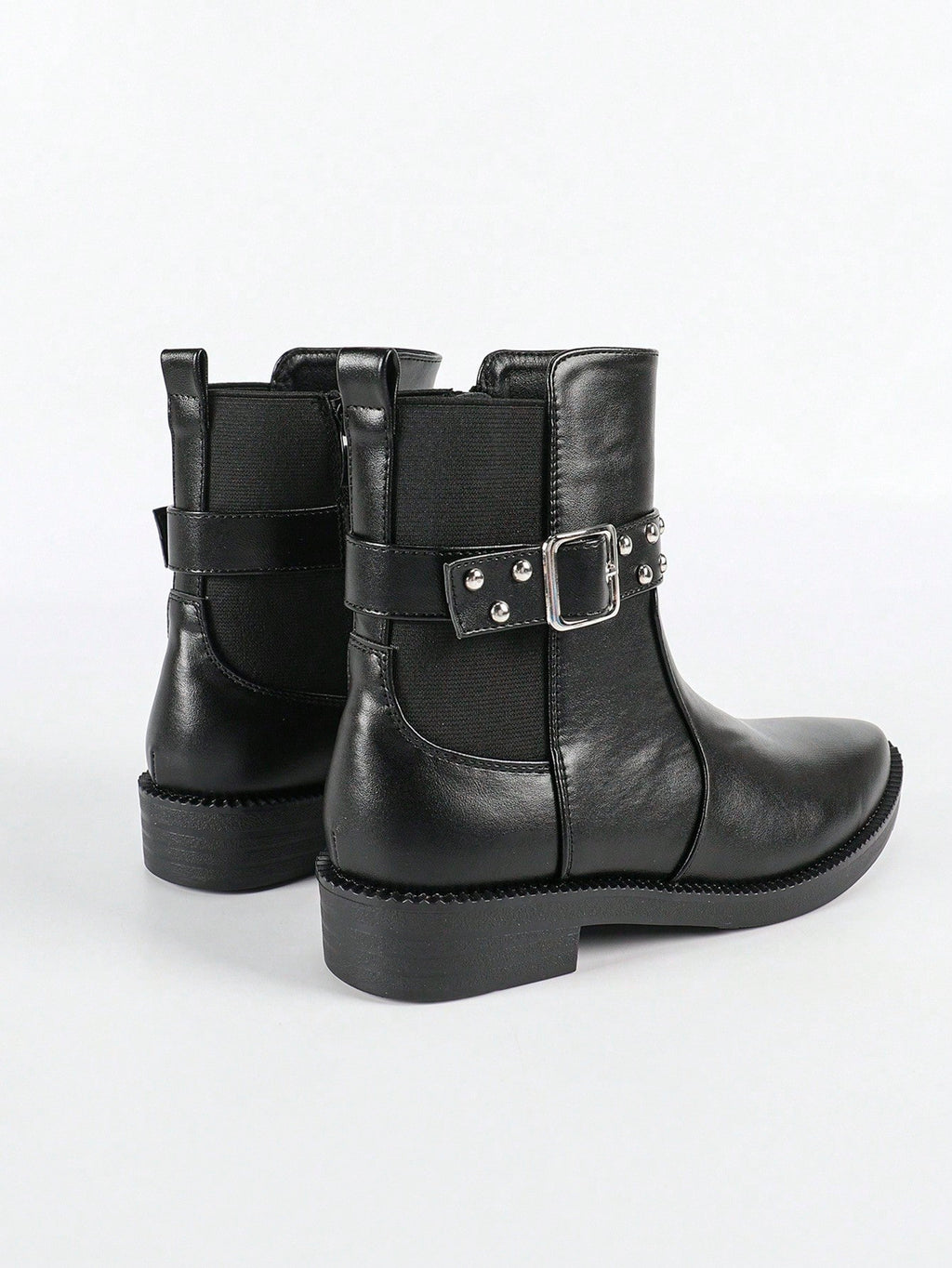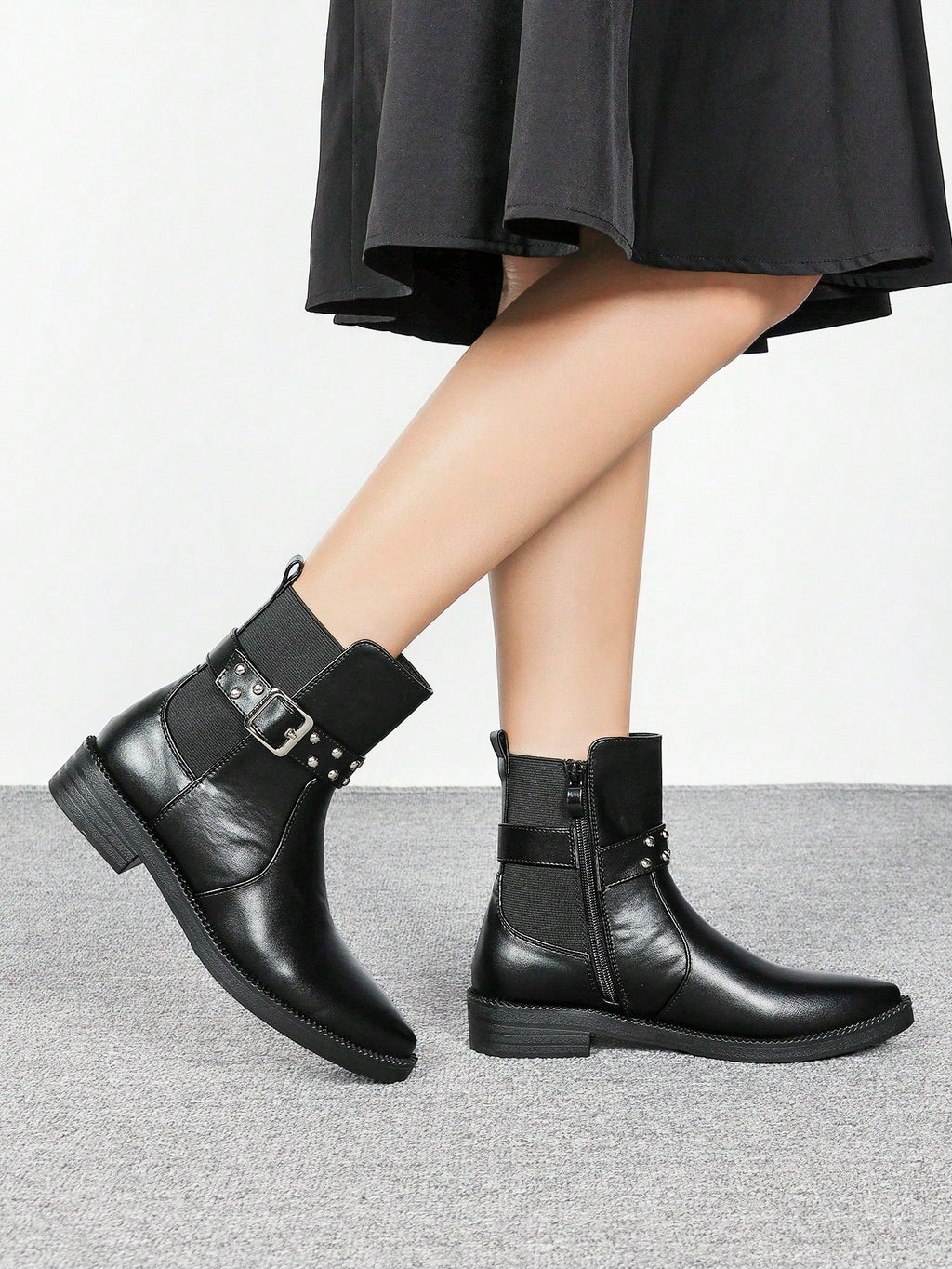 CUCCOO BIZCHIC Ženske vanjske gležnjače, modni osnovni udobni casual crni čizmi, debele cipele protiv klizanja s bočnim patent zatvaračem i metalnim ukrasom, pogodne za Božić i Novu godinu, jesen/zima atmosfera.