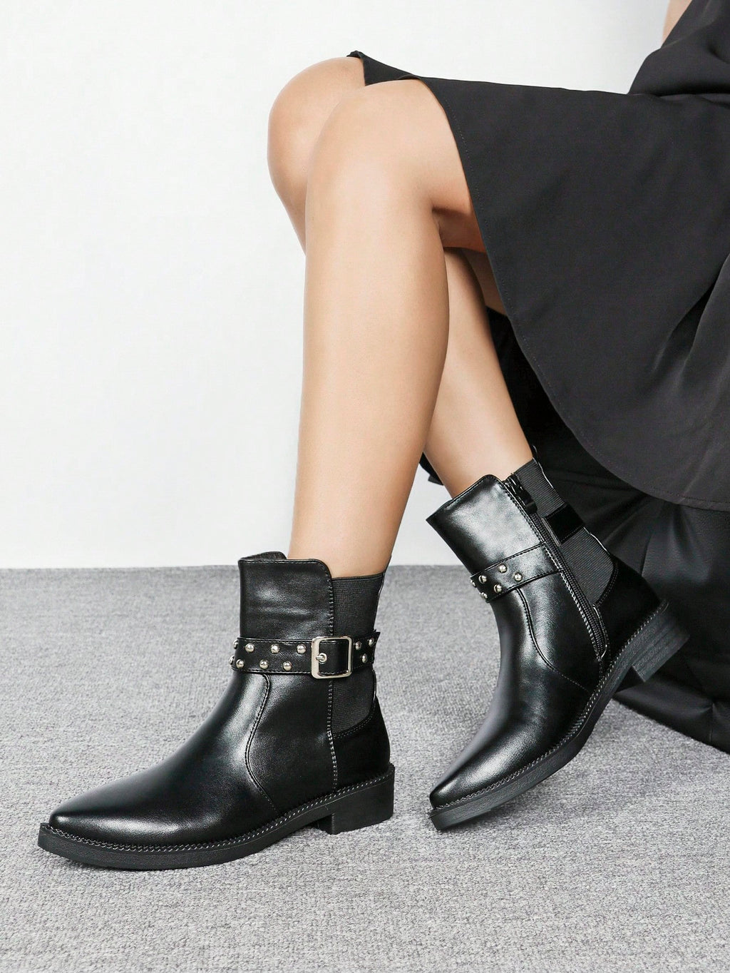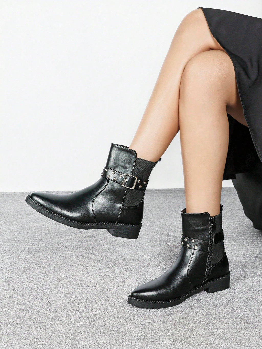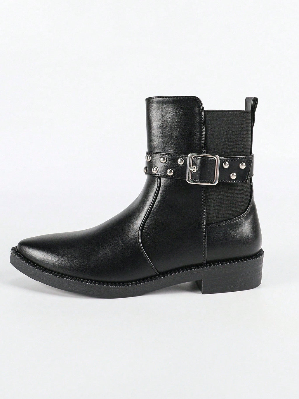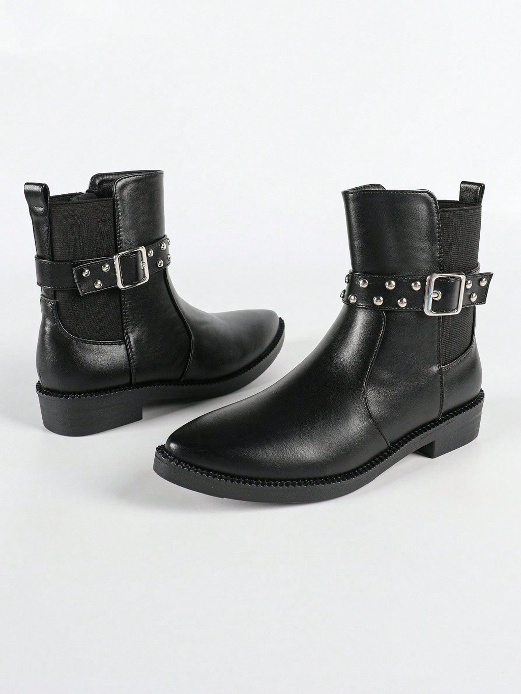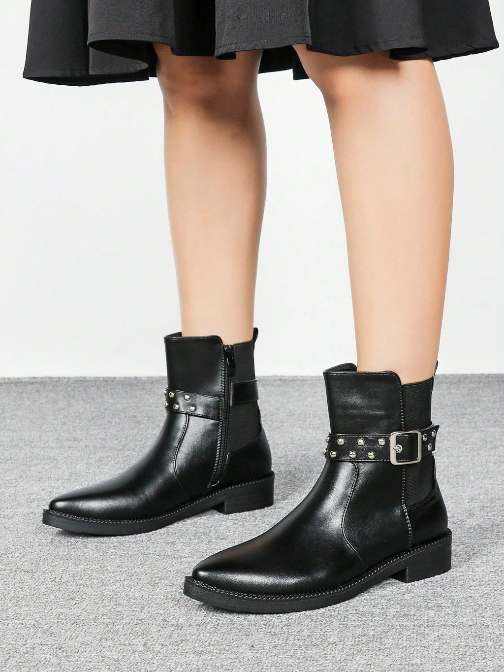 CUCCOO BIZCHIC Ženske vanjske gležnjače, modni osnovni udobni casual crni čizmi, debele cipele protiv klizanja s bočnim patent zatvaračem i metalnim ukrasom, pogodne za Božić i Novu godinu, jesen/zima atmosfera.