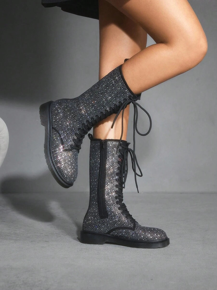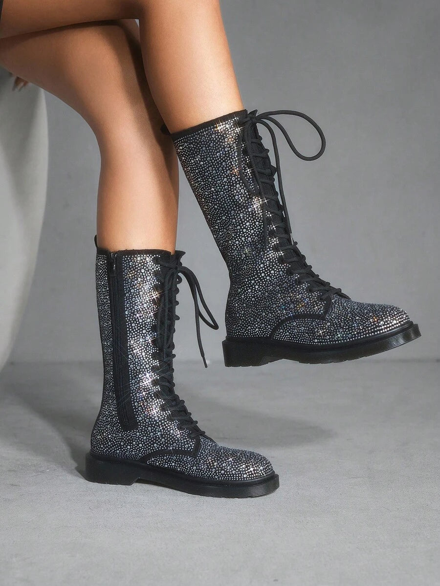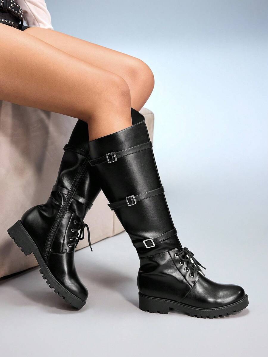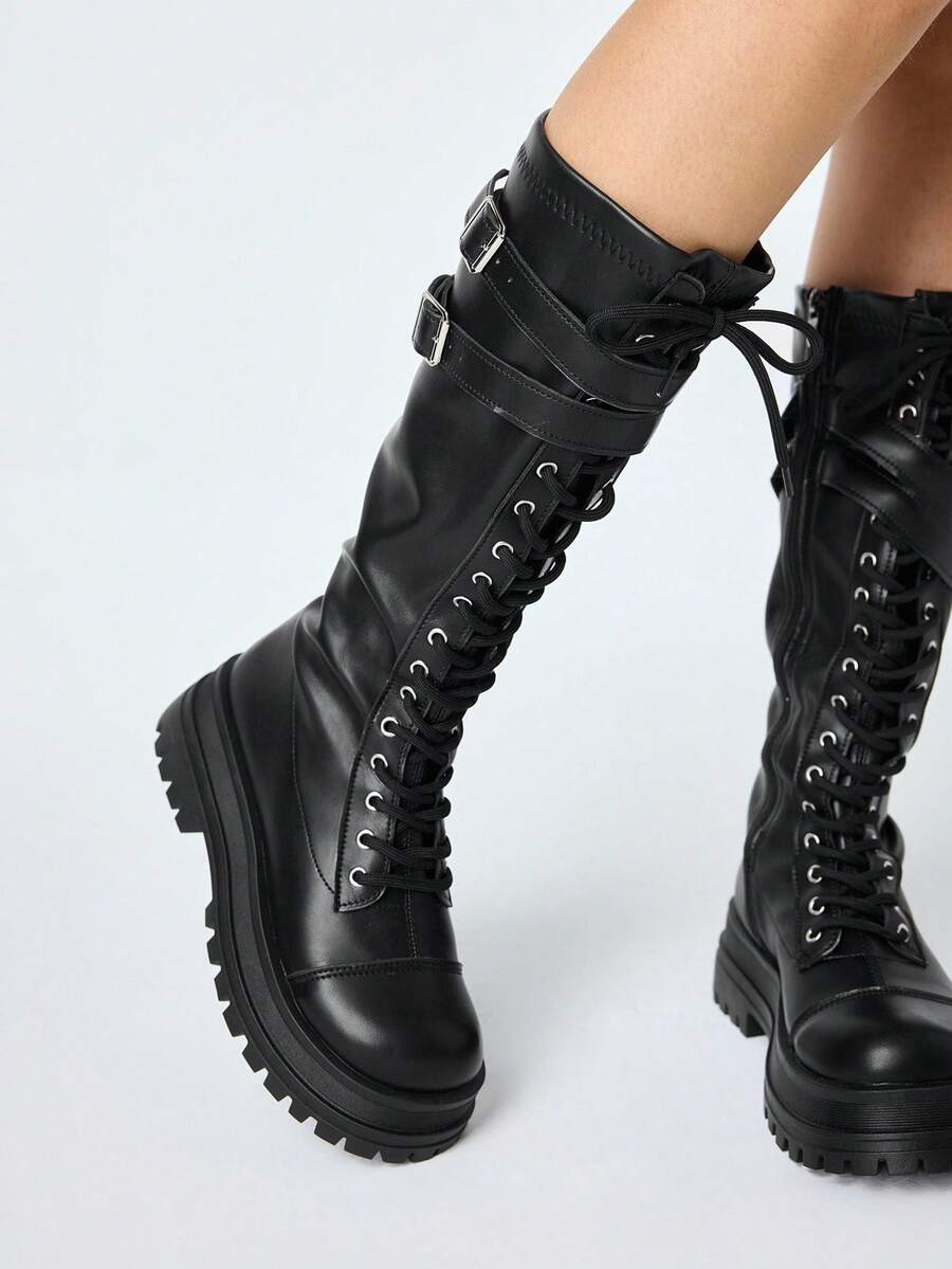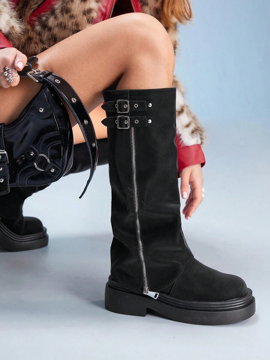 Cuccoo CUCCOO GRLICON Ženske Čizme do Sredine Tele, Y2K Stil, Punk Rock, Biker, Cool Devojka Outfit, Pogodne za Noć Veštica, Božić, Party