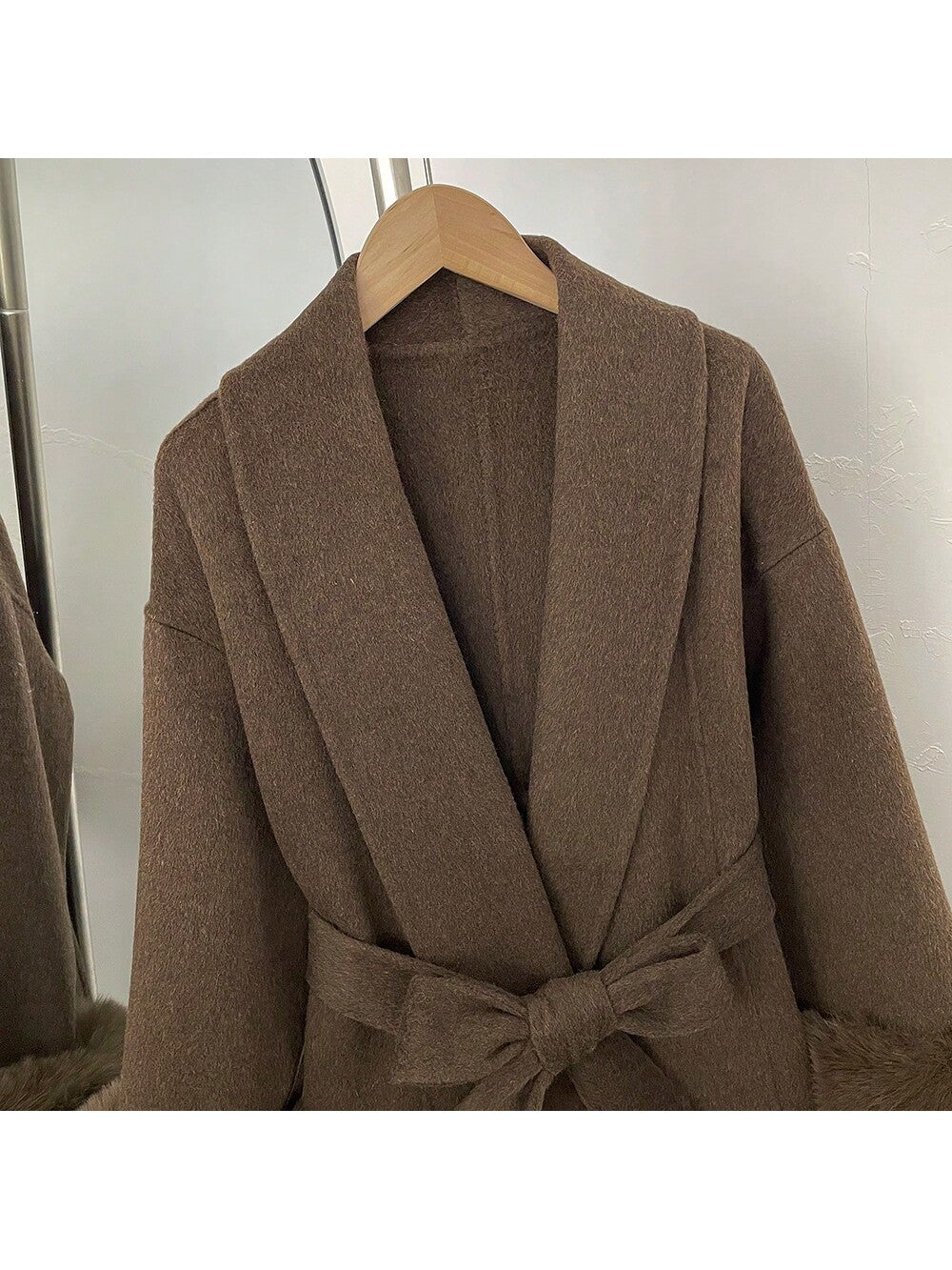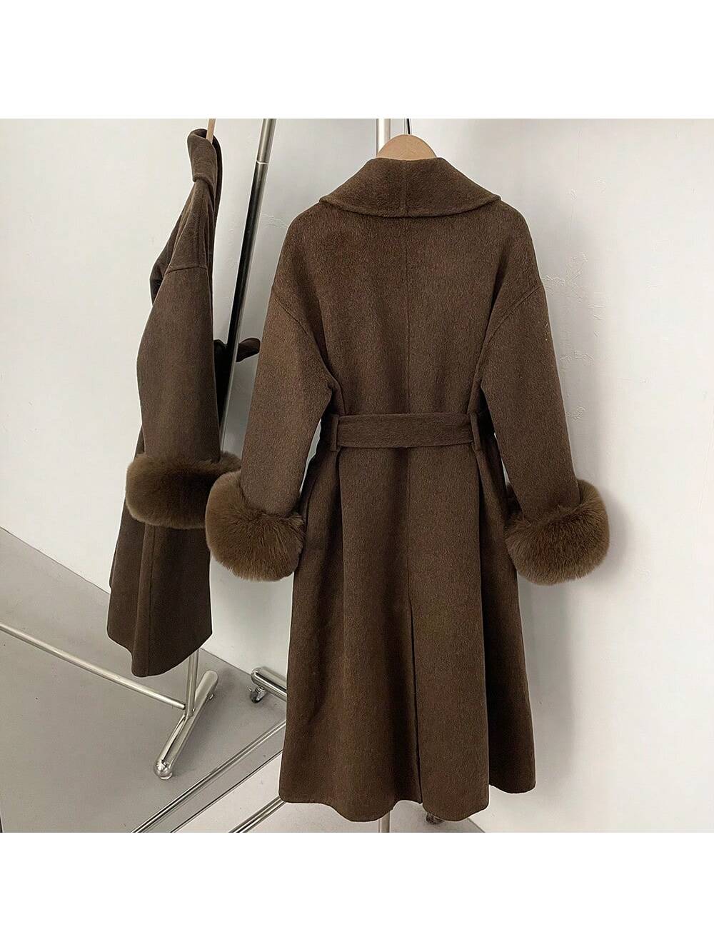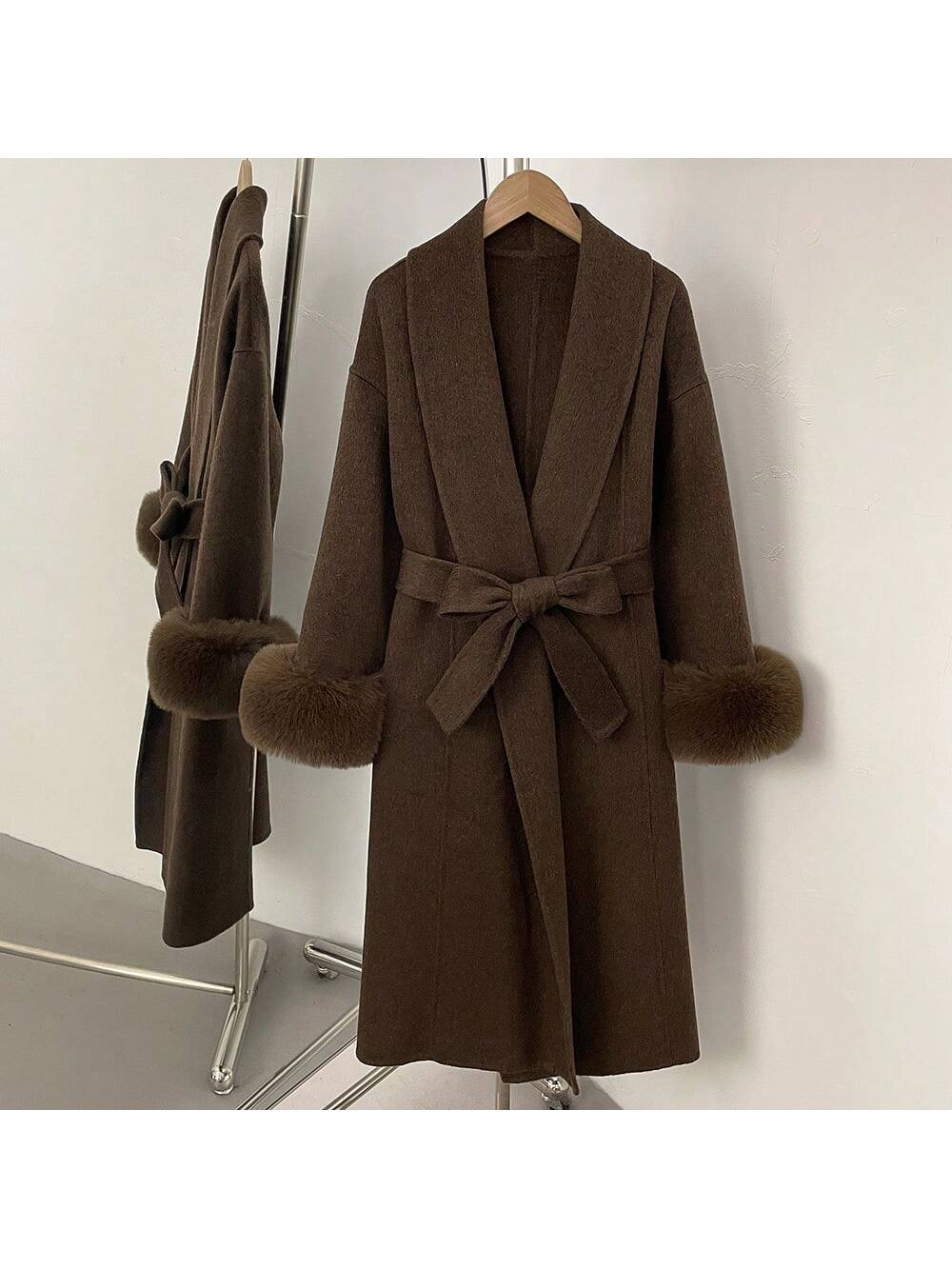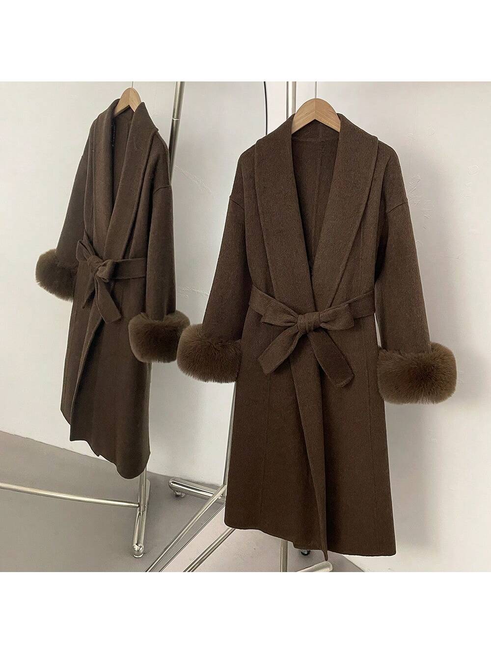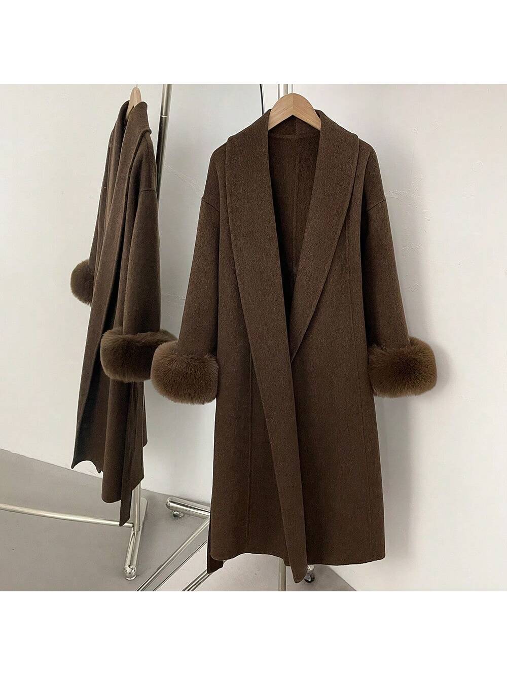 Dugi Jednobojni Kaput od Vune, Fuzzy Fura, Casual Ulični Stil za Žene, Jesen/Zima