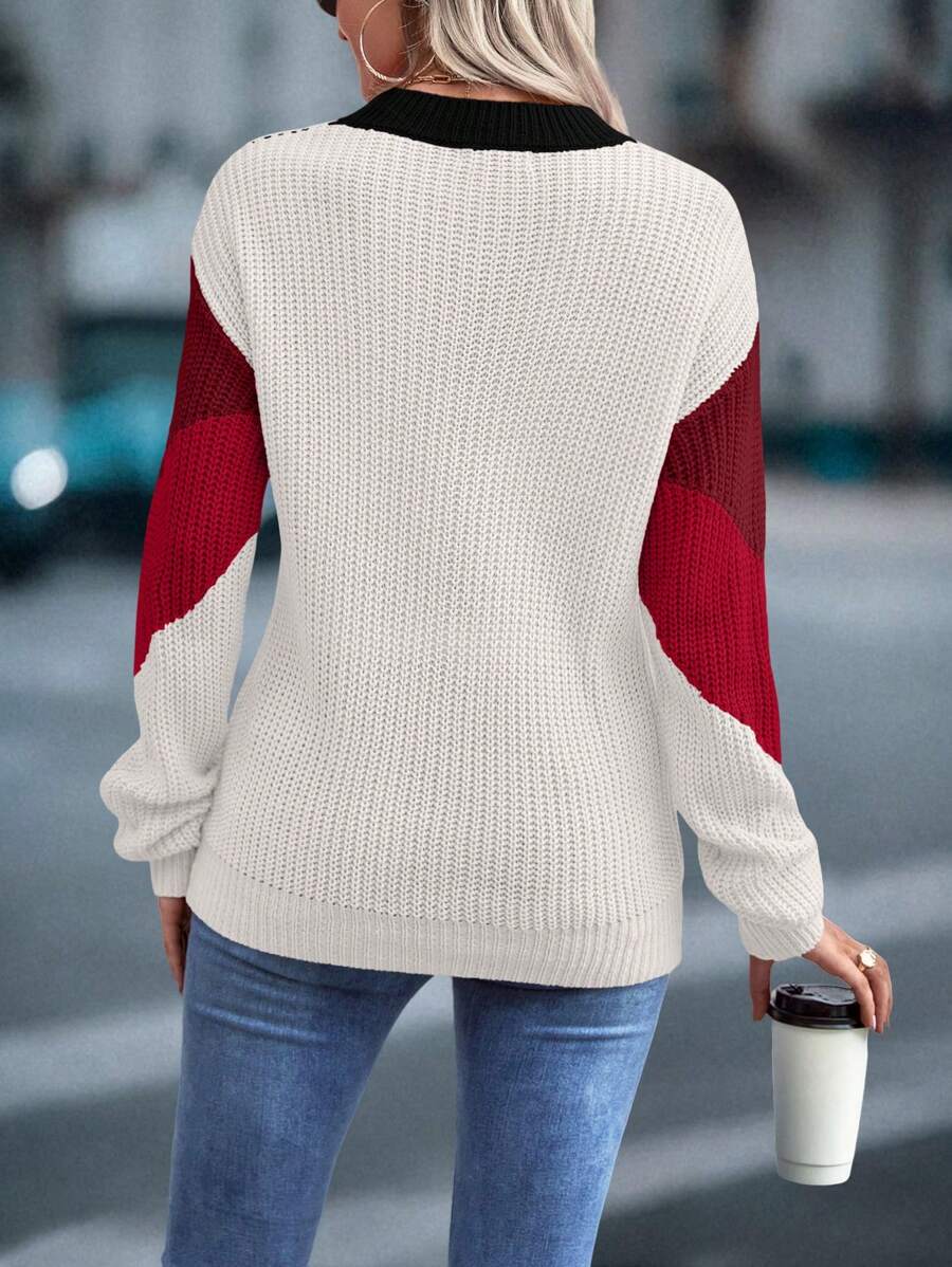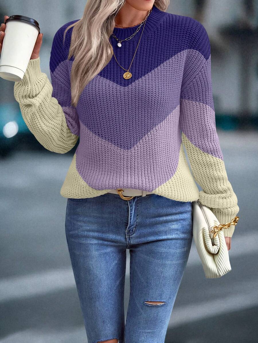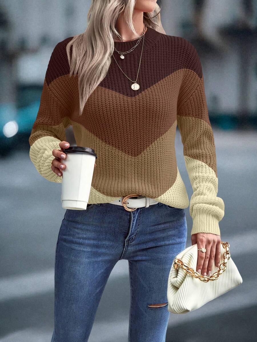 EMERY ROSE Džemper sa Chevron Uzorkom i Bojama, Dugi Rukavi