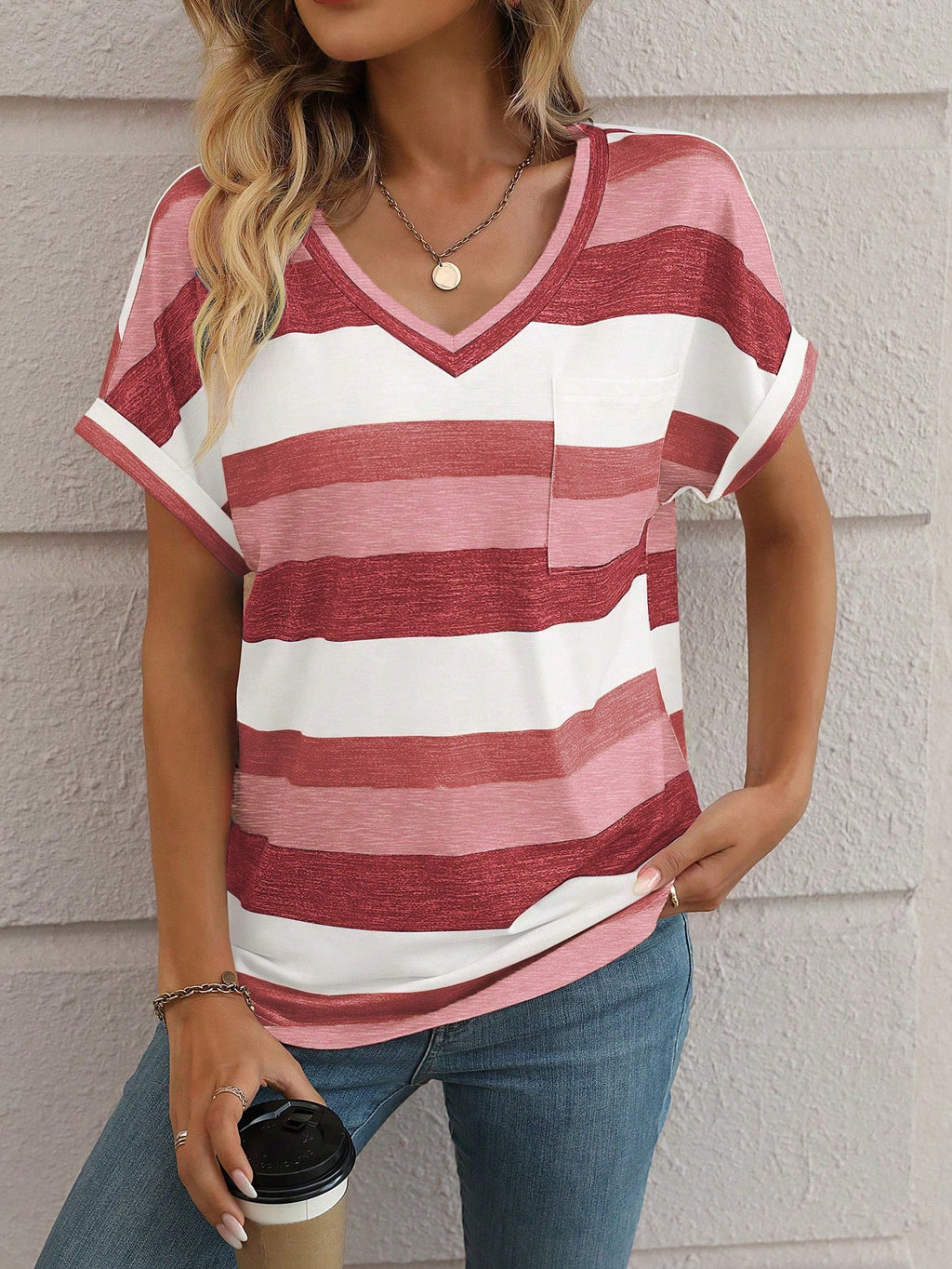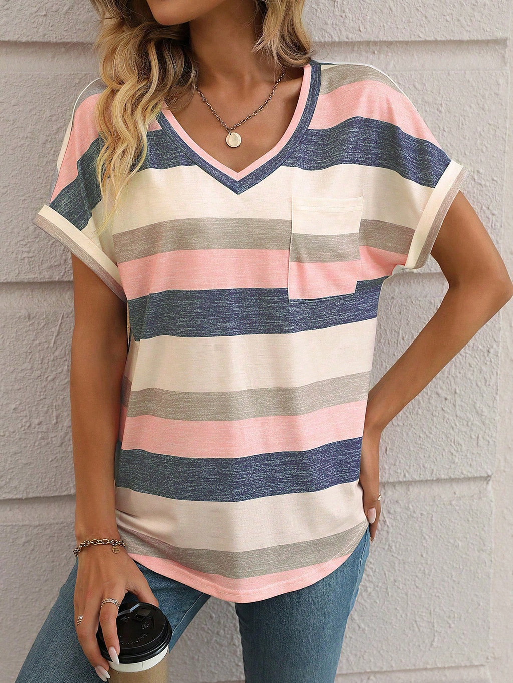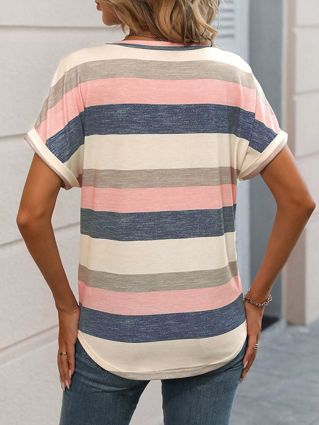 EMERY ROSE Striped Print Batwing Sleeve Tee Graphic Tees Women Tops