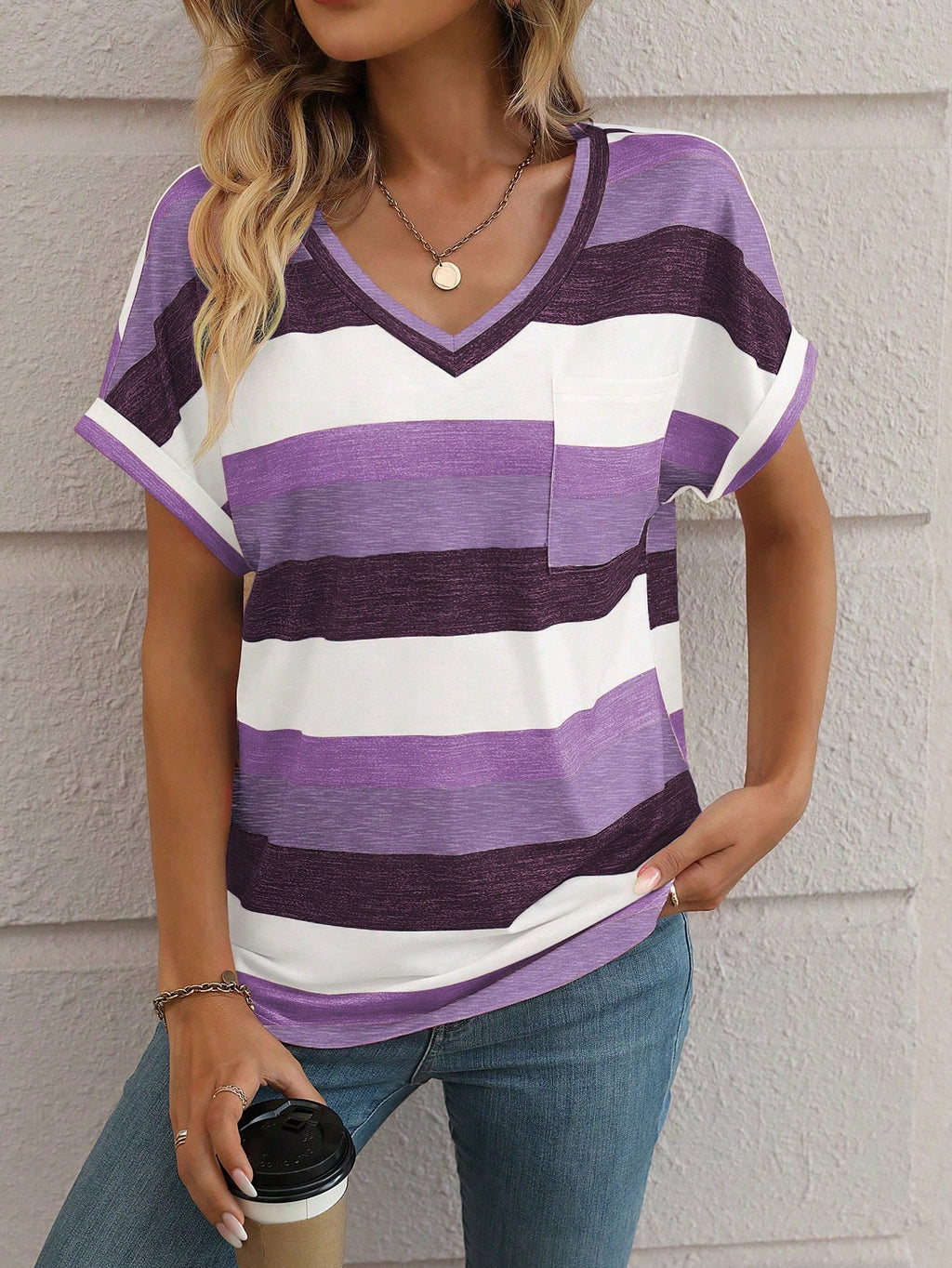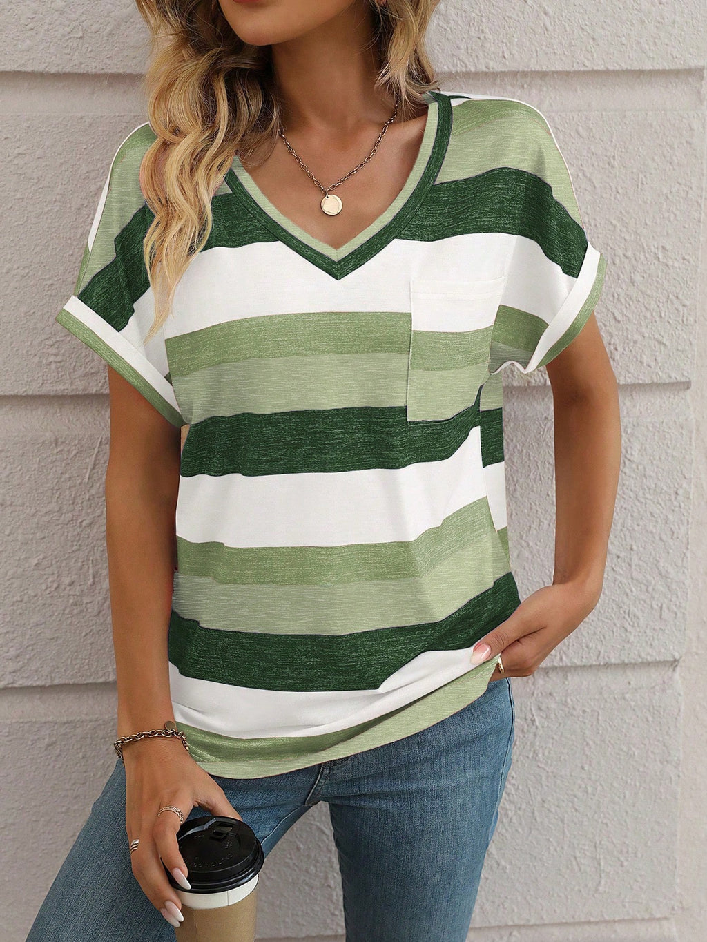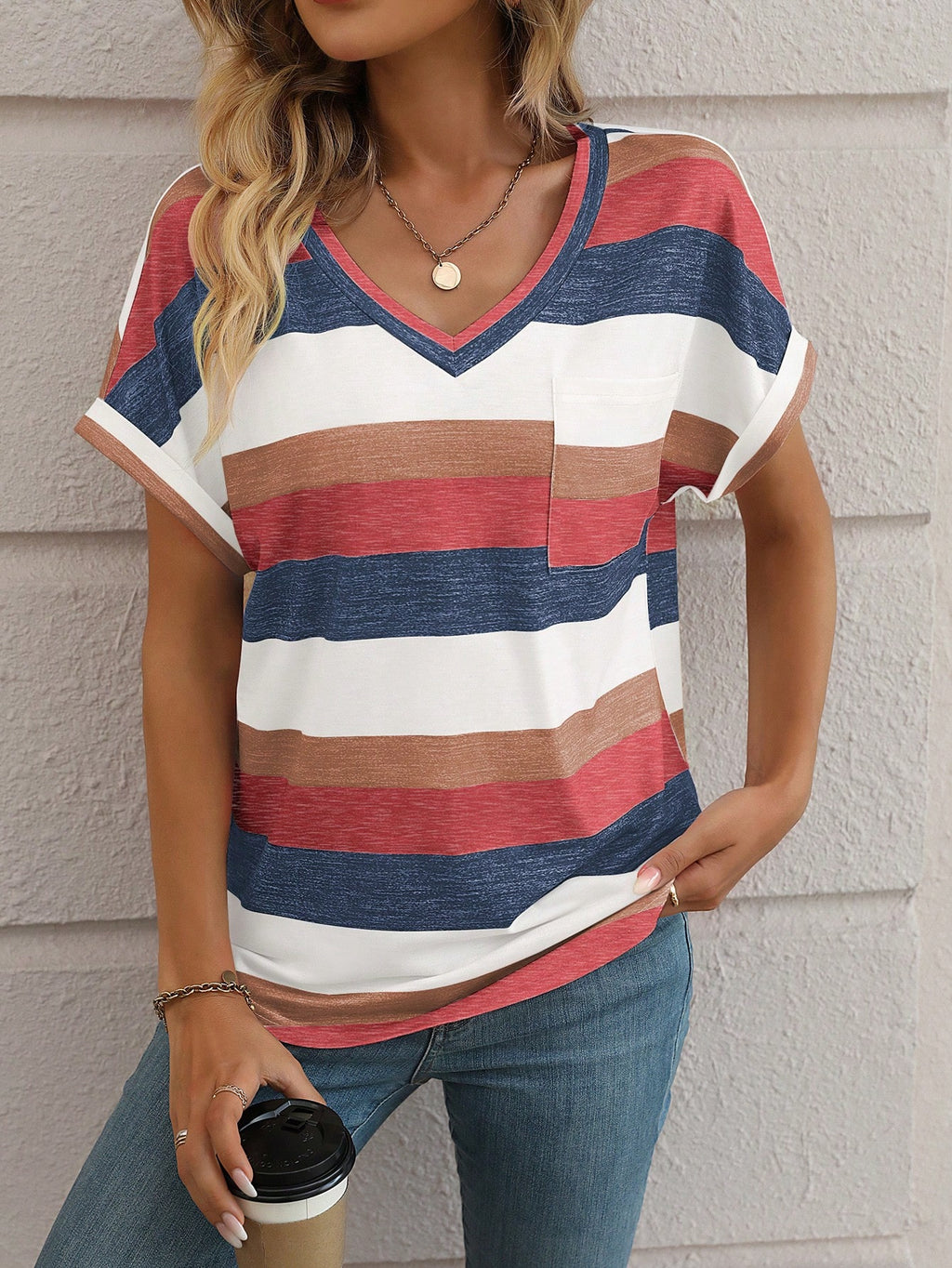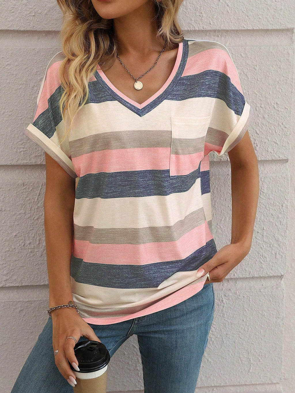 EMERY ROSE Striped Print Batwing Sleeve Tee Graphic Tees Women Tops