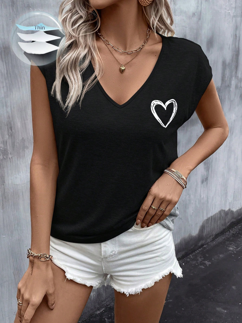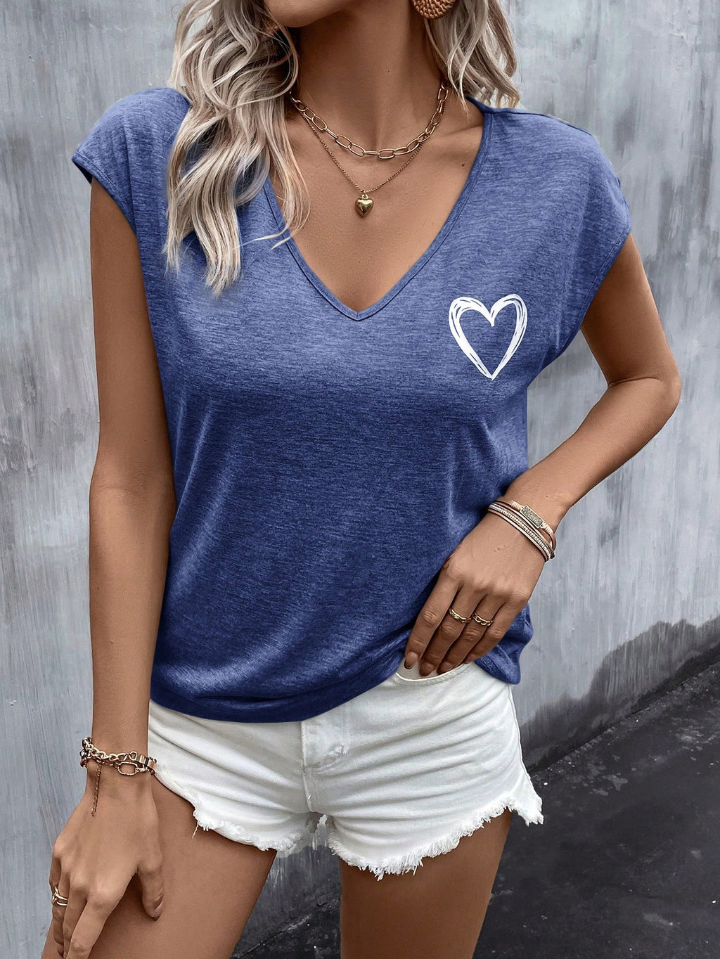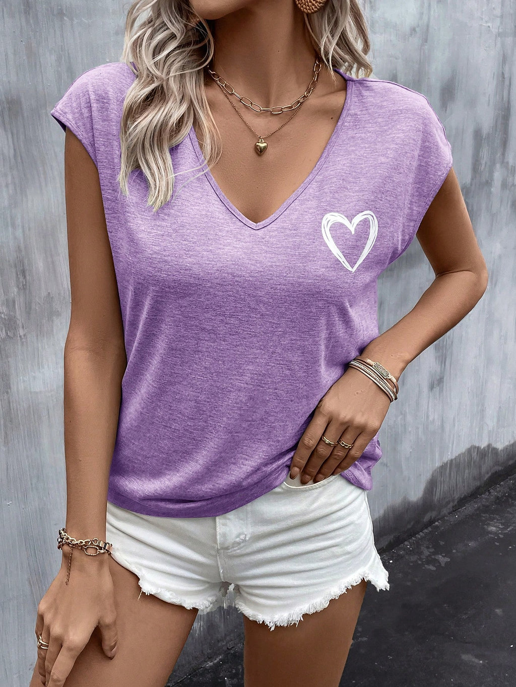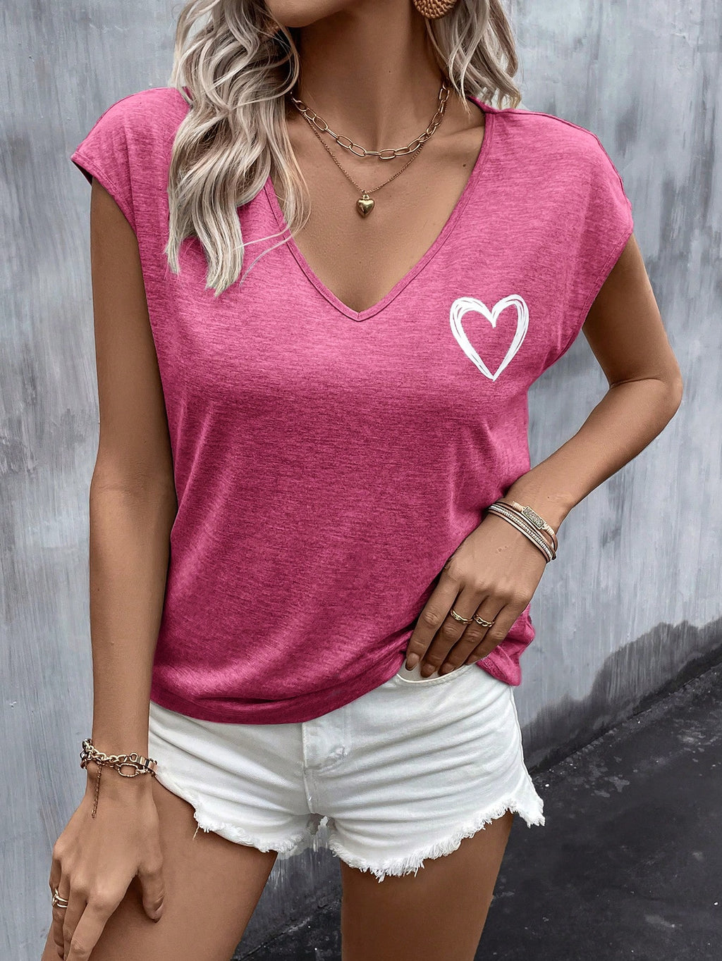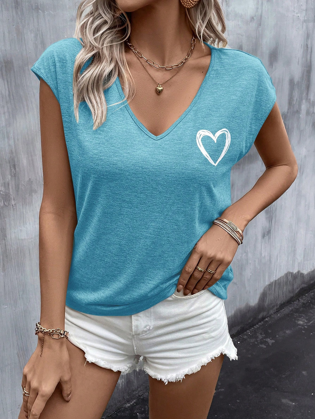 EMERY ROSE Summer Outfits Heart Print Batwing Sleeve Tee