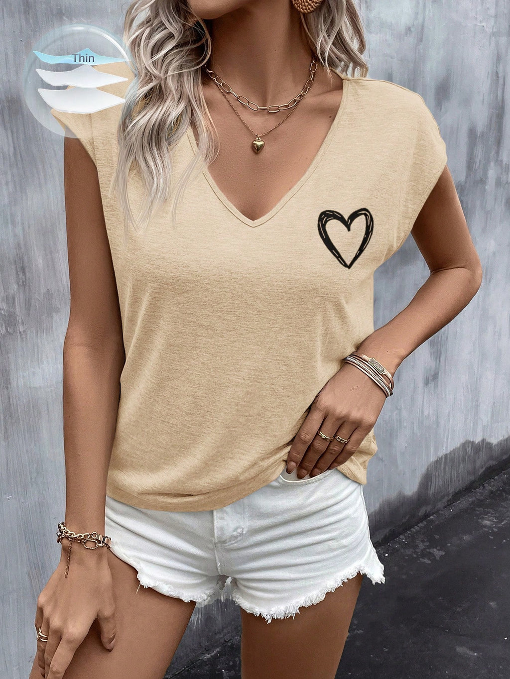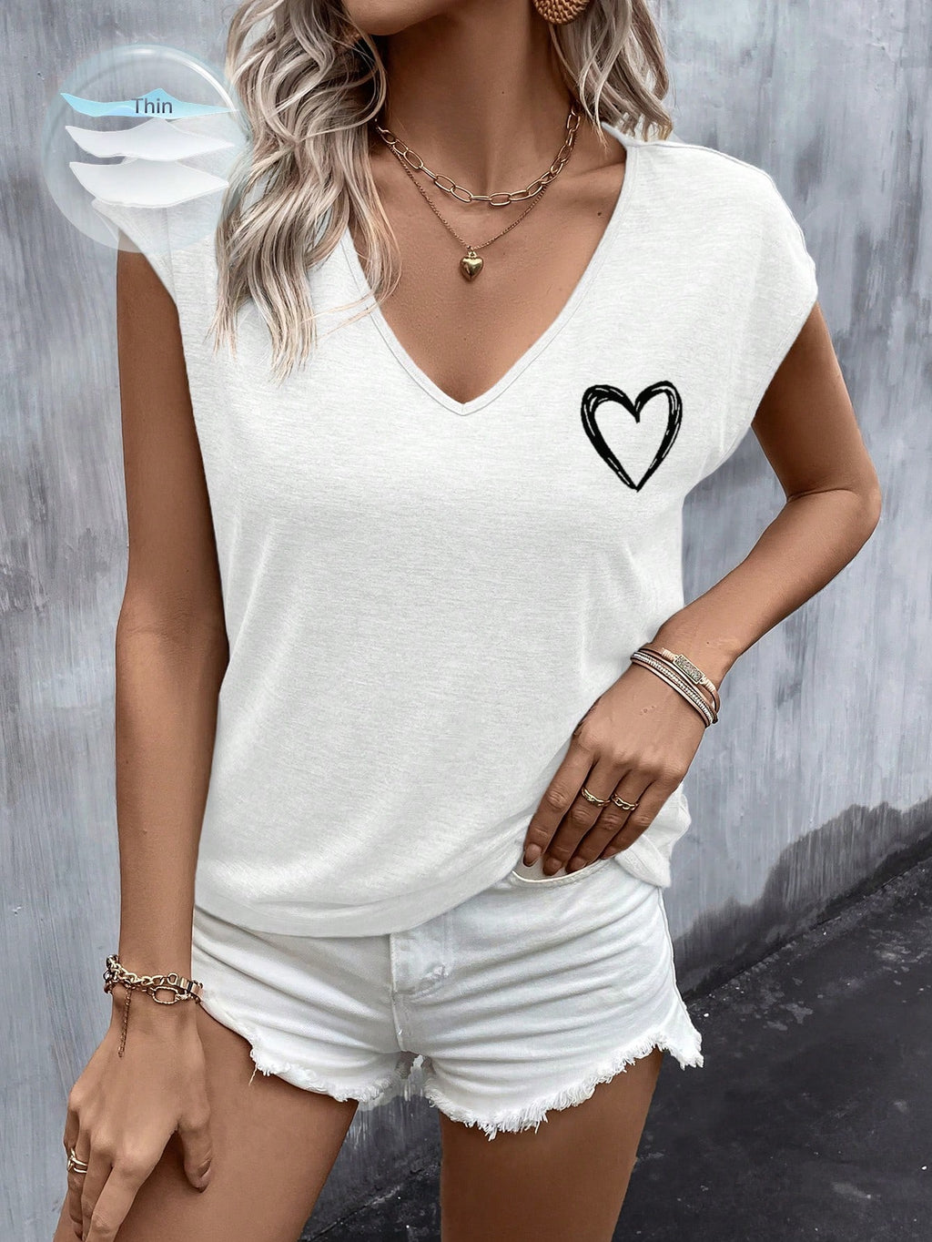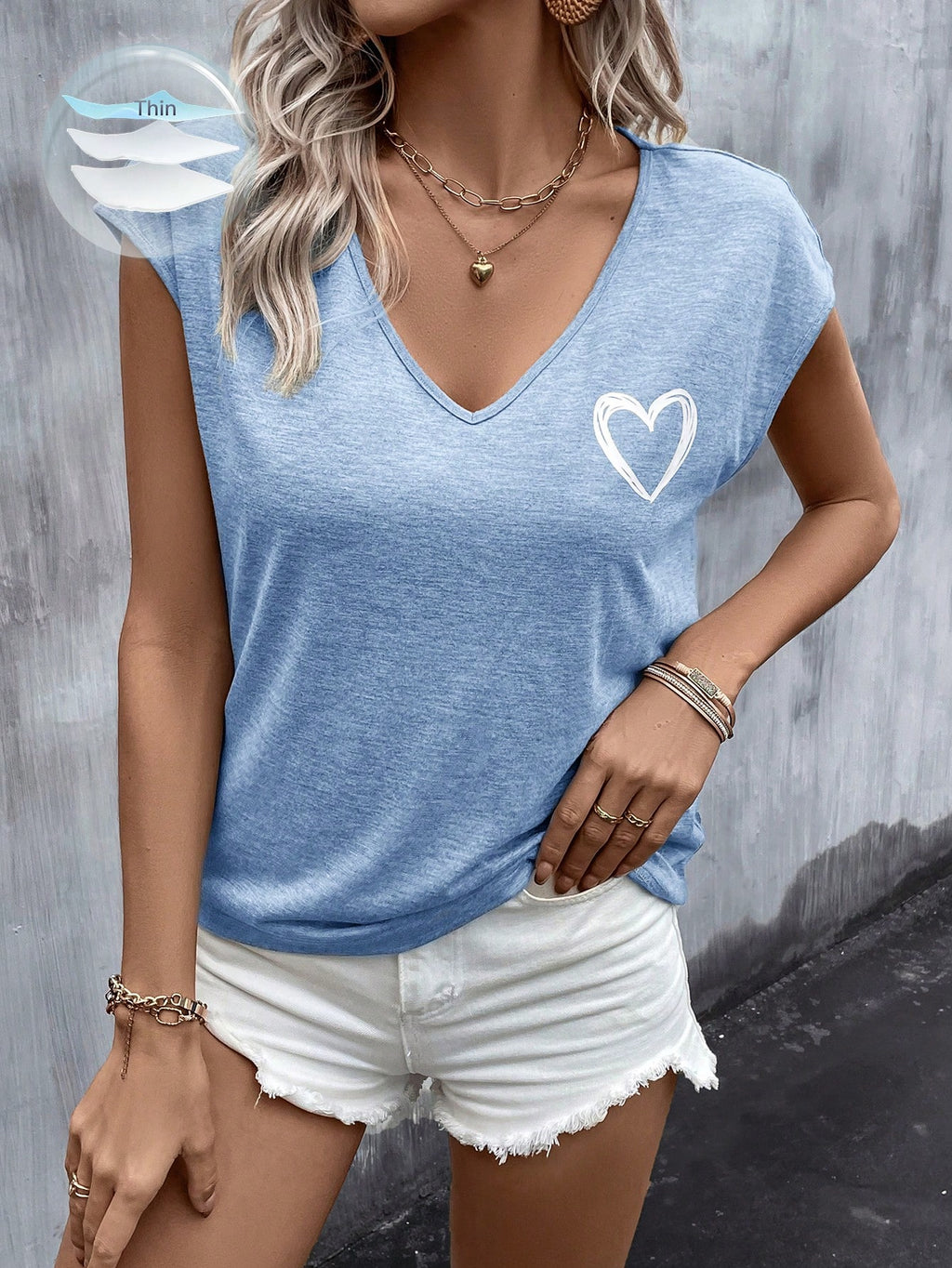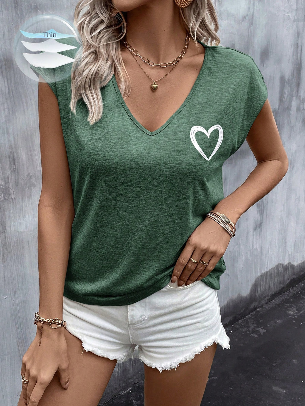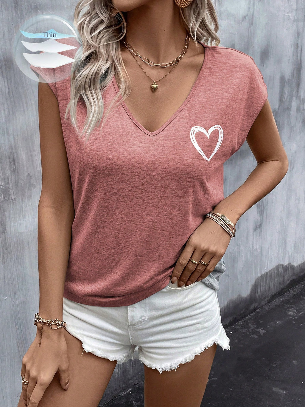 EMERY ROSE Summer Outfits Heart Print Batwing Sleeve Tee