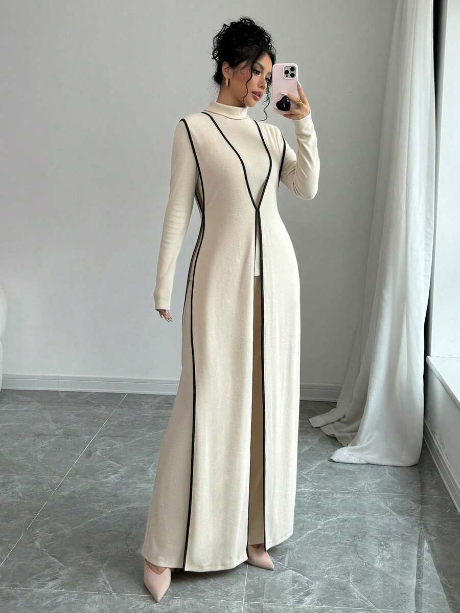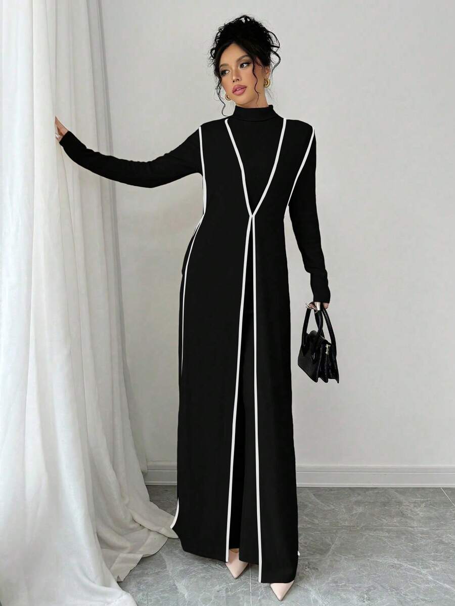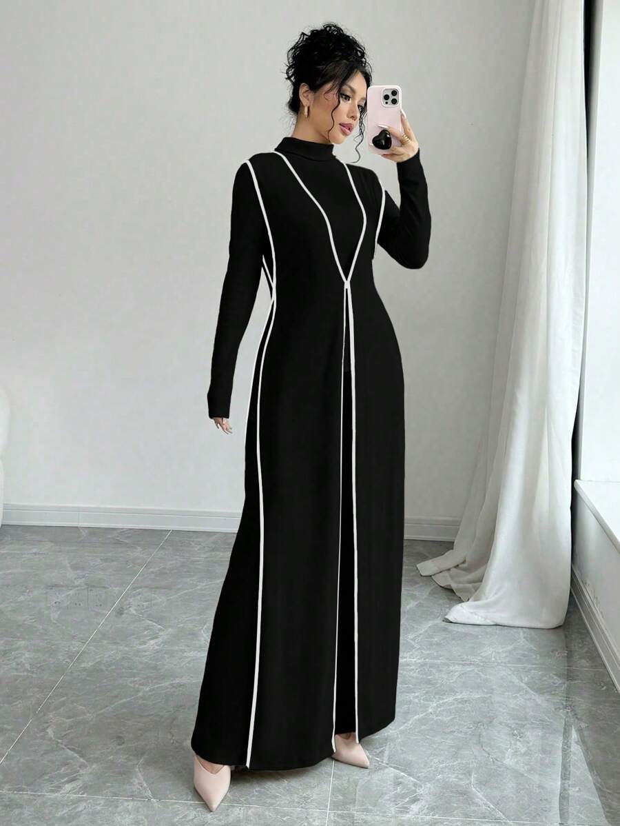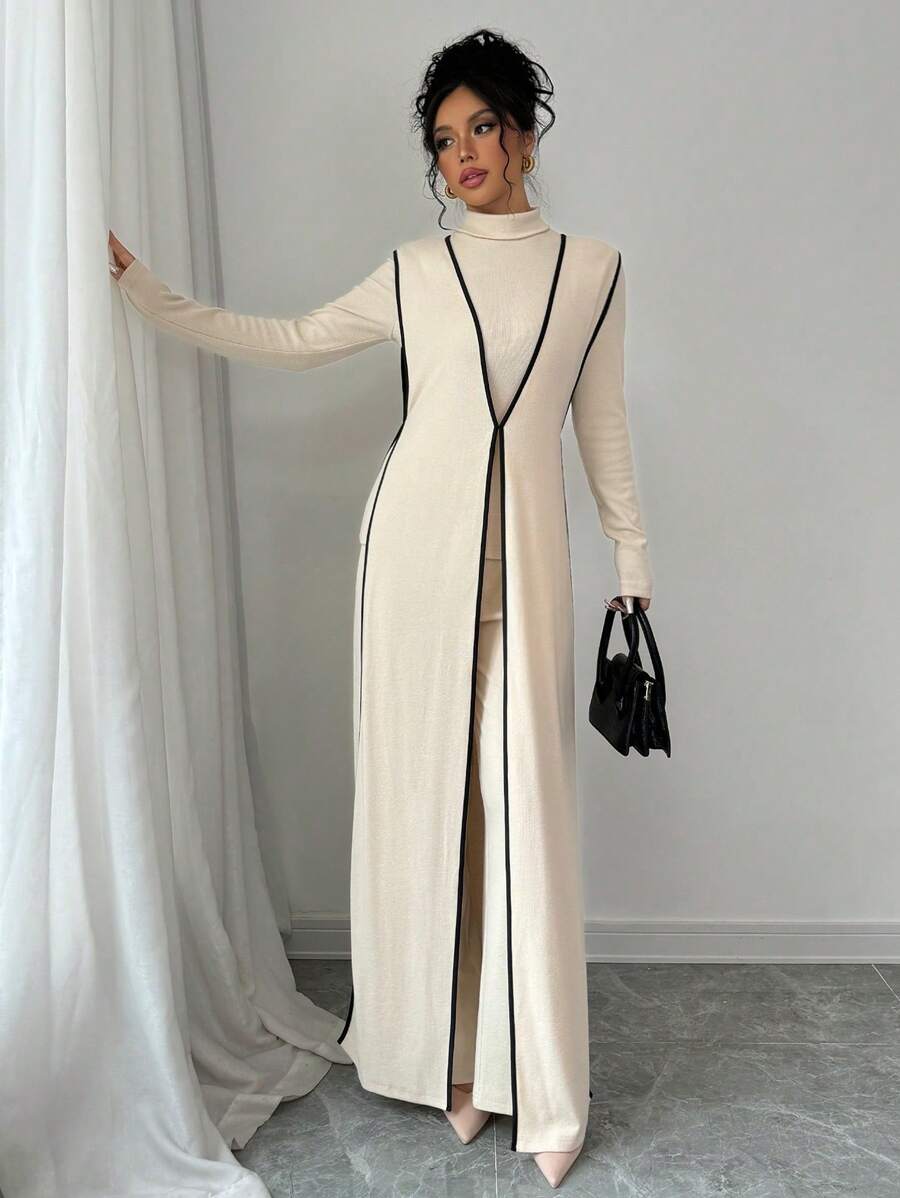 EMI 3pcs Set Women's Knit Velvet Ribbed High Neck Colorblock Long Jumpsuit Fall Cloth For Women