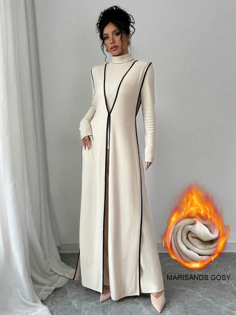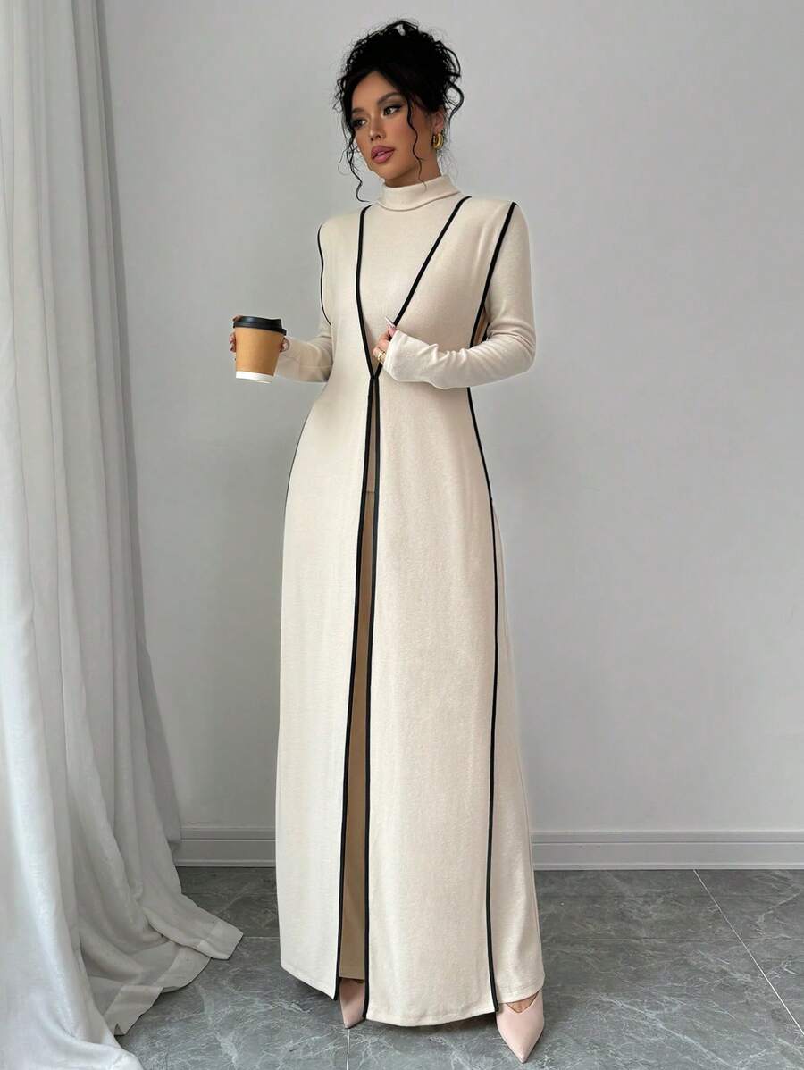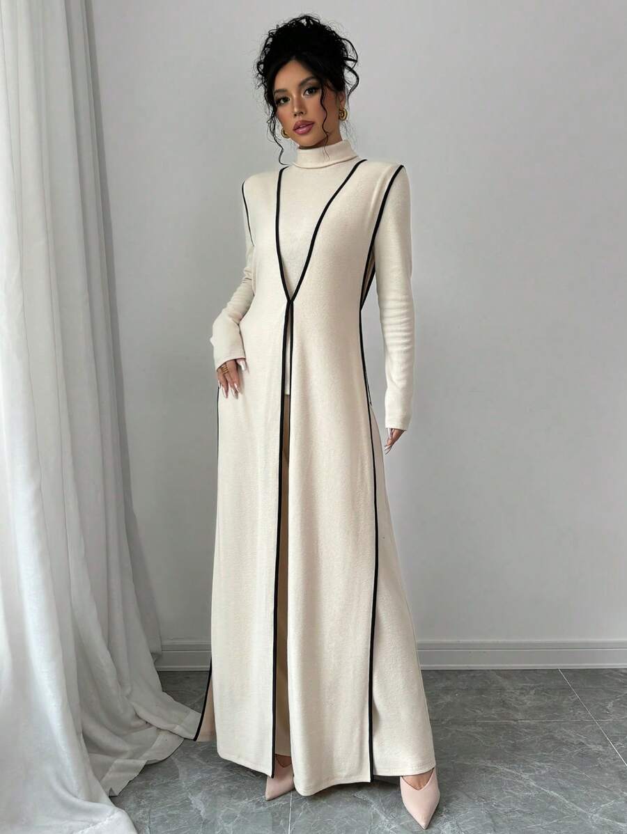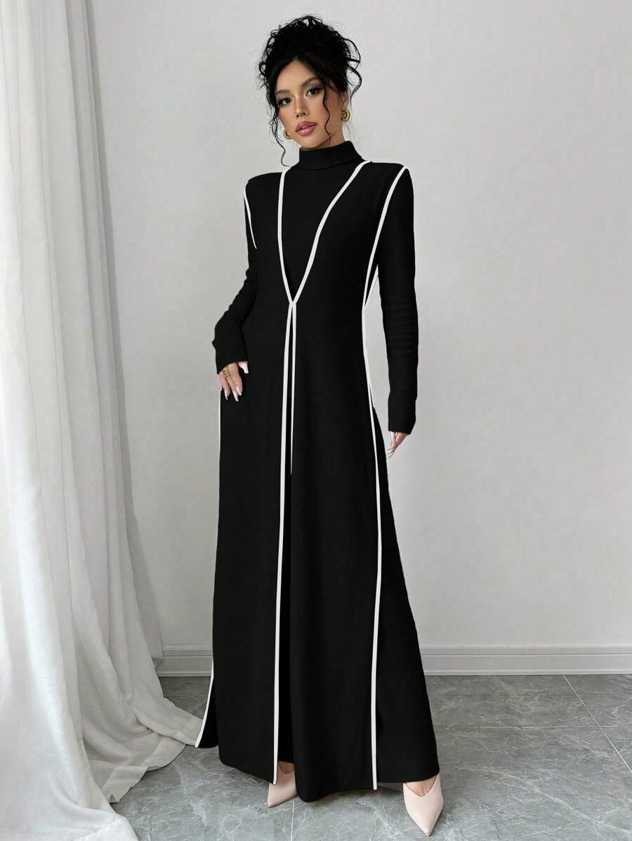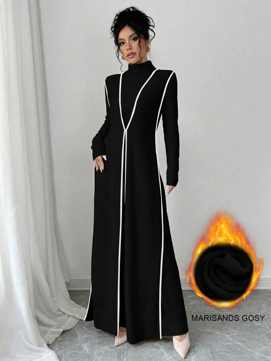 EMI 3pcs Set Women's Knit Velvet Ribbed High Neck Colorblock Long Jumpsuit Fall Cloth For Women