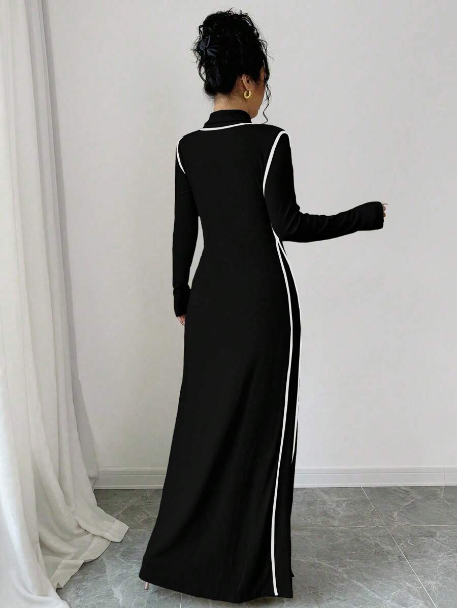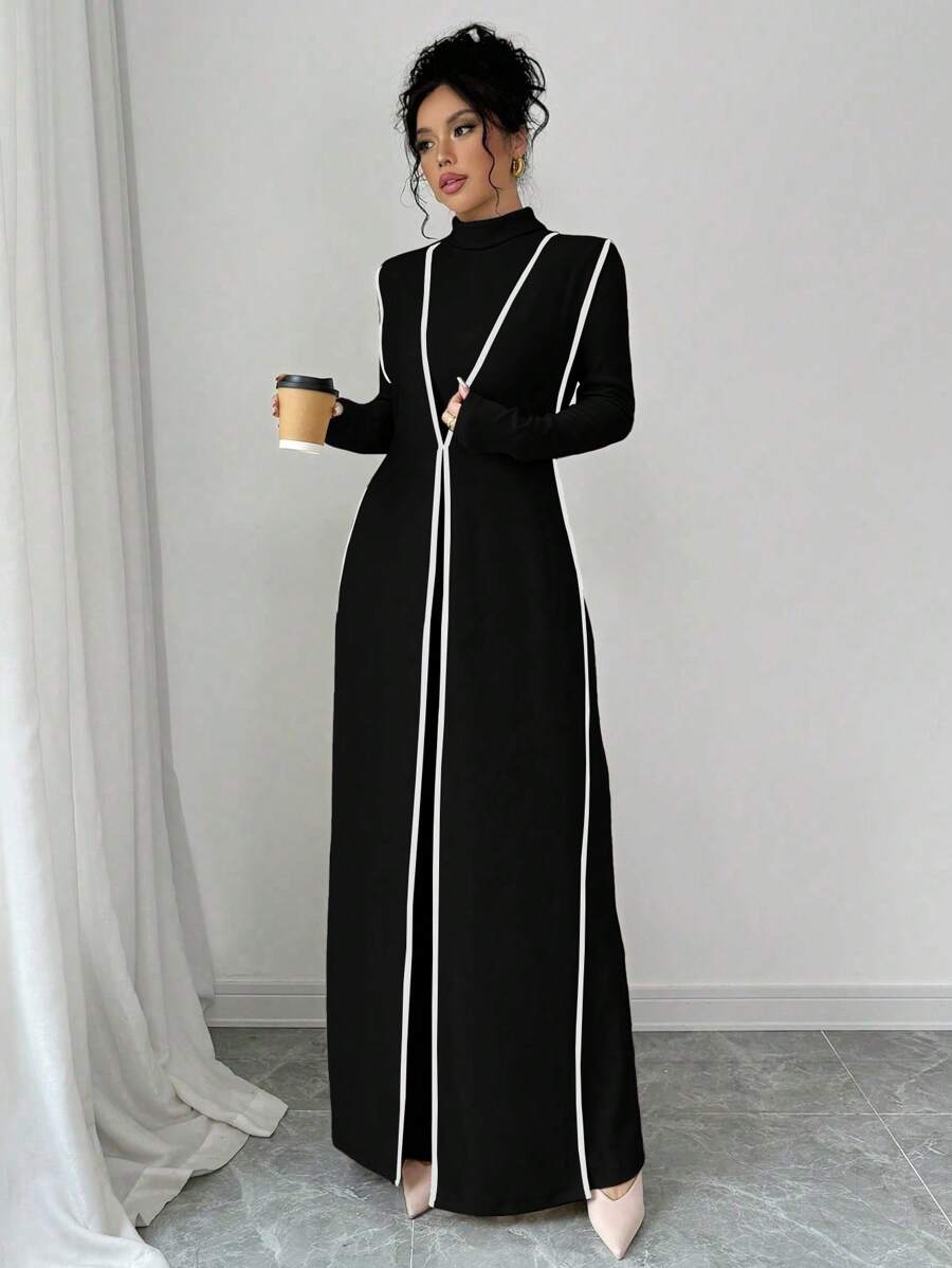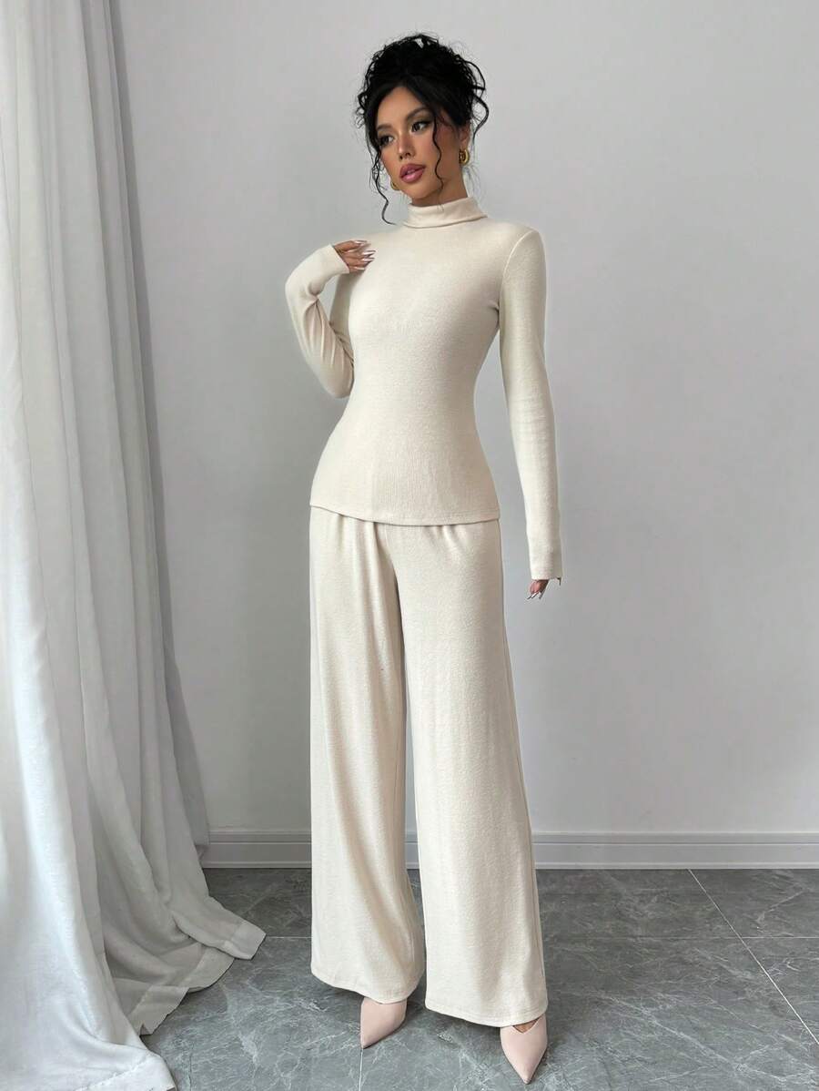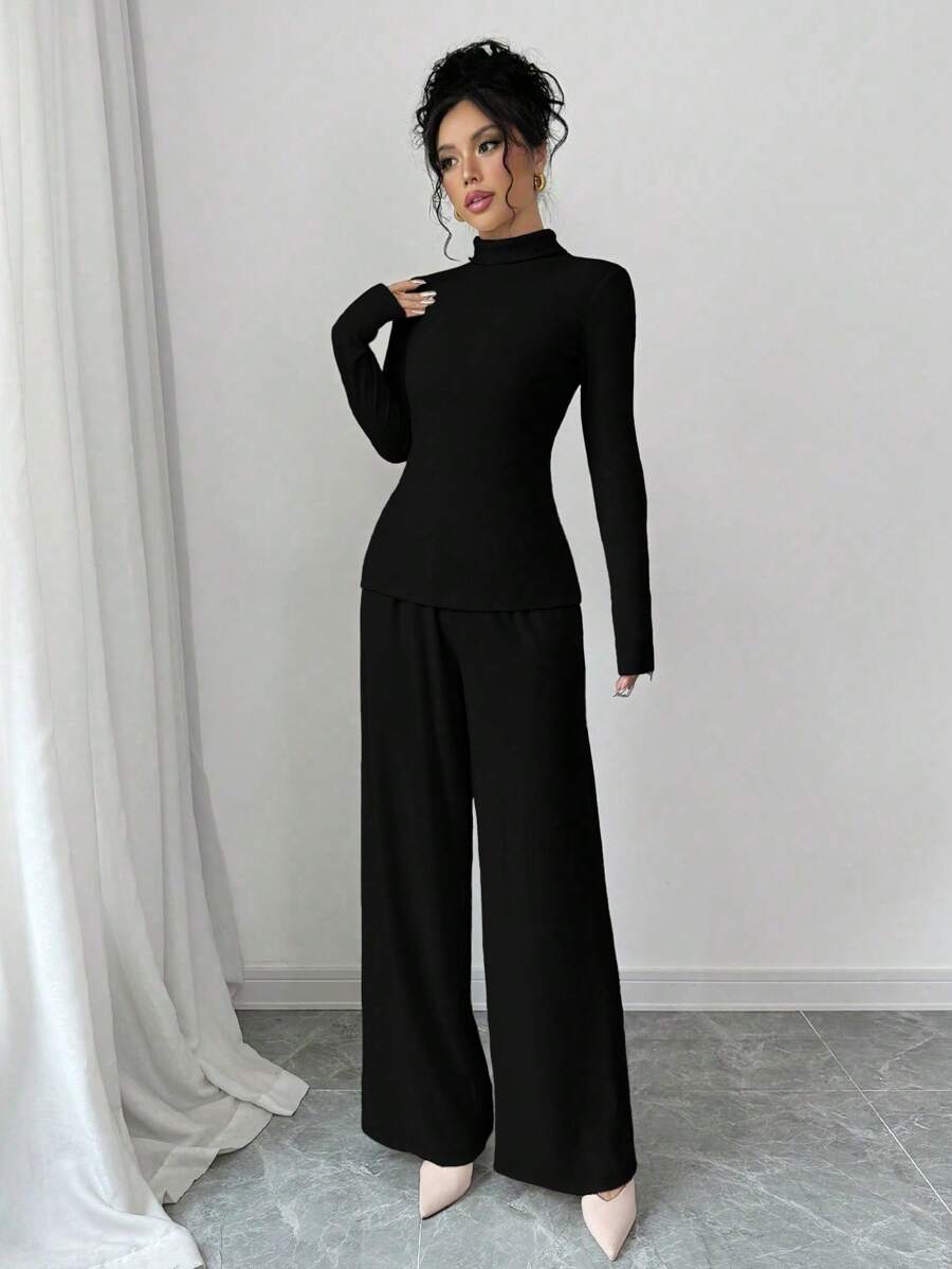 EMI 3pcs Set Women's Knit Velvet Ribbed High Neck Colorblock Long Jumpsuit Fall Cloth For Women