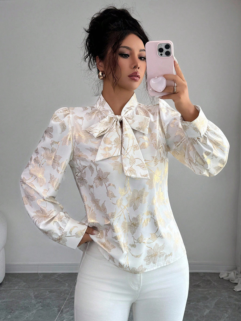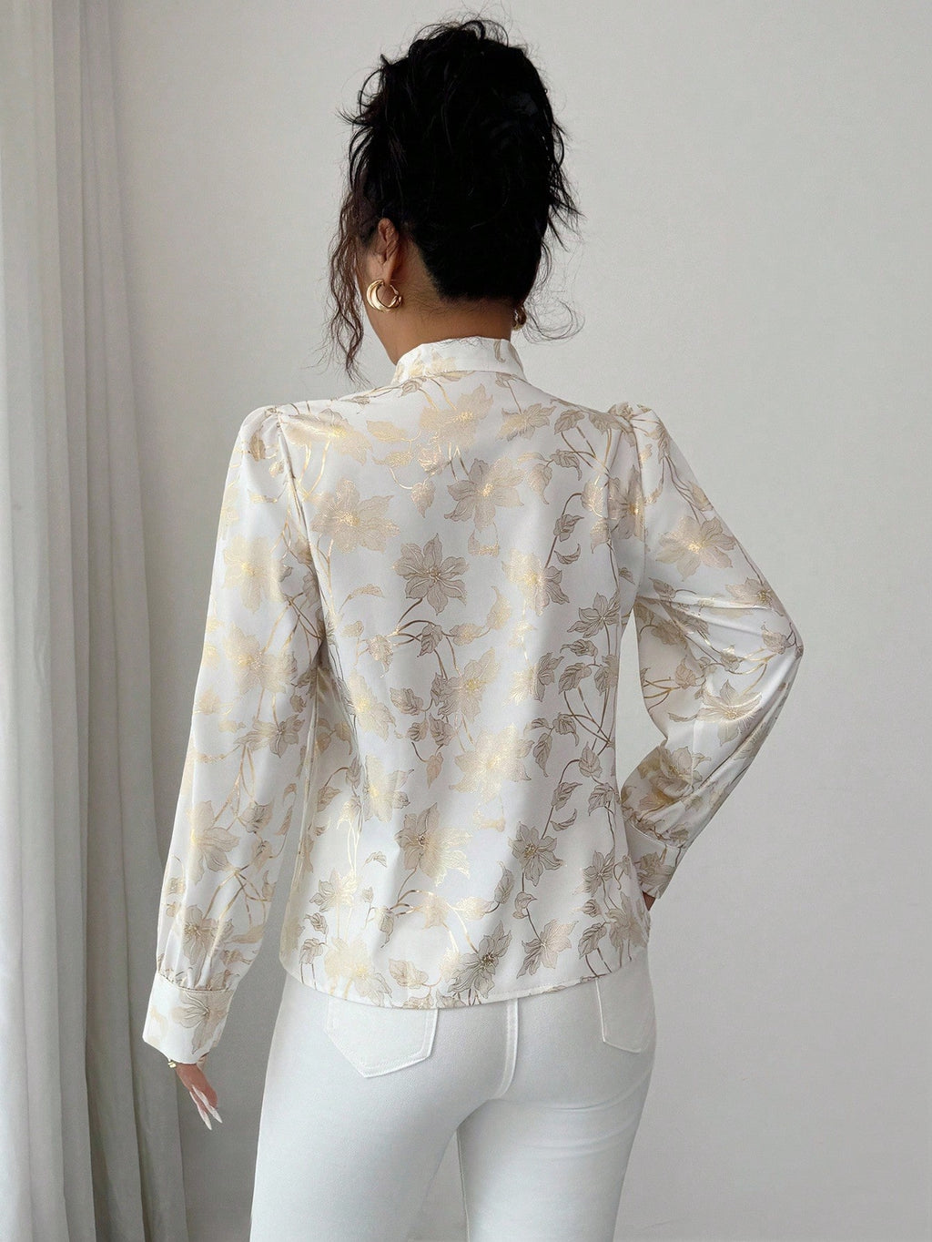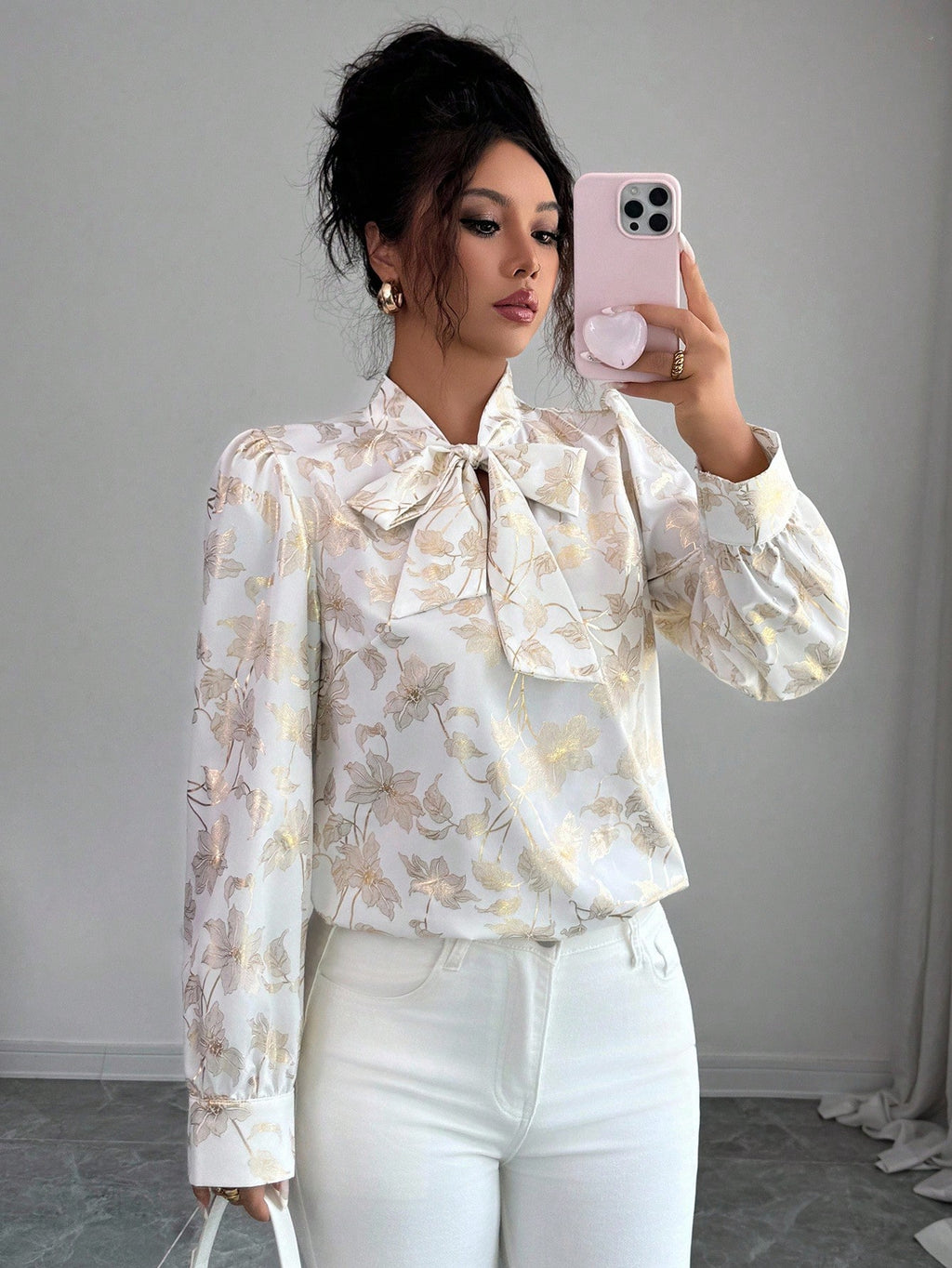EMI Women's Fashionable Elegant Floral Foil Print Blouse, Autumn/Winter Fall Cloth For Women