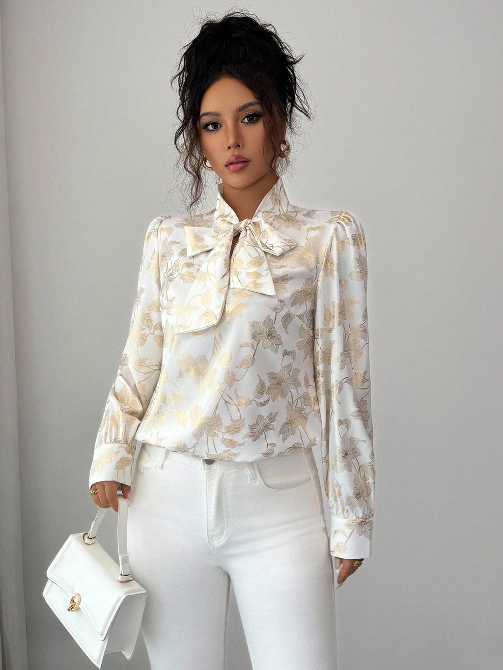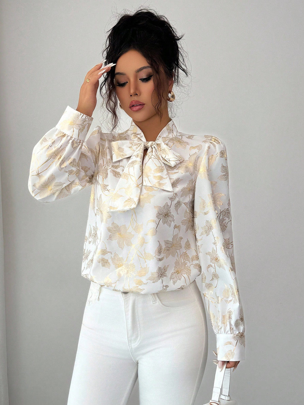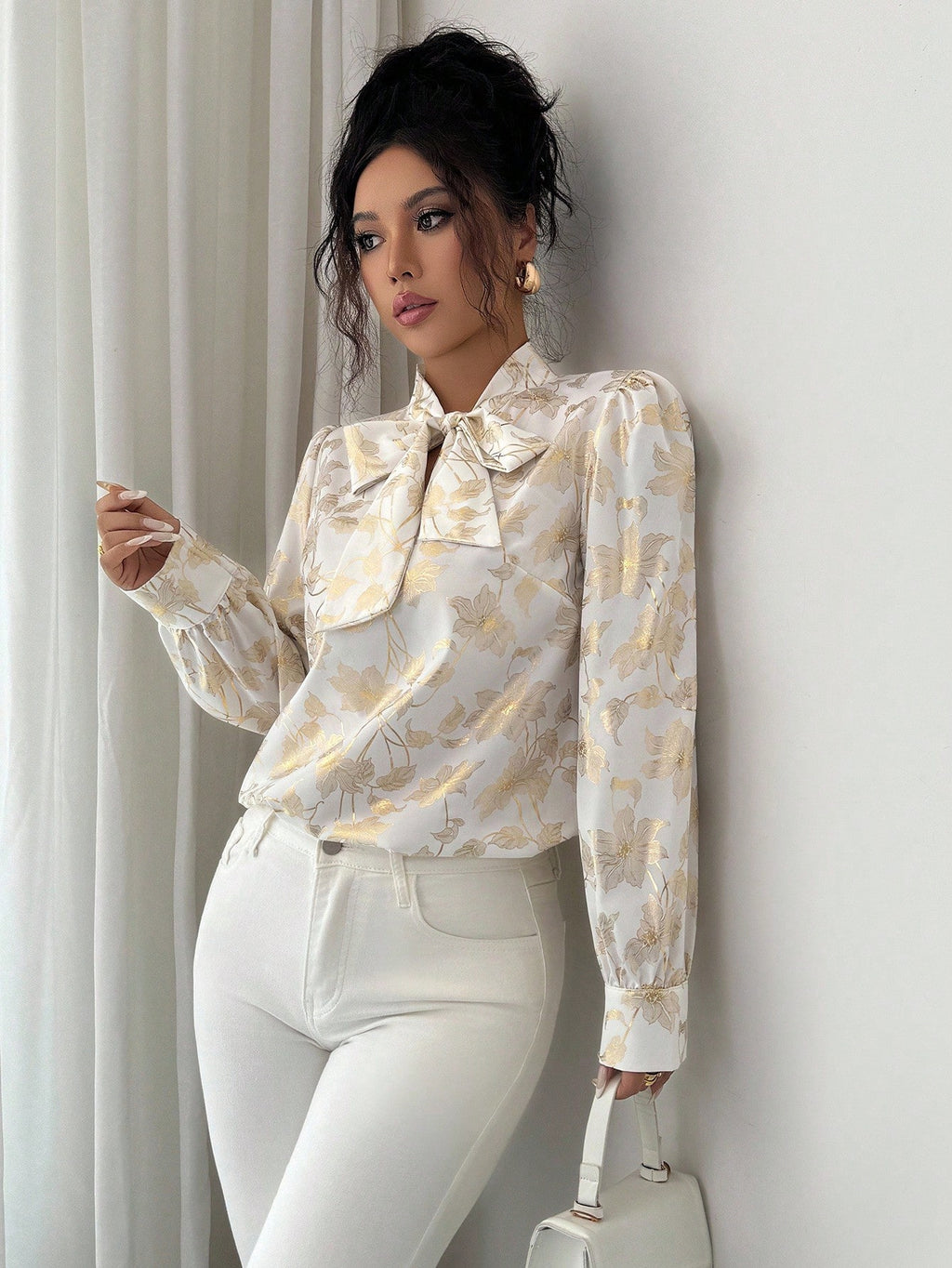 EMI Women's Fashionable Elegant Floral Foil Print Blouse, Autumn/Winter Fall Cloth For Women