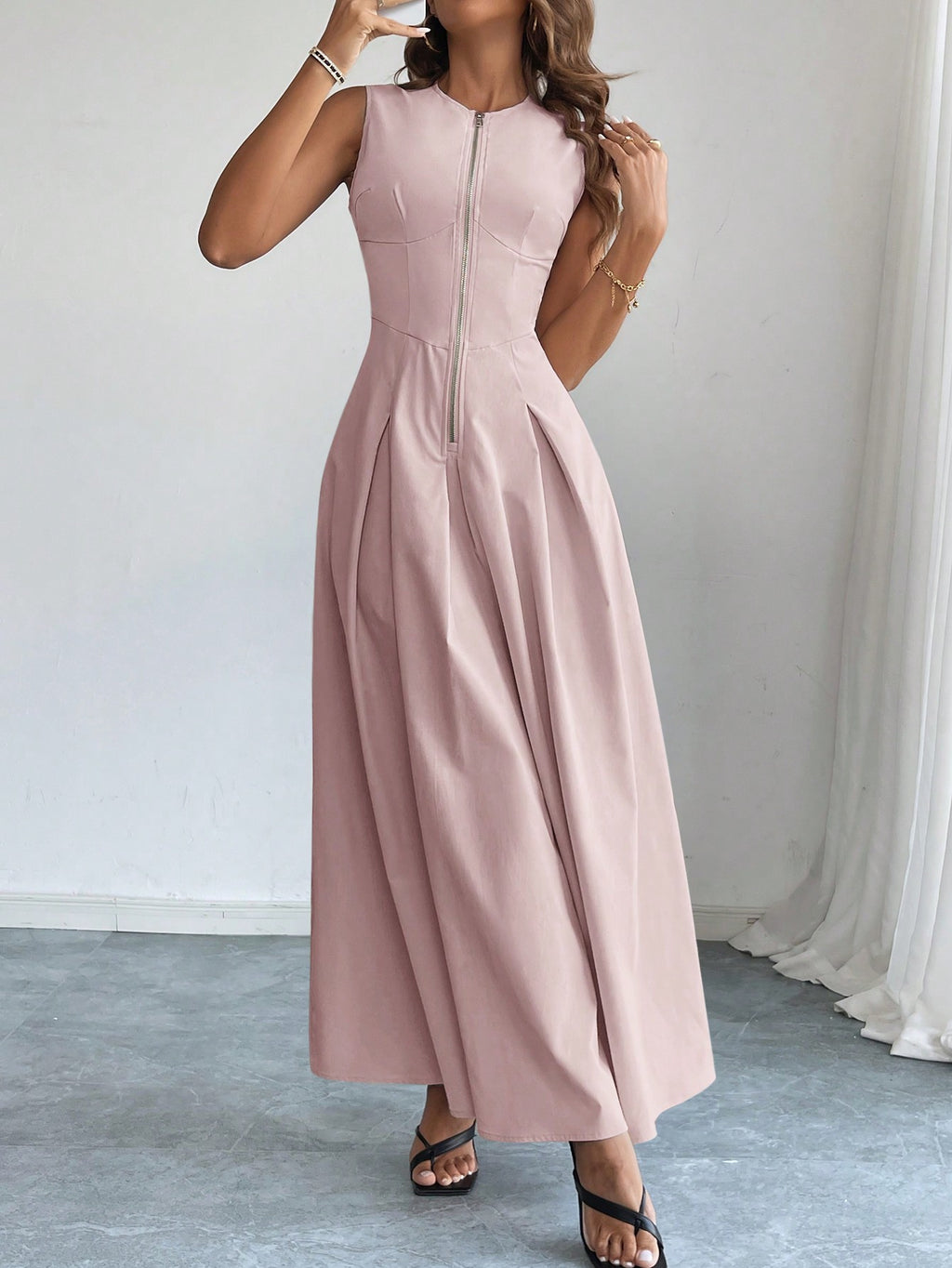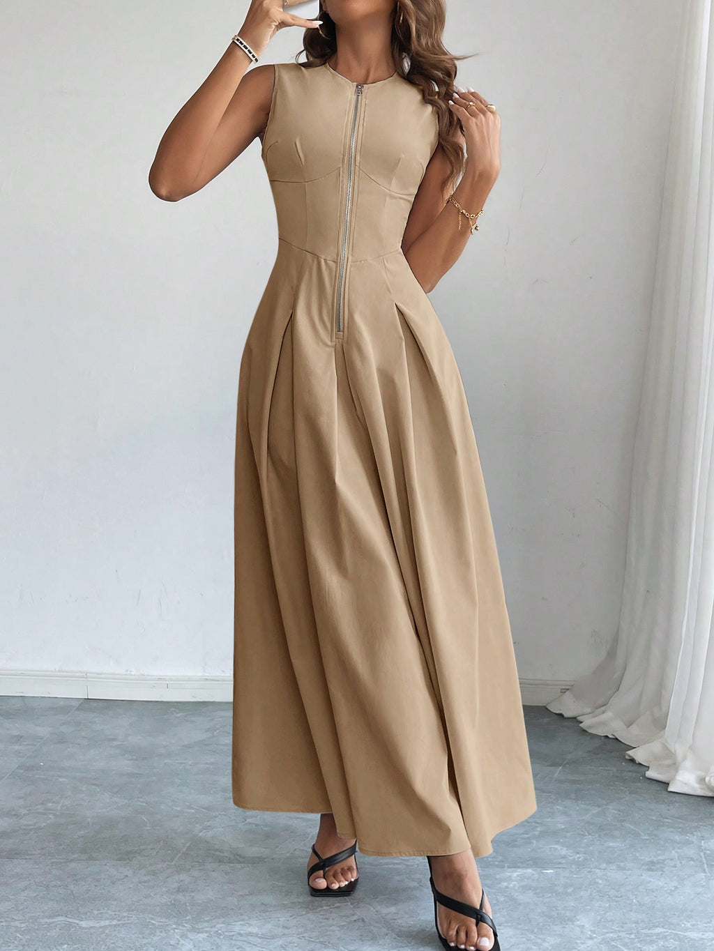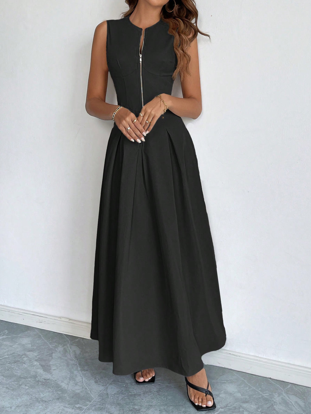 BELLAVOG Women Elegant Commuter Round Neck Sleeveless Front Zipper Dress, Very Flared