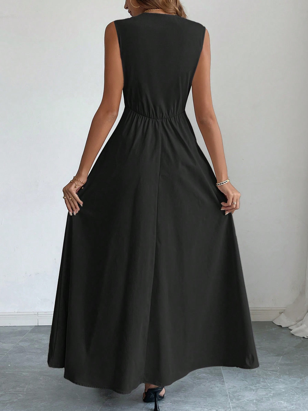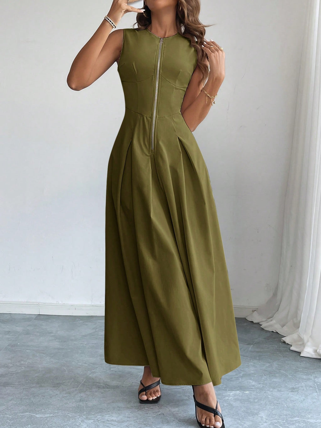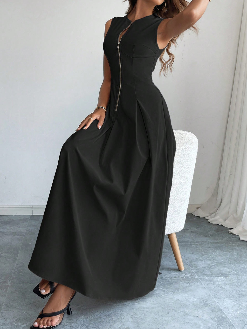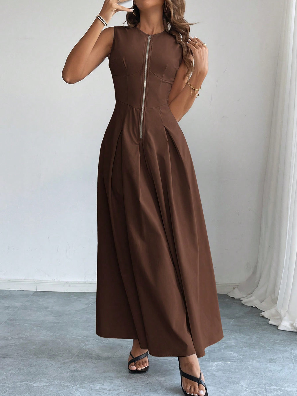 BELLAVOG Women Elegant Commuter Round Neck Sleeveless Front Zipper Dress, Very Flared