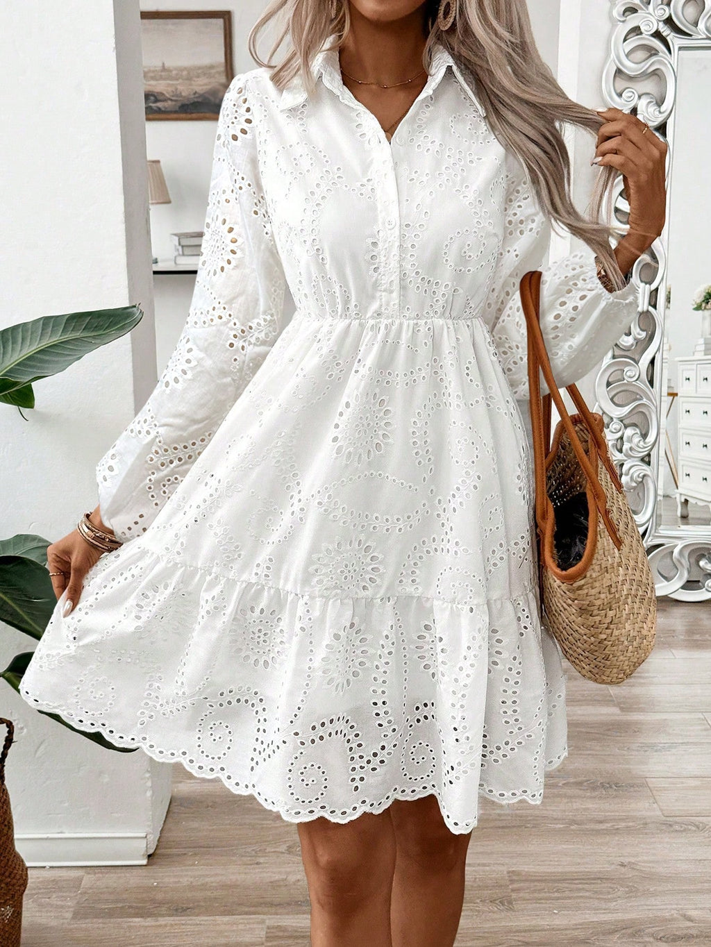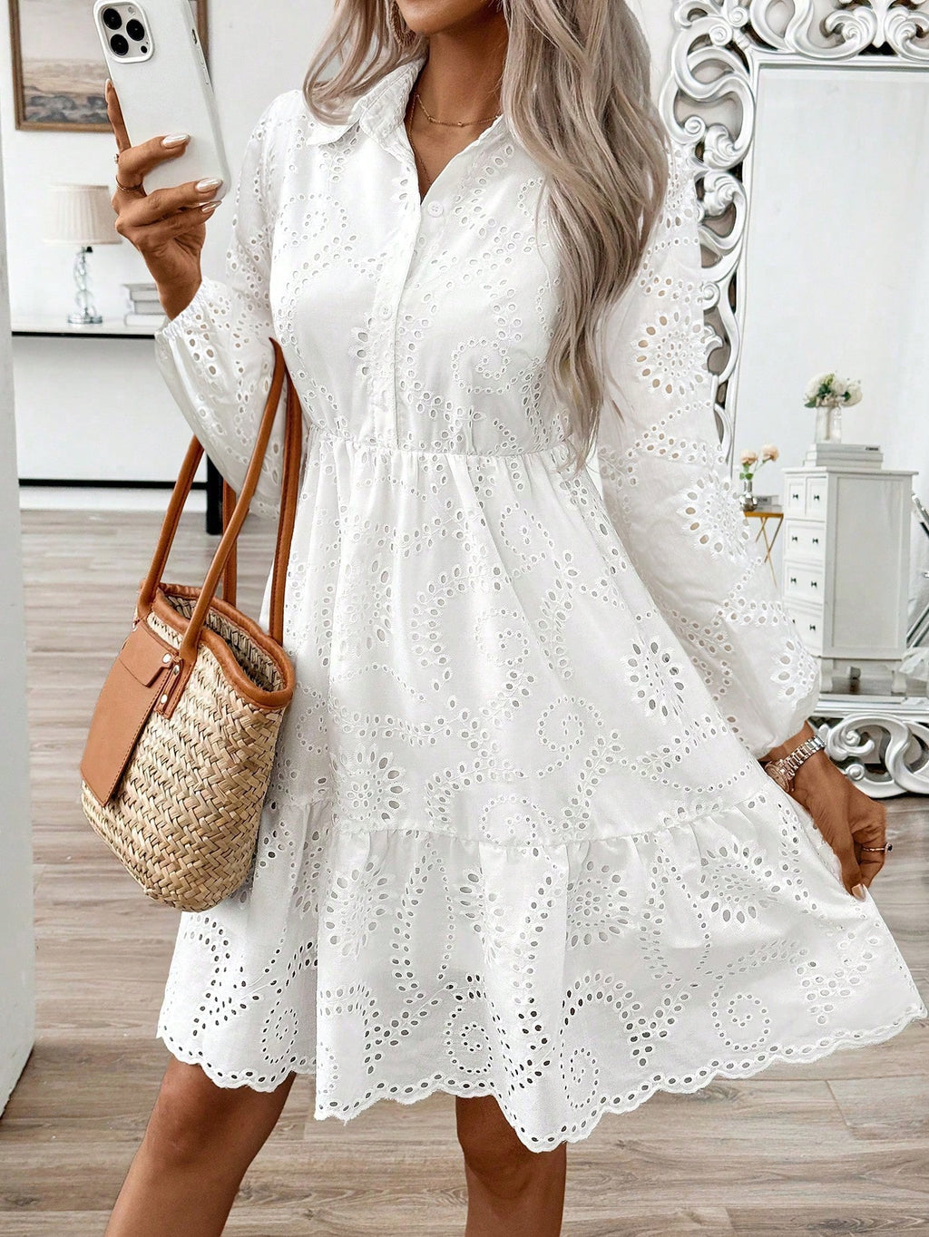 BELLAVOG Women's Hollow Out Lantern Sleeve Long Sleeve Dress