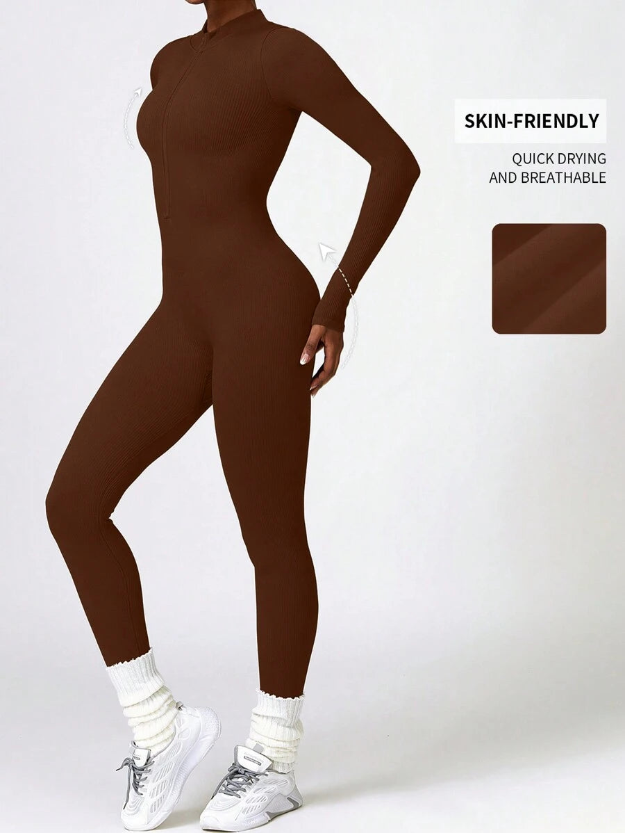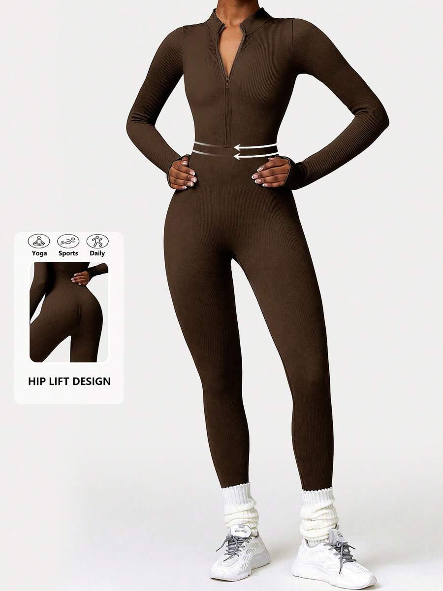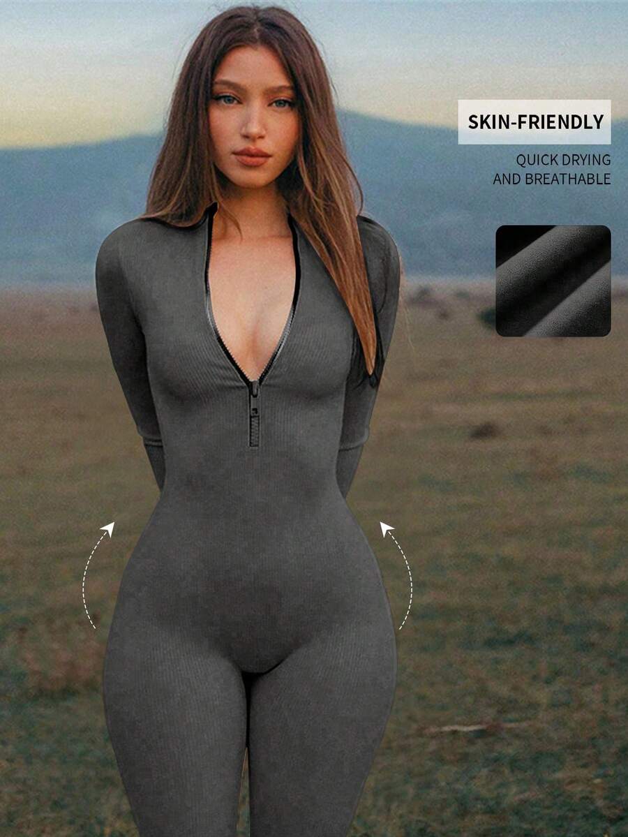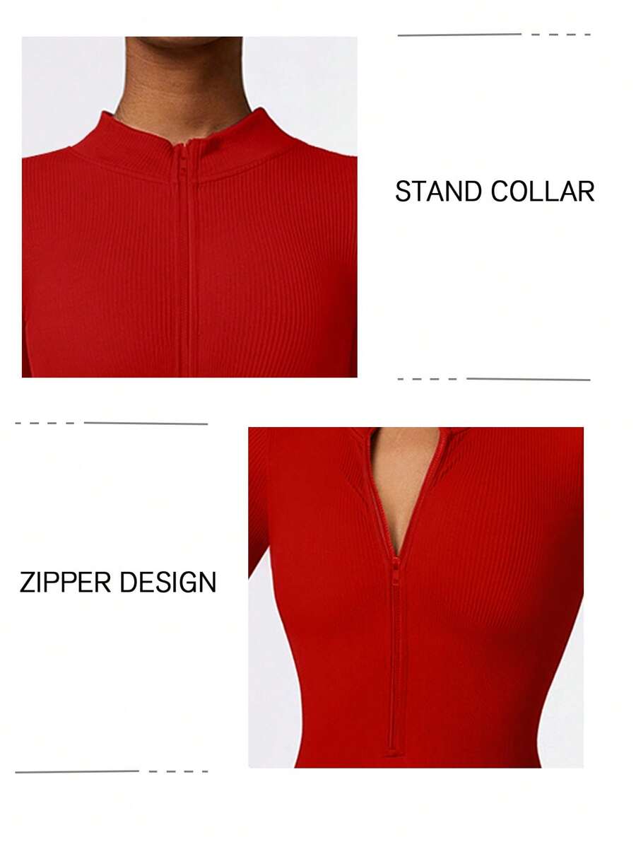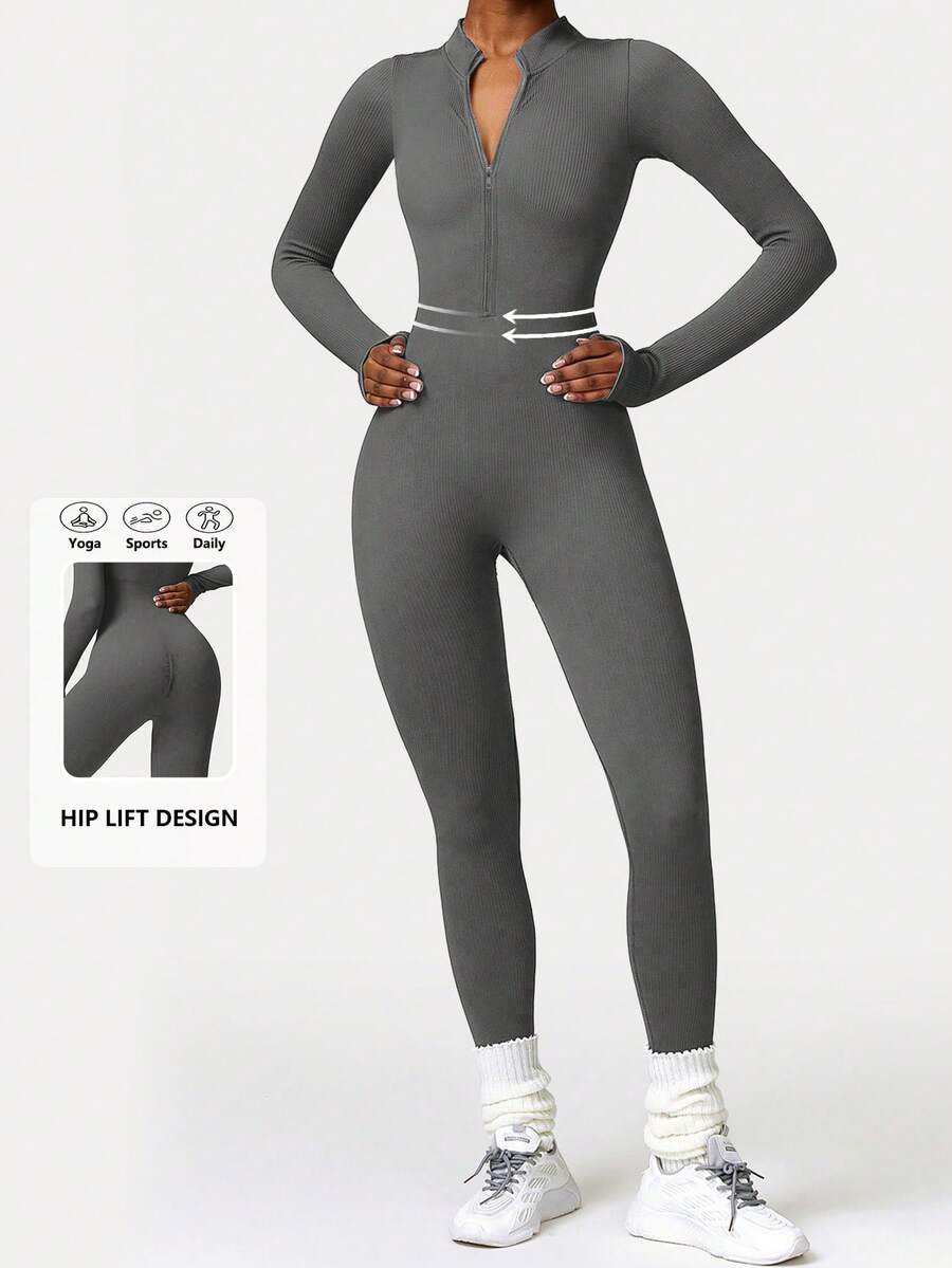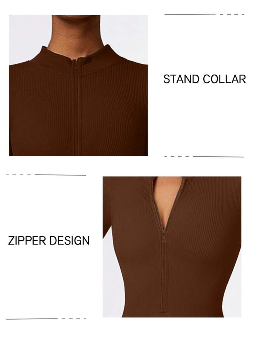 INES Ženske Jednolične Zip-Up Dugi Rukav Rebrasti Kombinezon za Jogu, Trčanje, Na Otvorenom