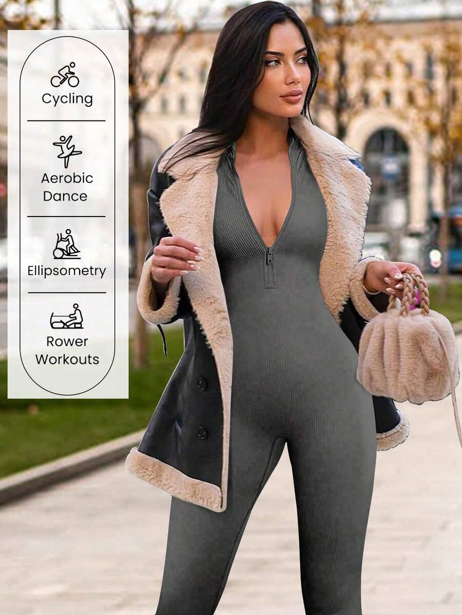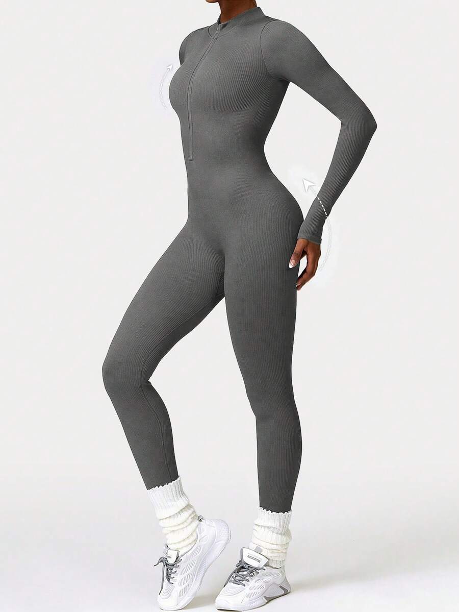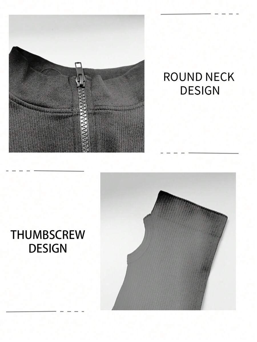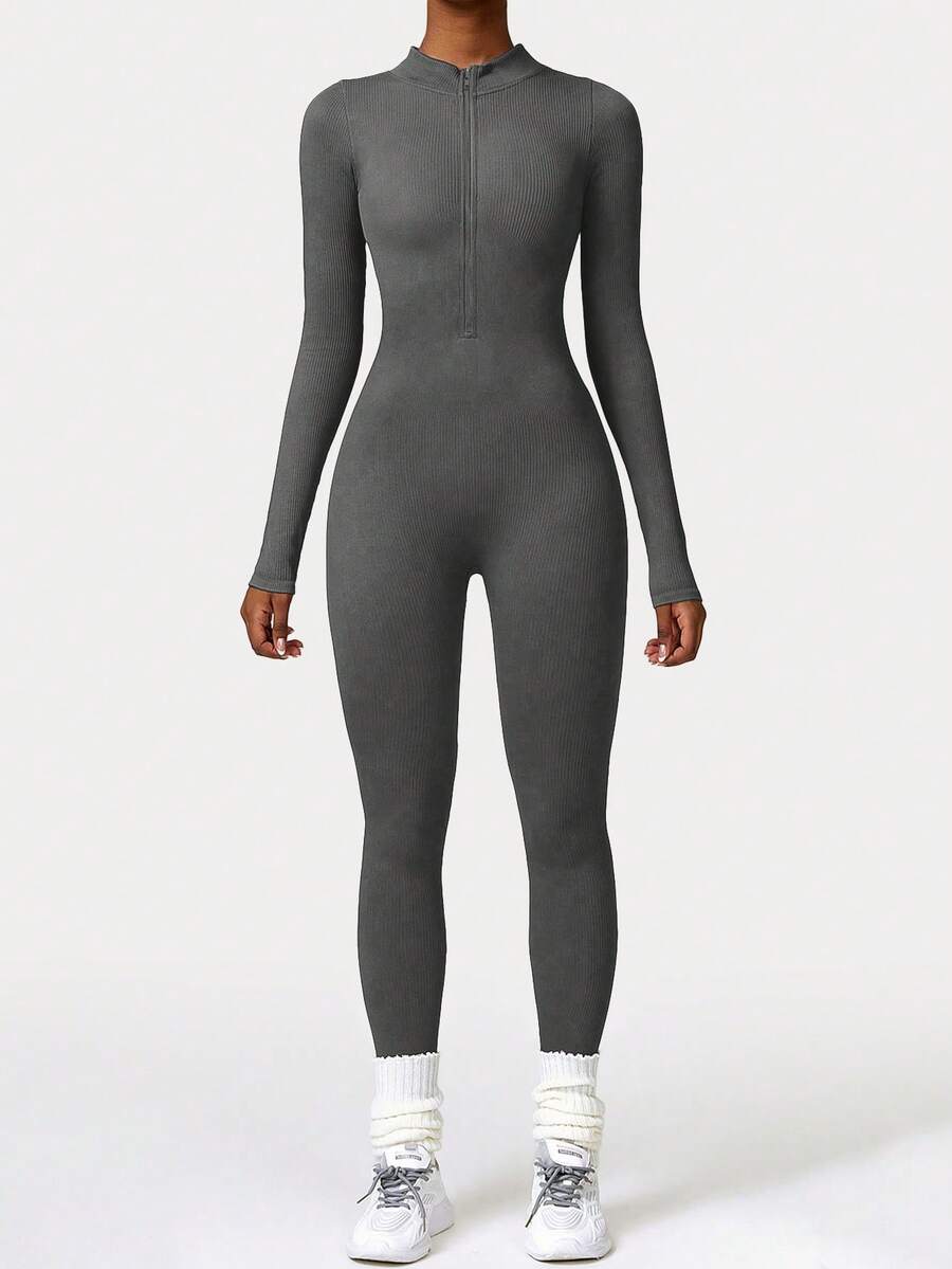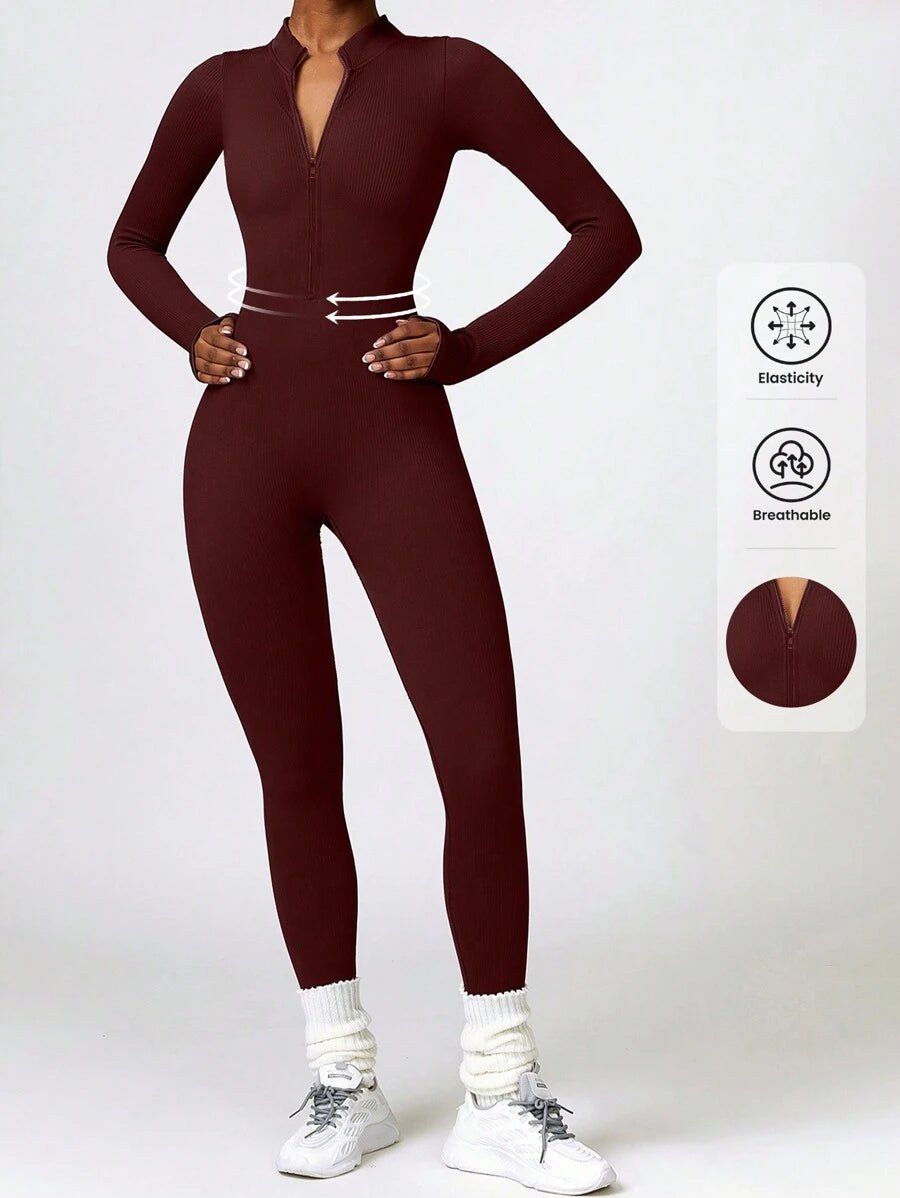 INES Ženske Jednolične Zip-Up Dugi Rukav Rebrasti Kombinezon za Jogu, Trčanje, Na Otvorenom