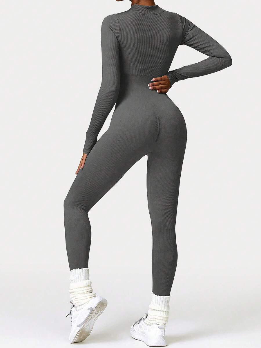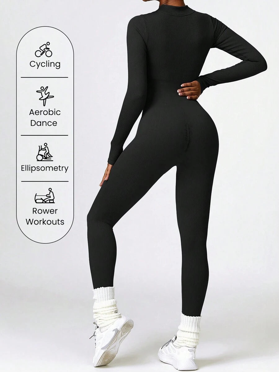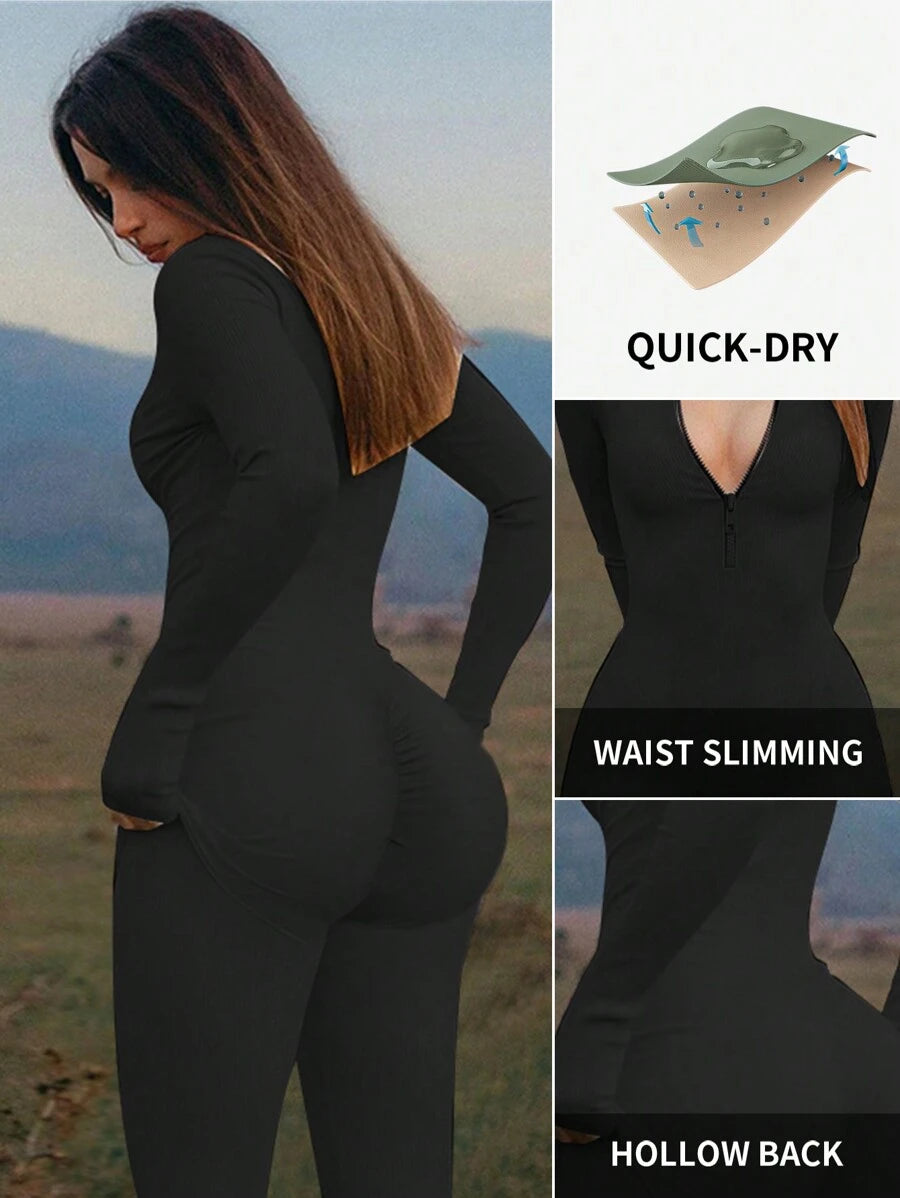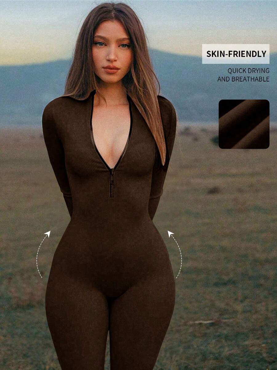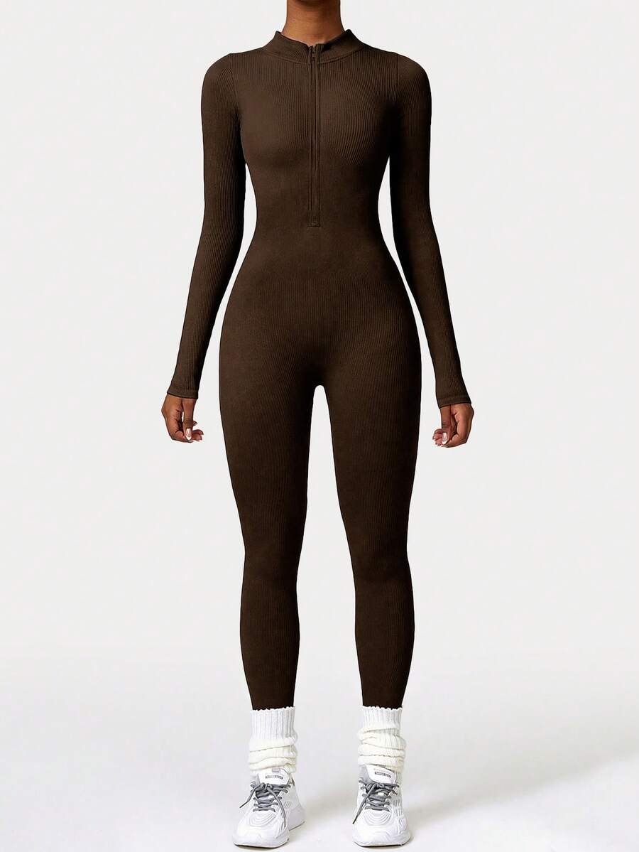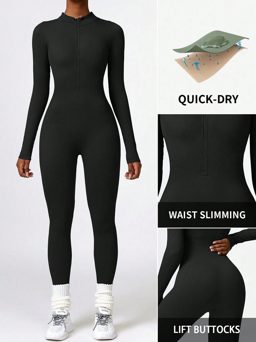INES Ženske Jednolične Zip-Up Dugi Rukav Rebrasti Kombinezon za Jogu, Trčanje, Na Otvorenom
