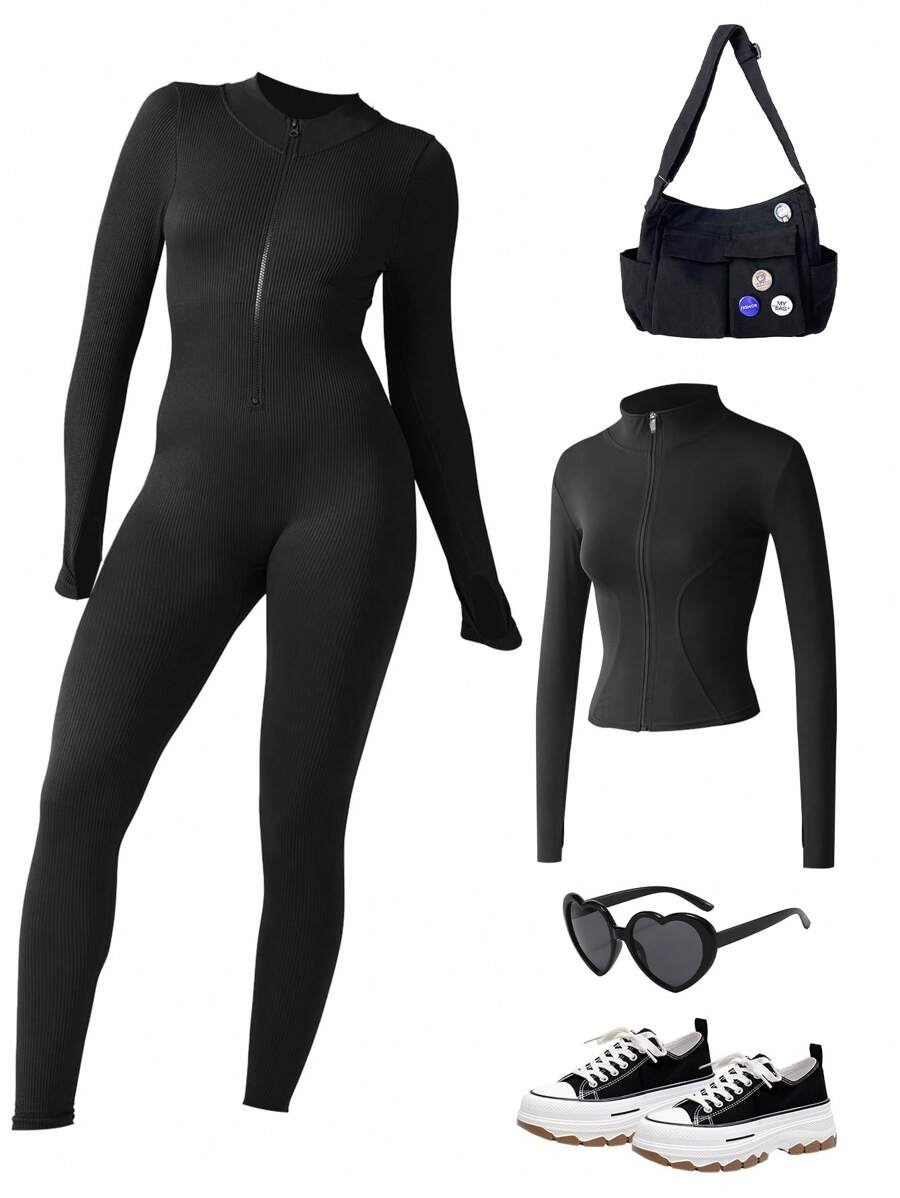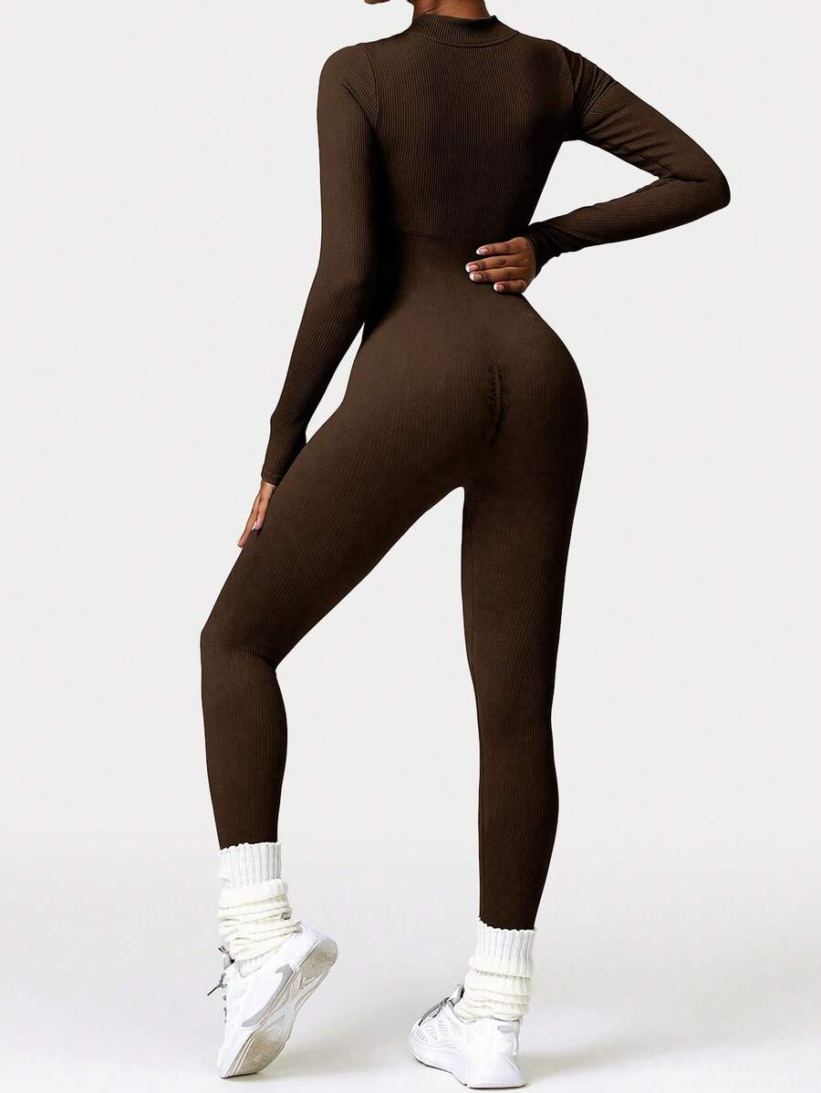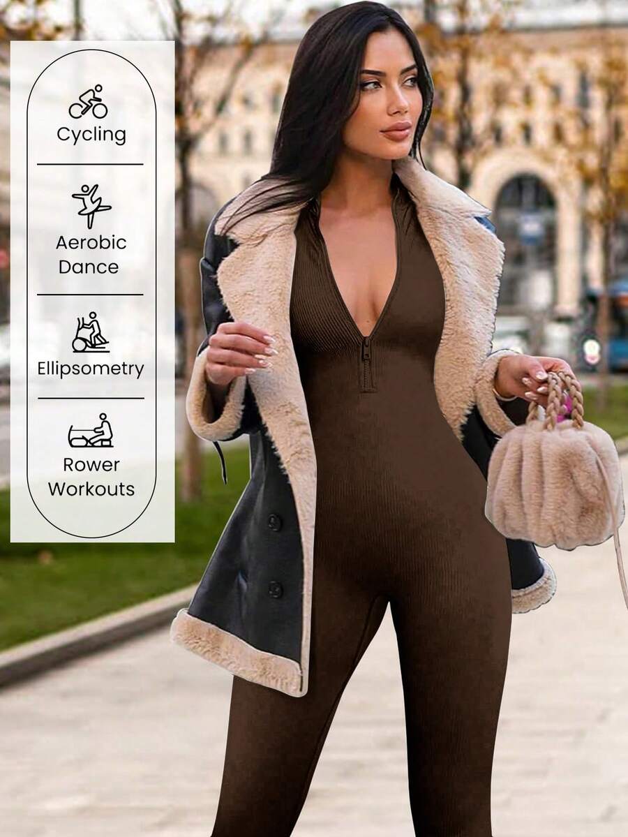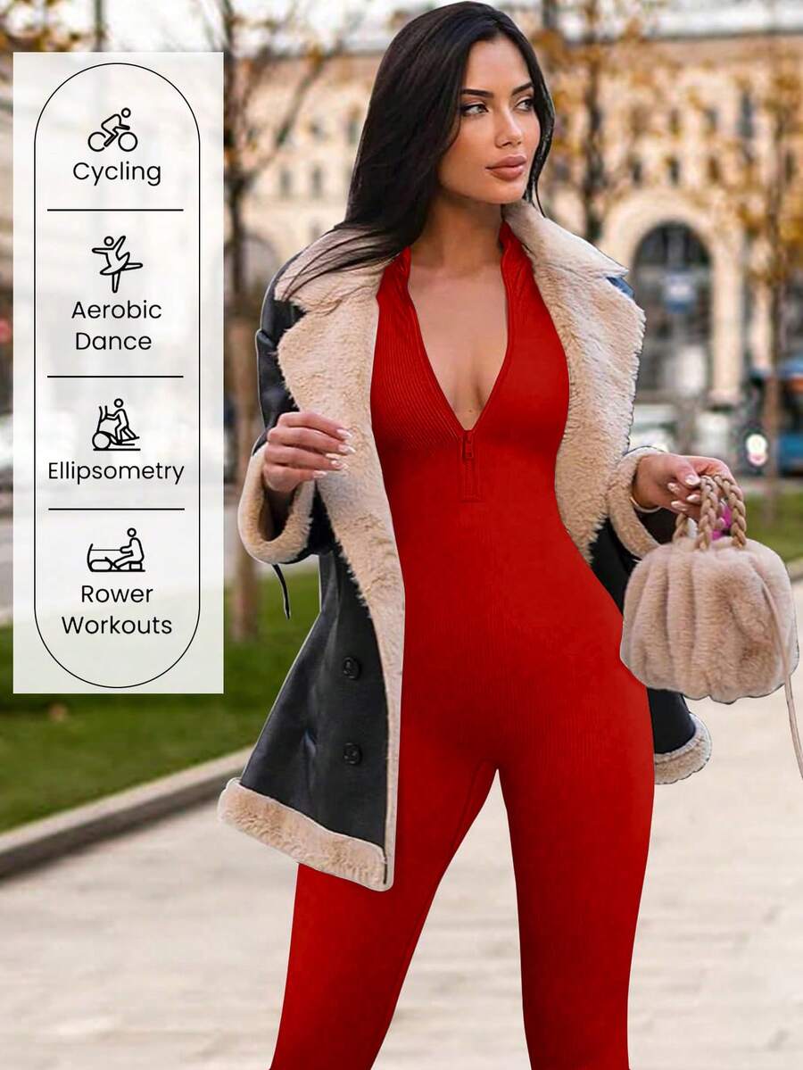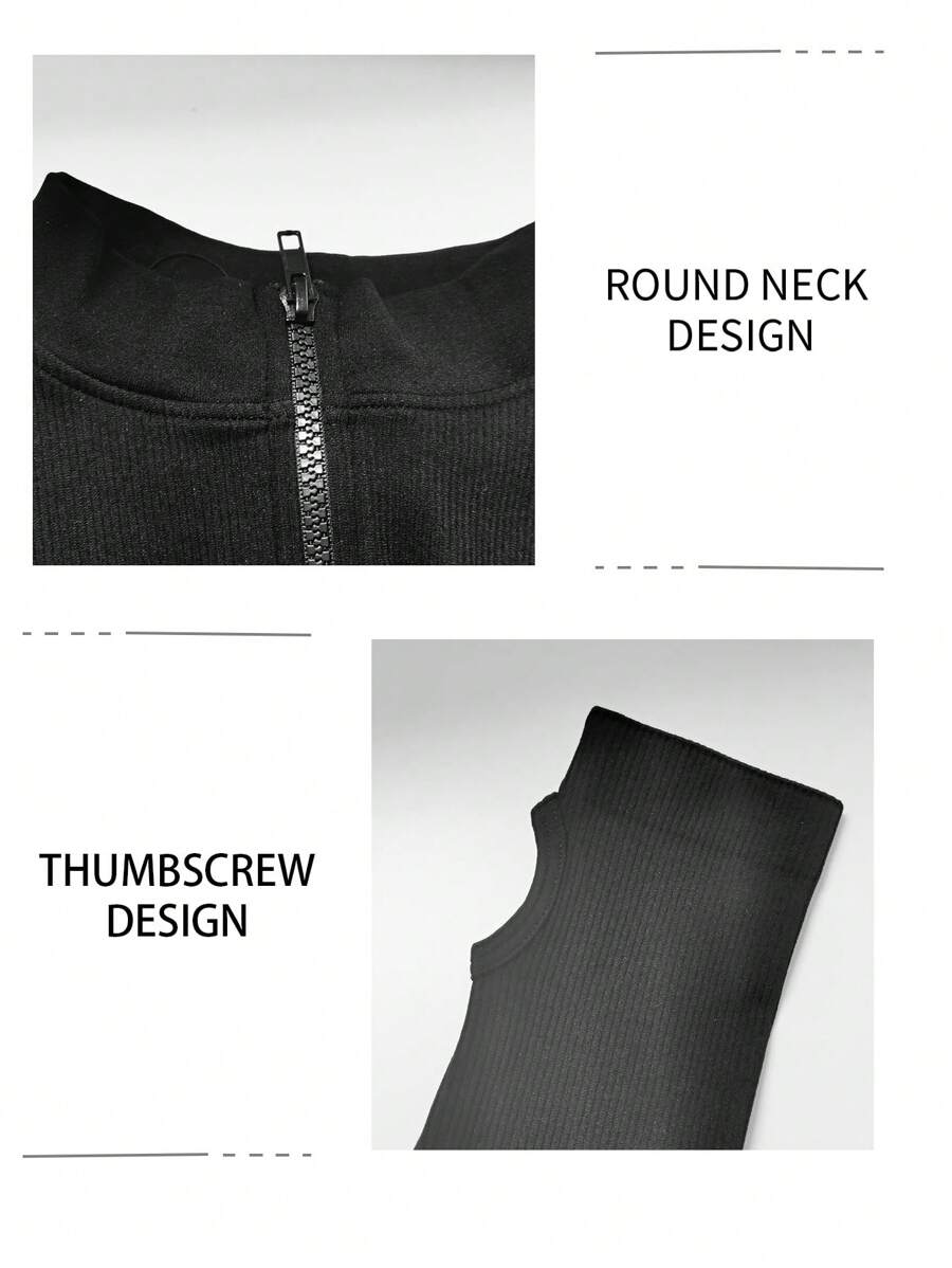 INES Ženske Jednolične Zip-Up Dugi Rukav Rebrasti Kombinezon za Jogu, Trčanje, Na Otvorenom