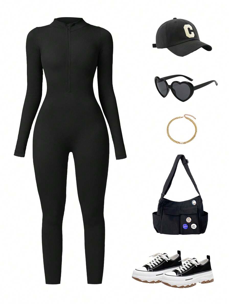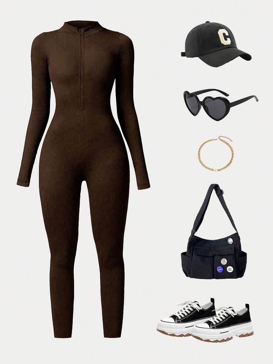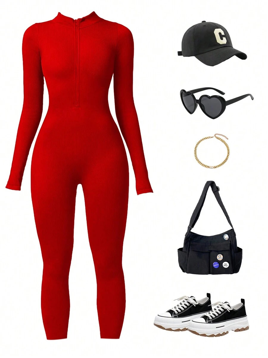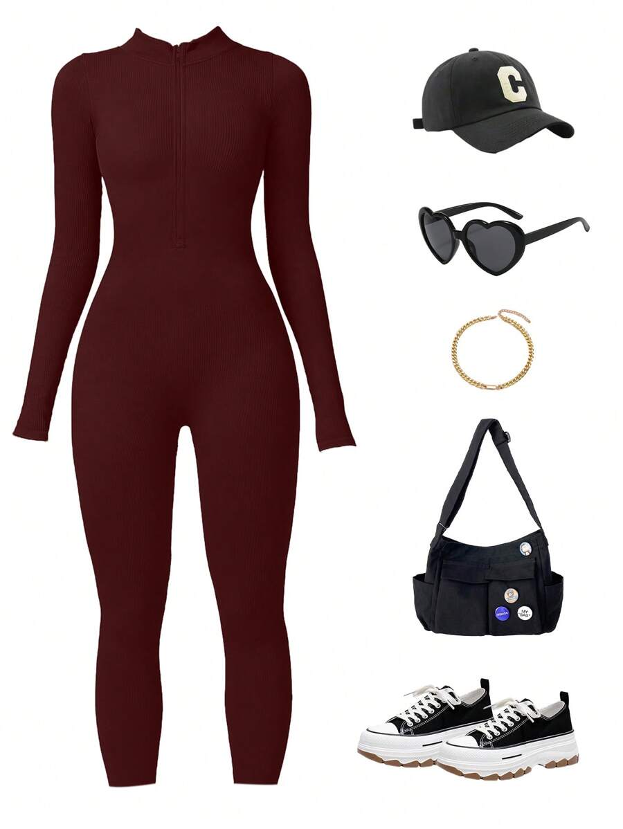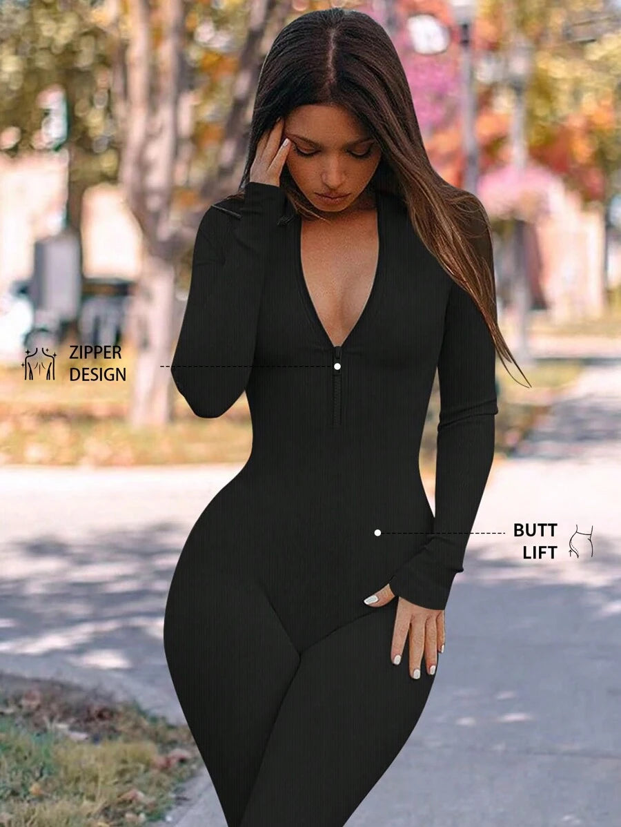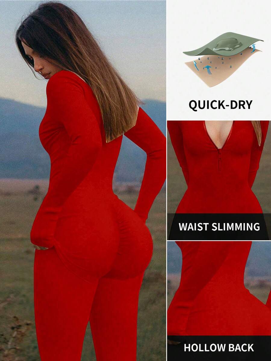INES Ženske Jednolične Zip-Up Dugi Rukav Rebrasti Kombinezon za Jogu, Trčanje, Na Otvorenom