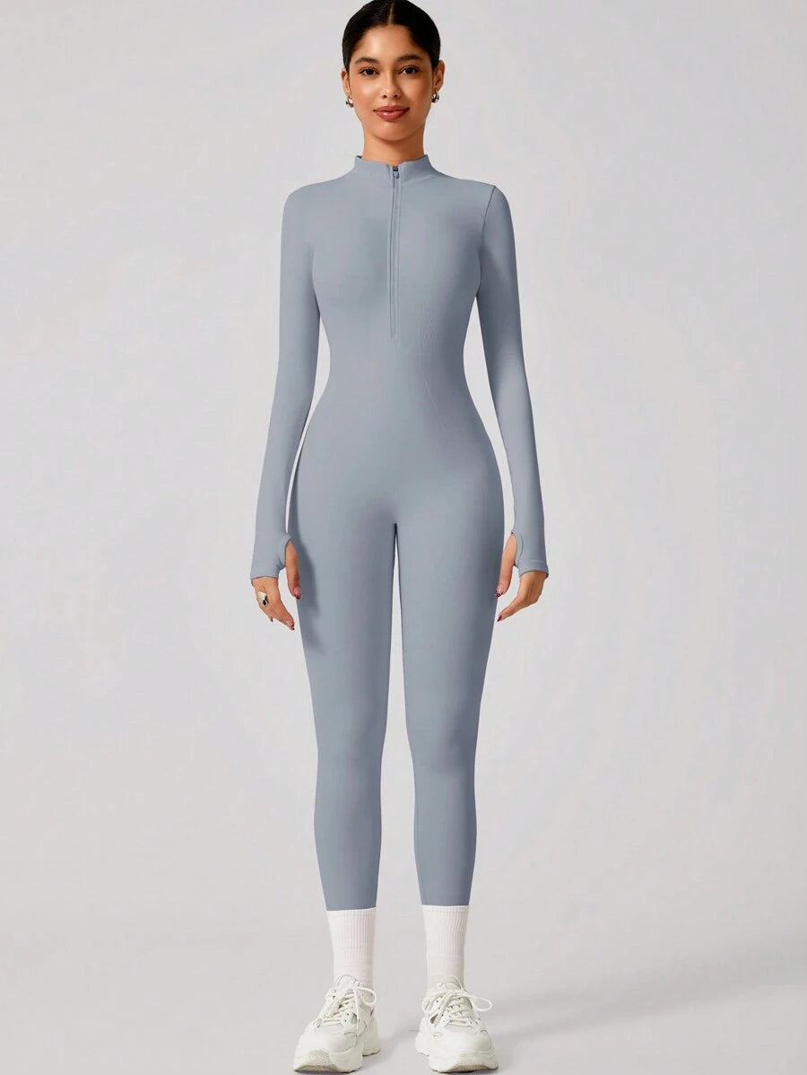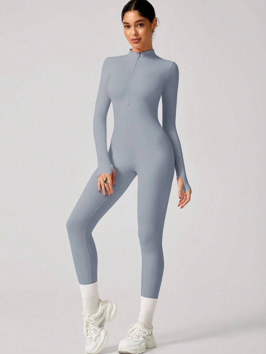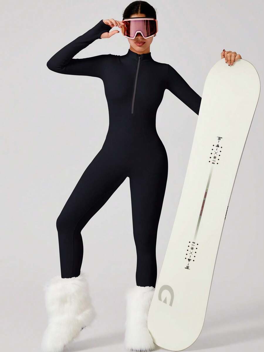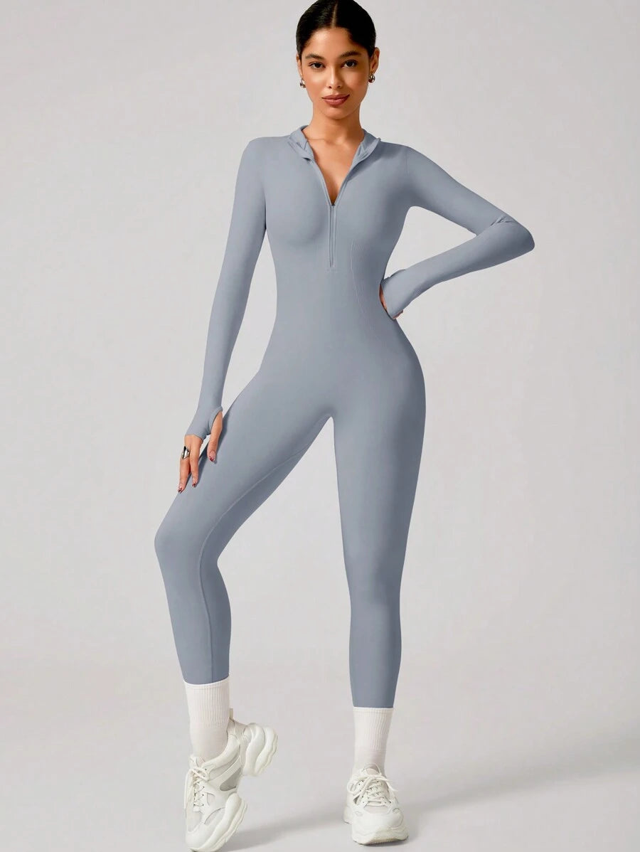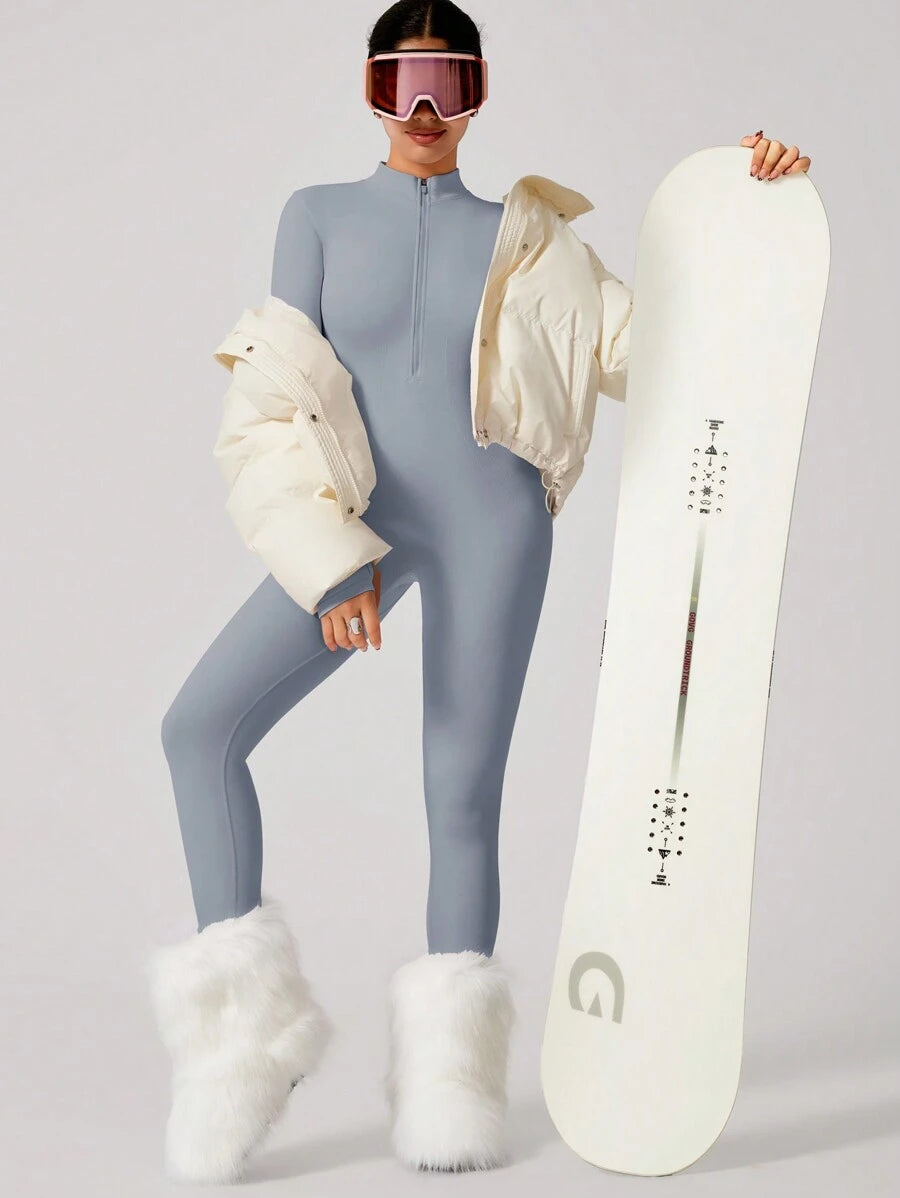 INES Ženski Seamless Jumpsuit s Prednjim Patentom za Aktivnosti, Uski Jumpsuit za Fitness Trening, Elastična Oblikovana Ski Oprema