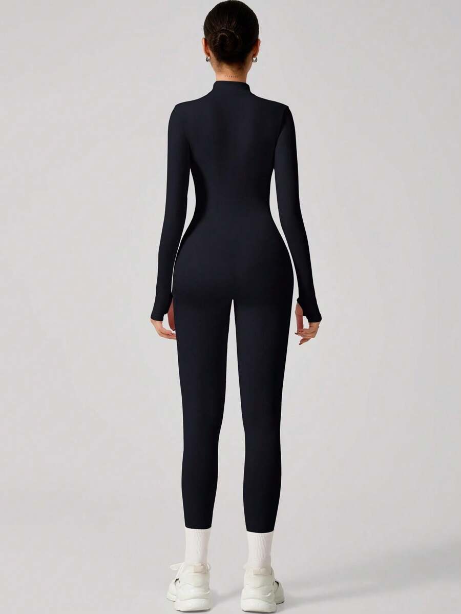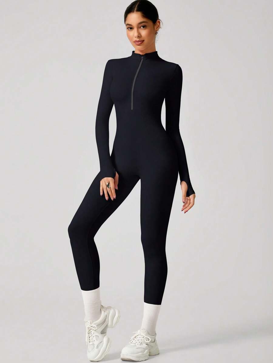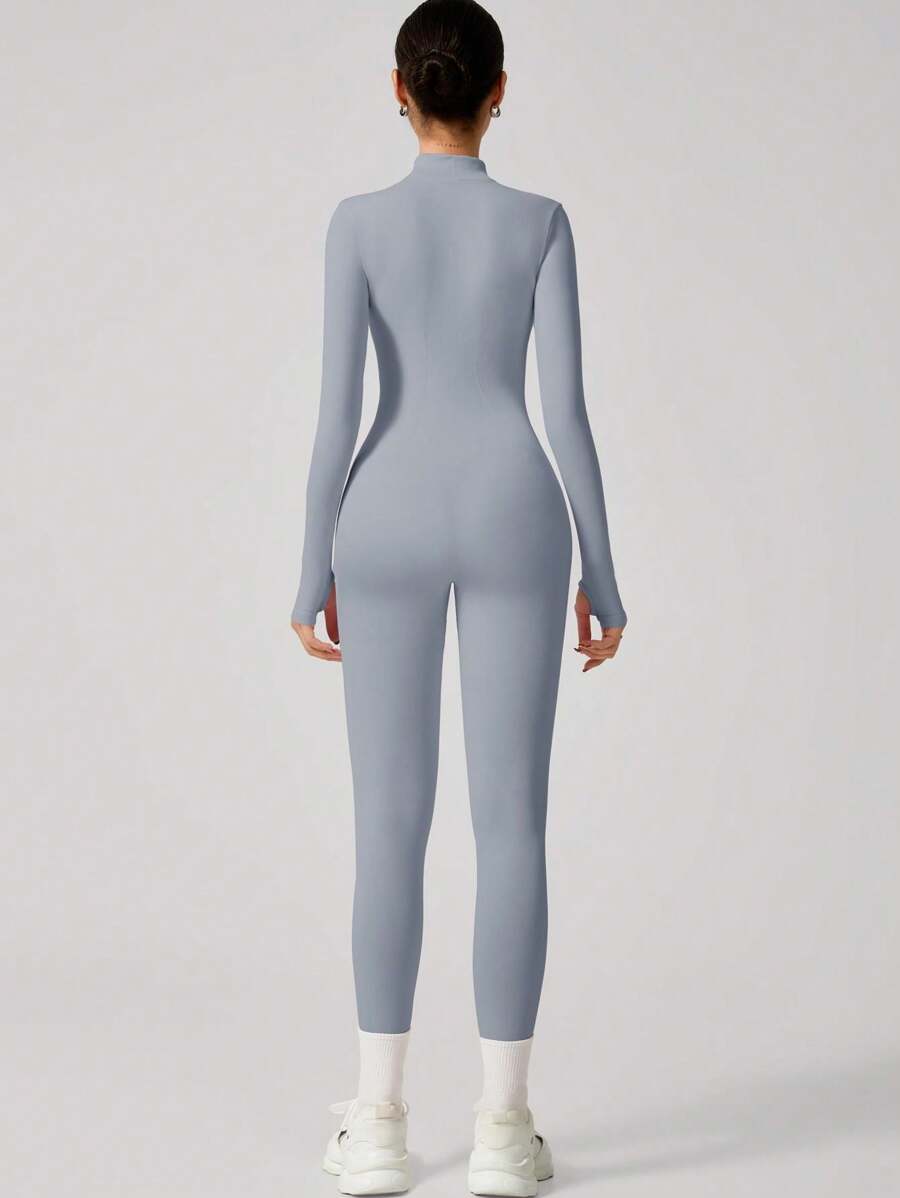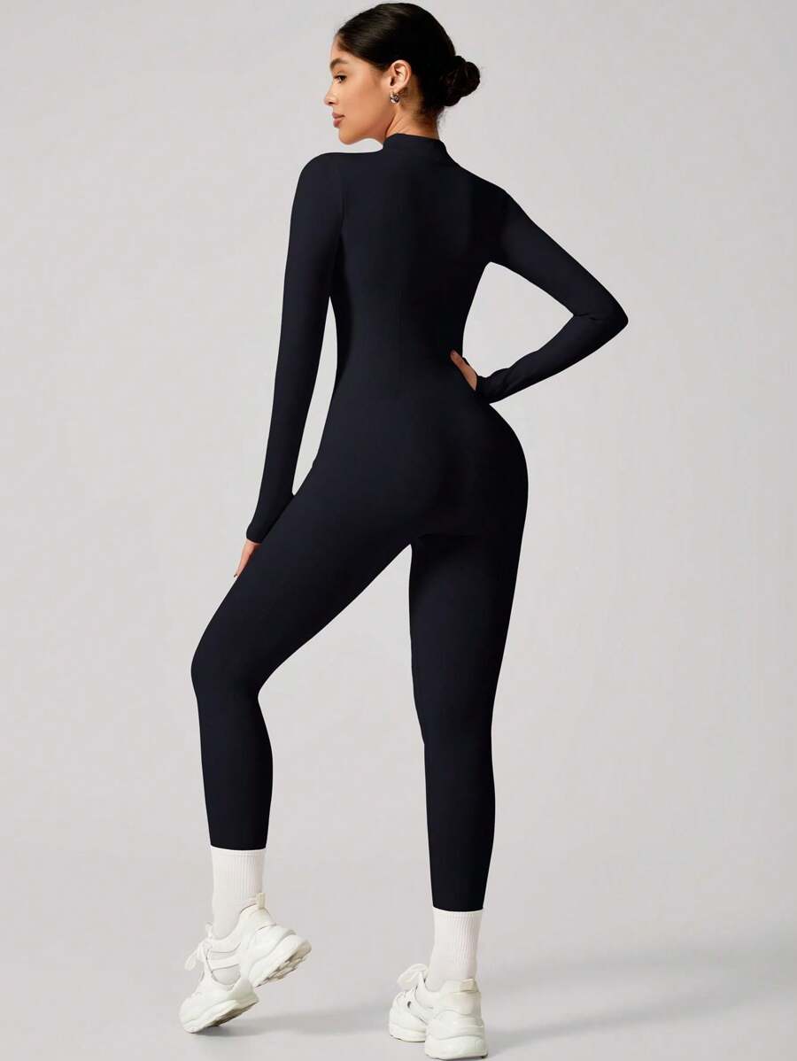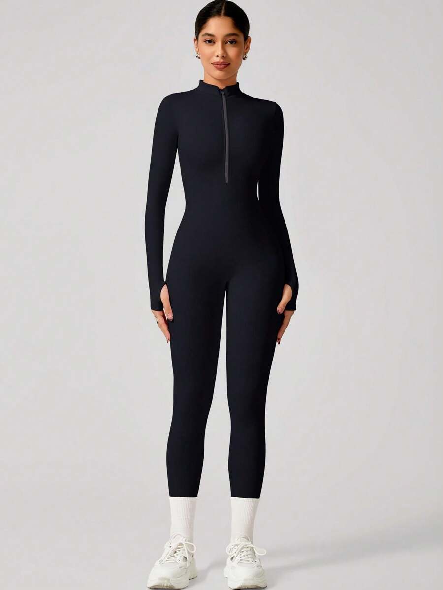 INES Ženski Seamless Jumpsuit s Prednjim Patentom za Aktivnosti, Uski Jumpsuit za Fitness Trening, Elastična Oblikovana Ski Oprema