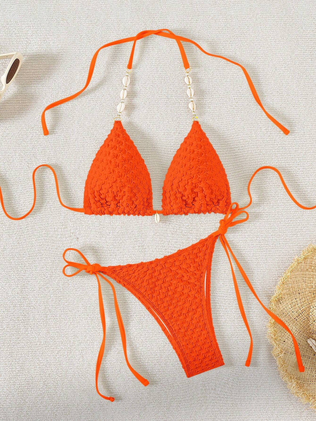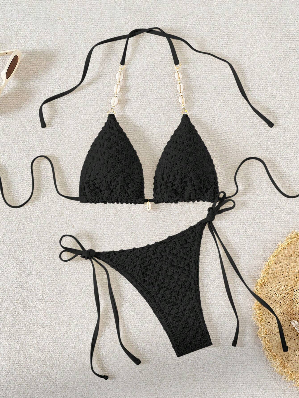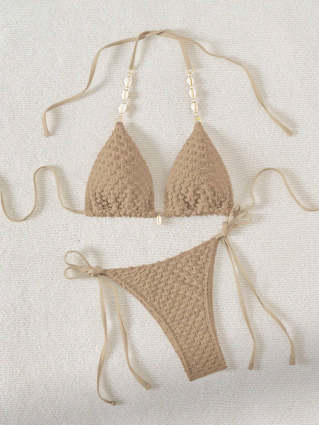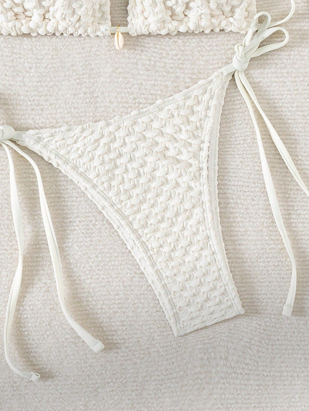 Jednobojni teksturirani odvojeni komplet kupaćeg kostima za plažu sa perlama