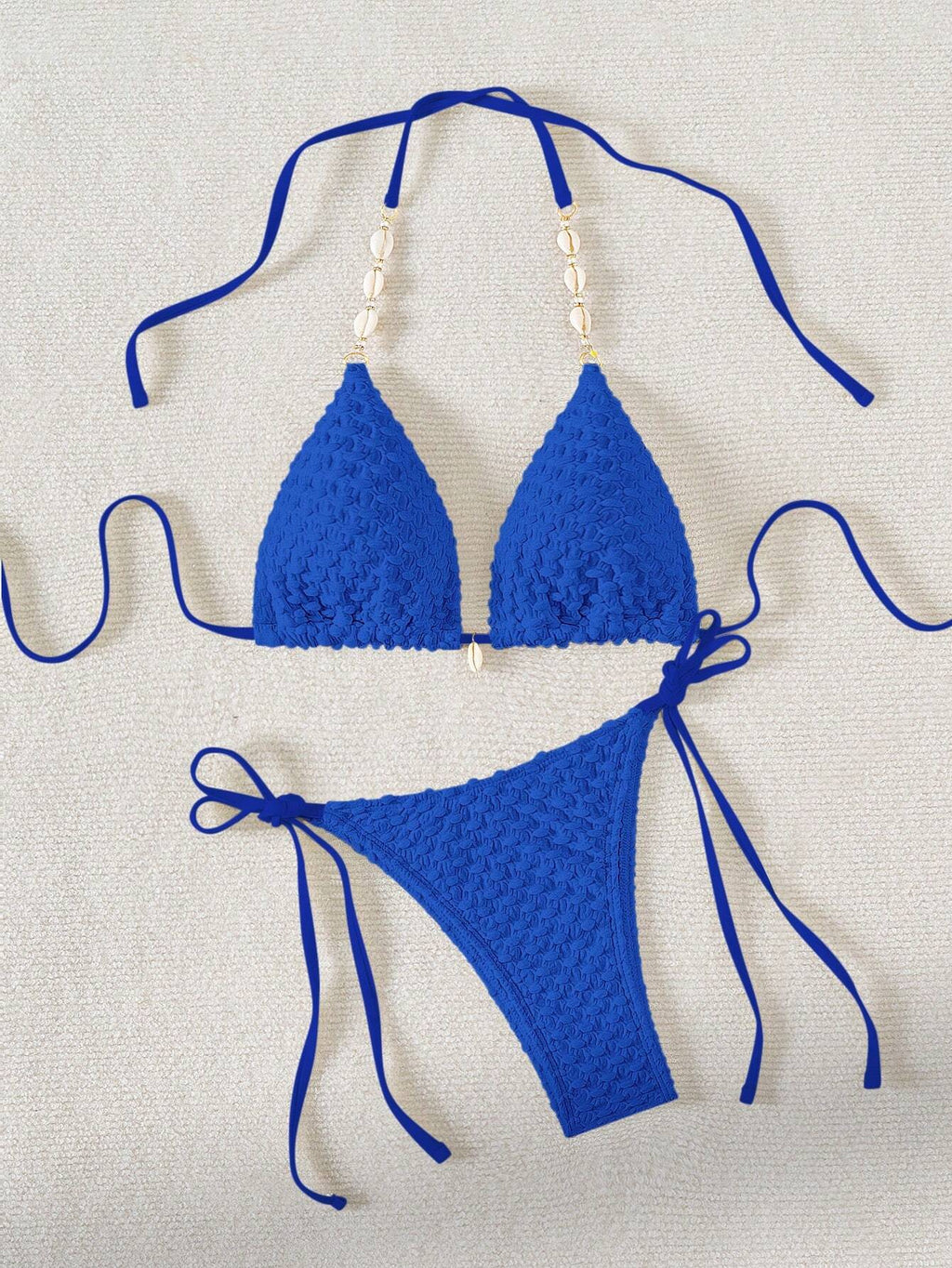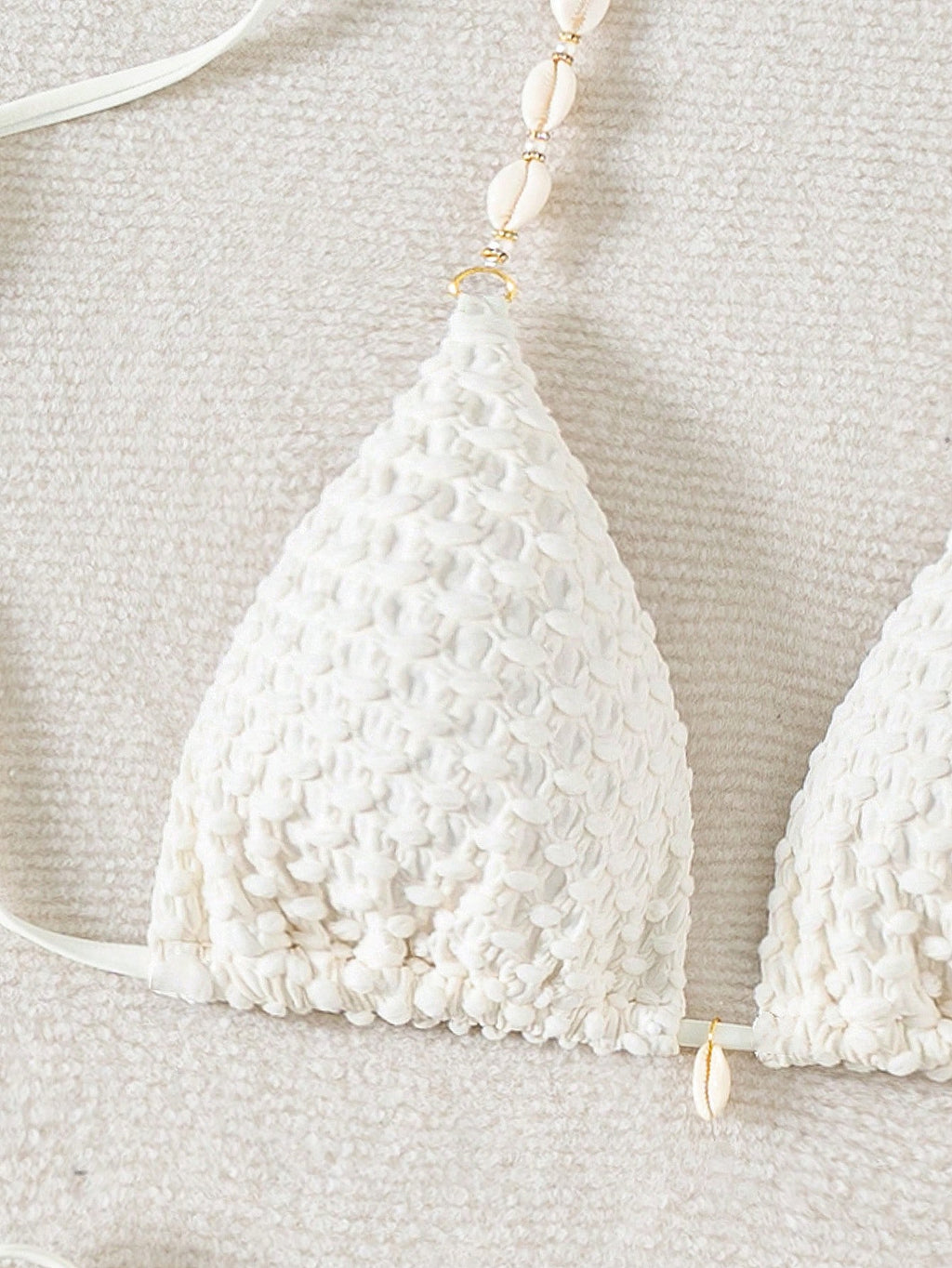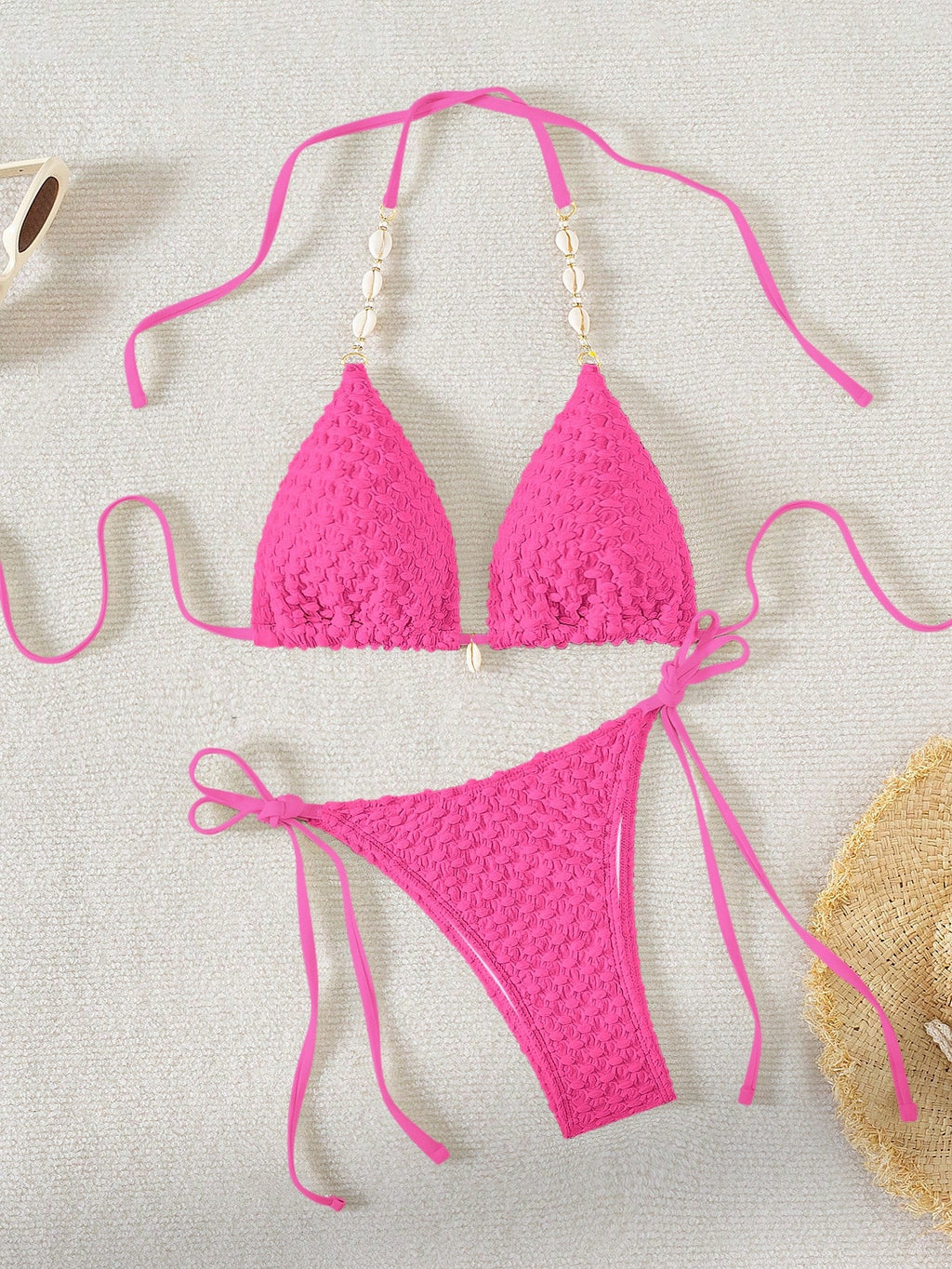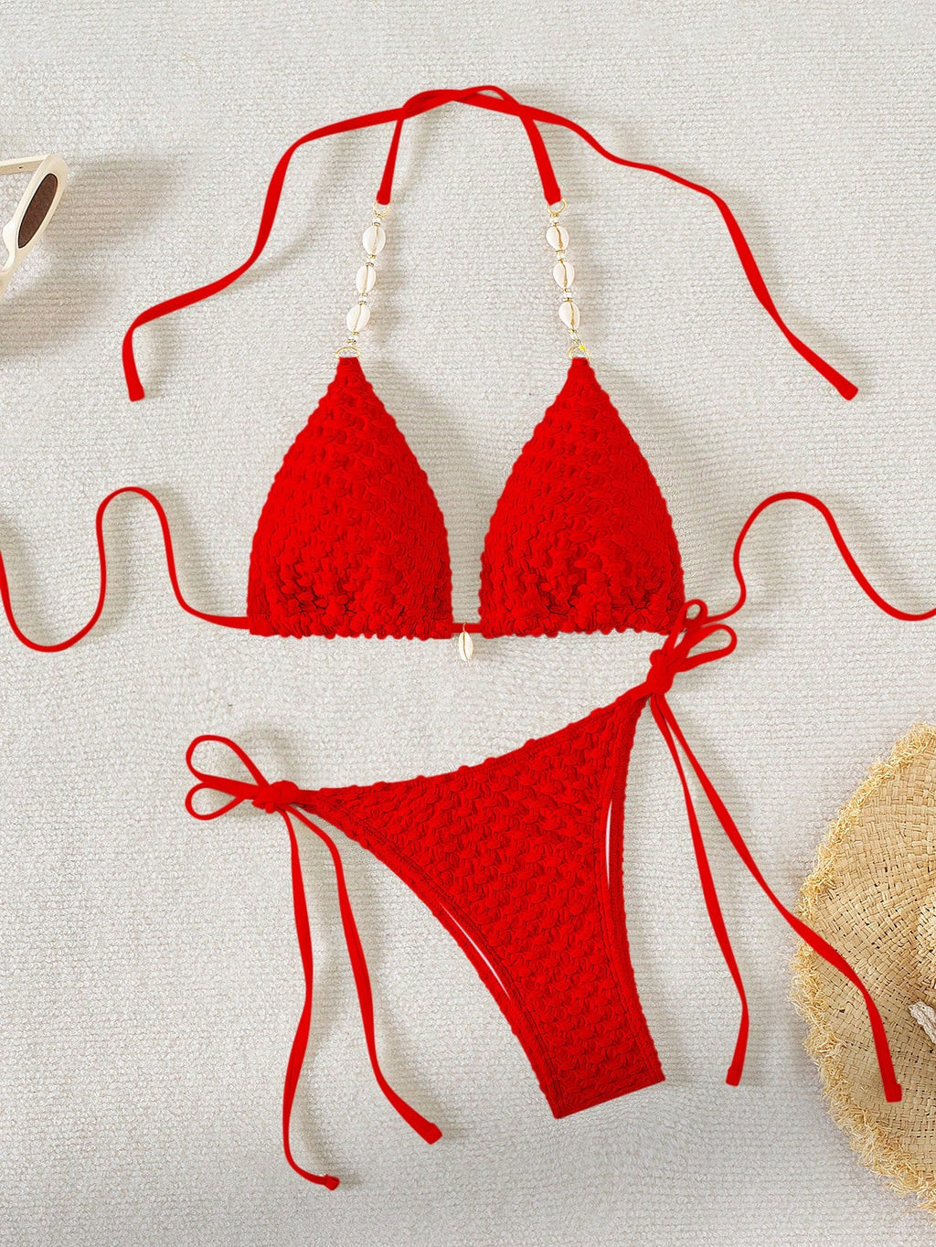Jednobojni teksturirani odvojeni komplet kupaćeg kostima za plažu sa perlama