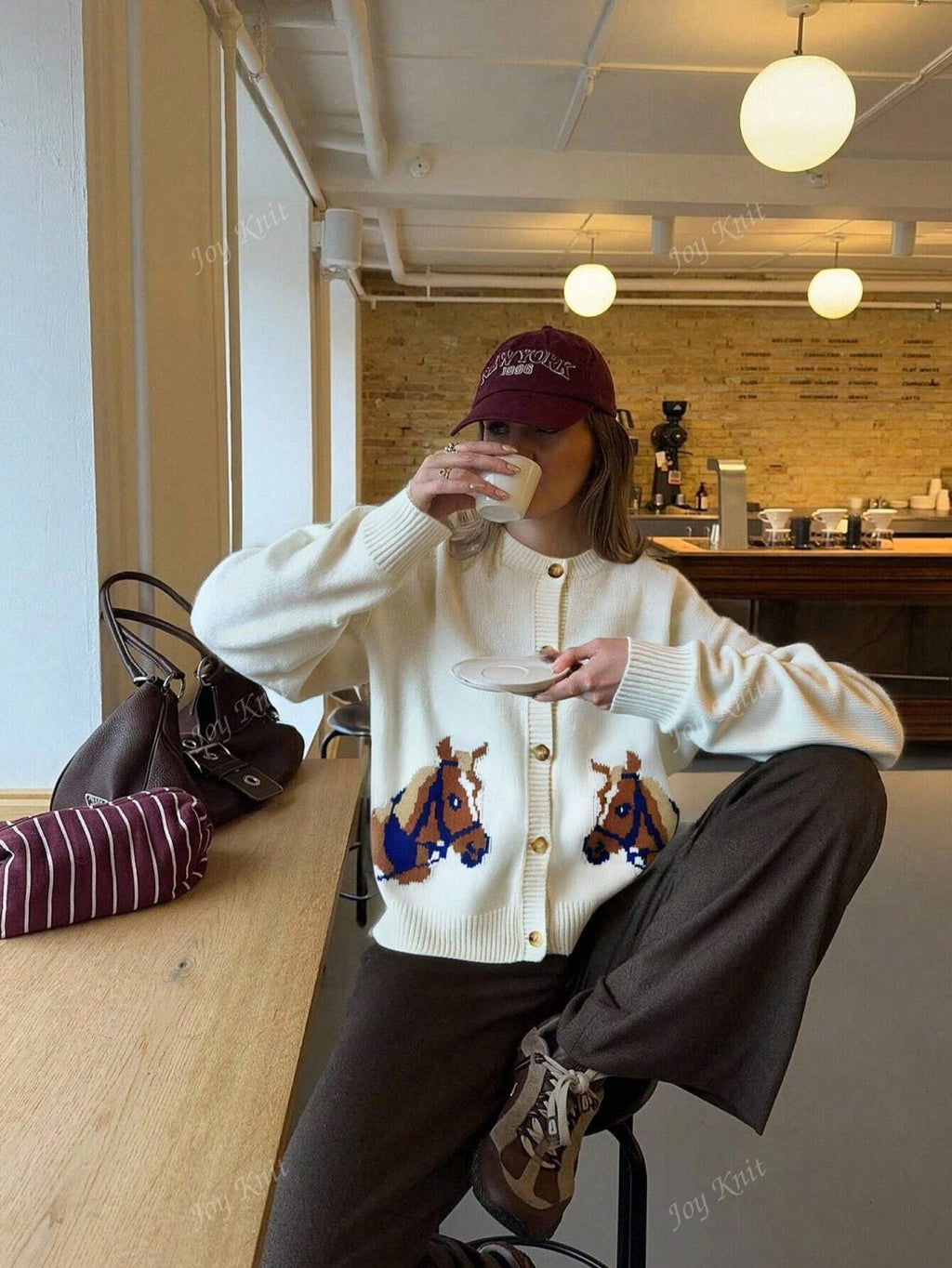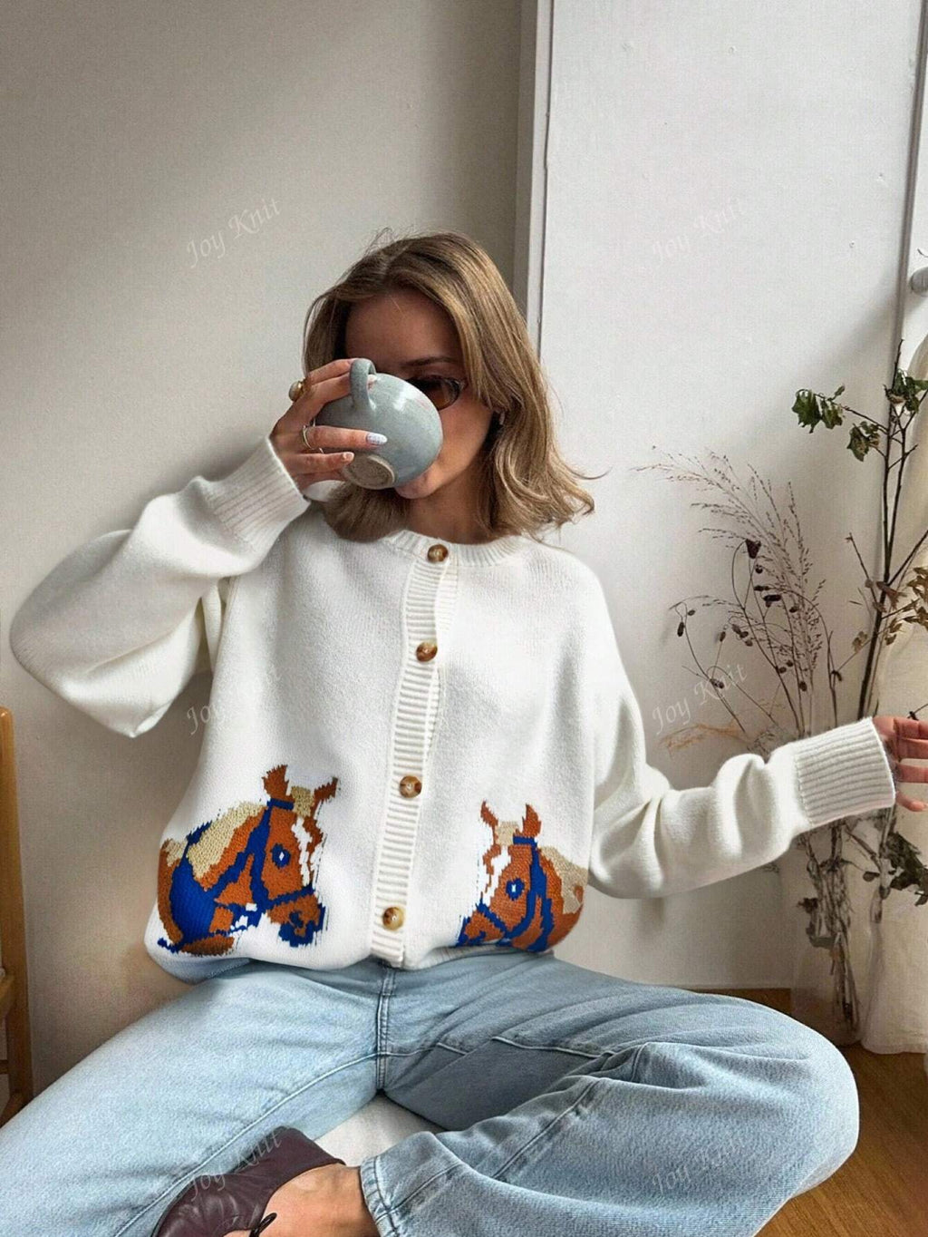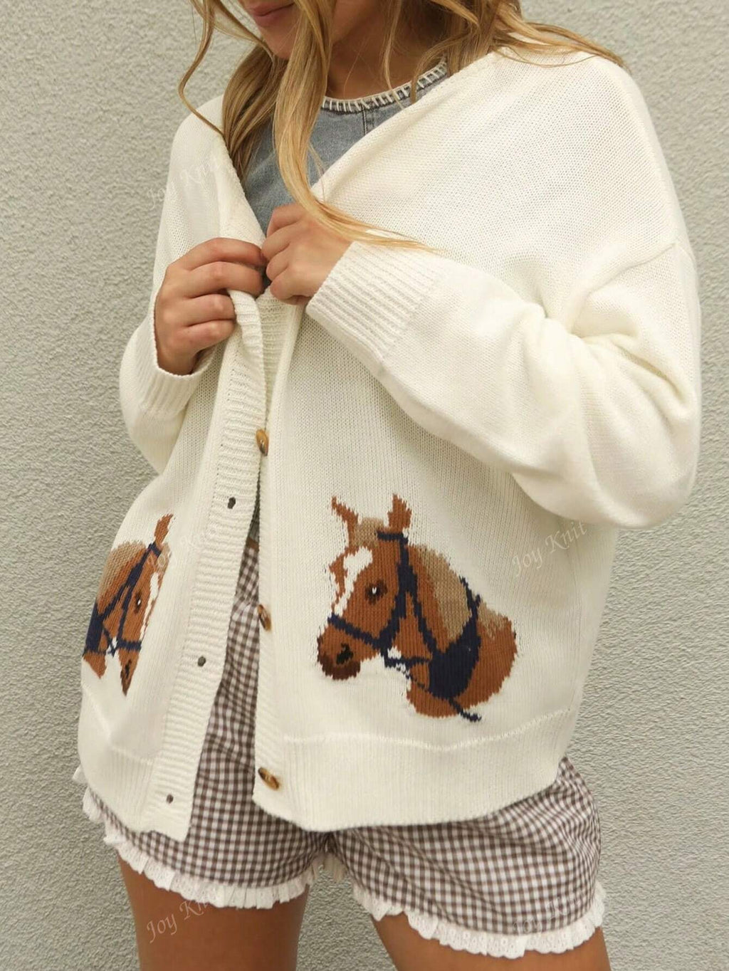 Joy Knit Women's Autumn/Winter Sweater New Arrival - All-Match Tops - Casual Minimalist Fashion Versatile Style - Novelty Horse Intarsia Knit Cardigan Sweater Jacket - Office Outfits For Women - Going Out Tops - Party