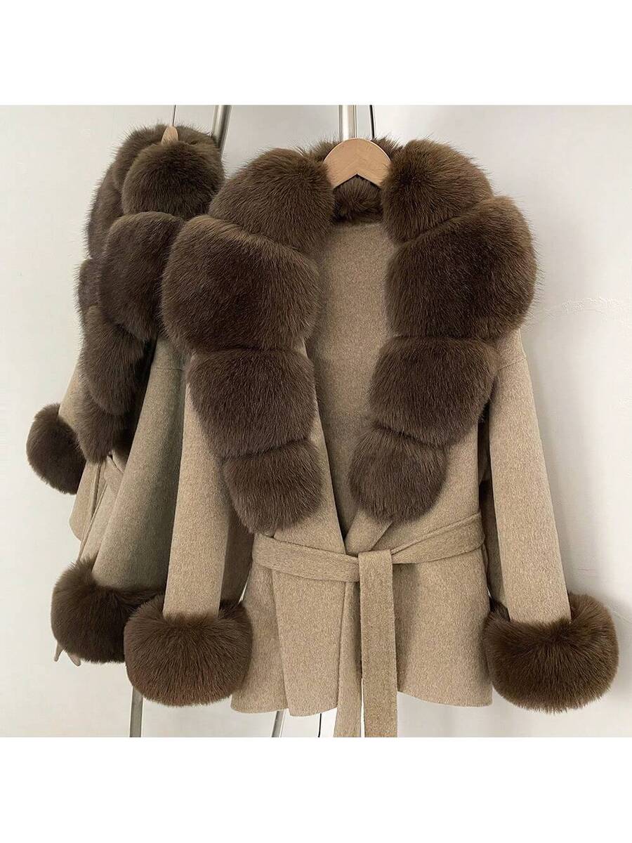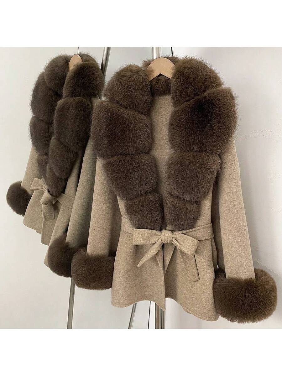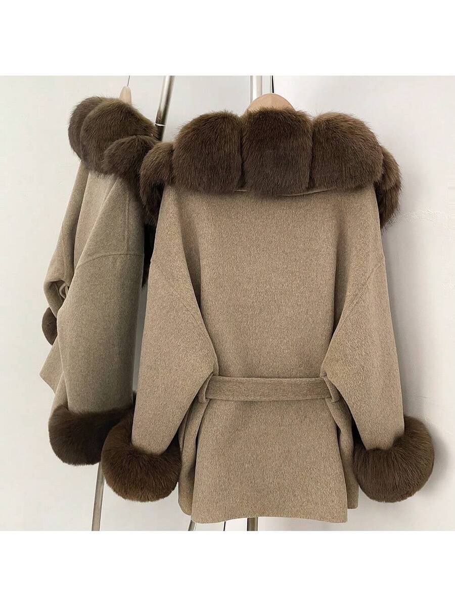 Kaput od 100% Vune s Kragnom i Pojasevima, Casual Ulični Stil za Jesen/Zimu