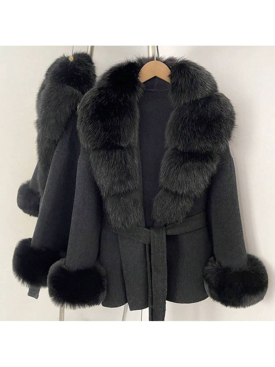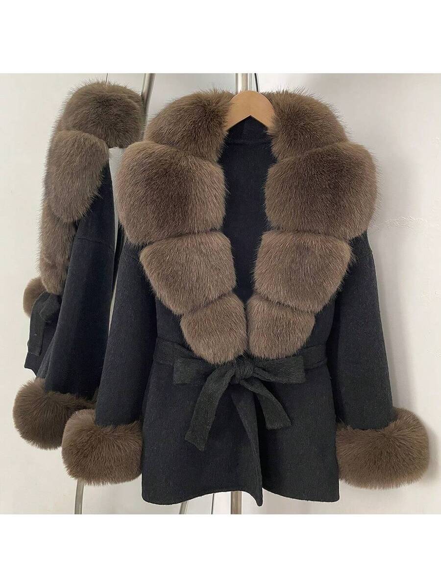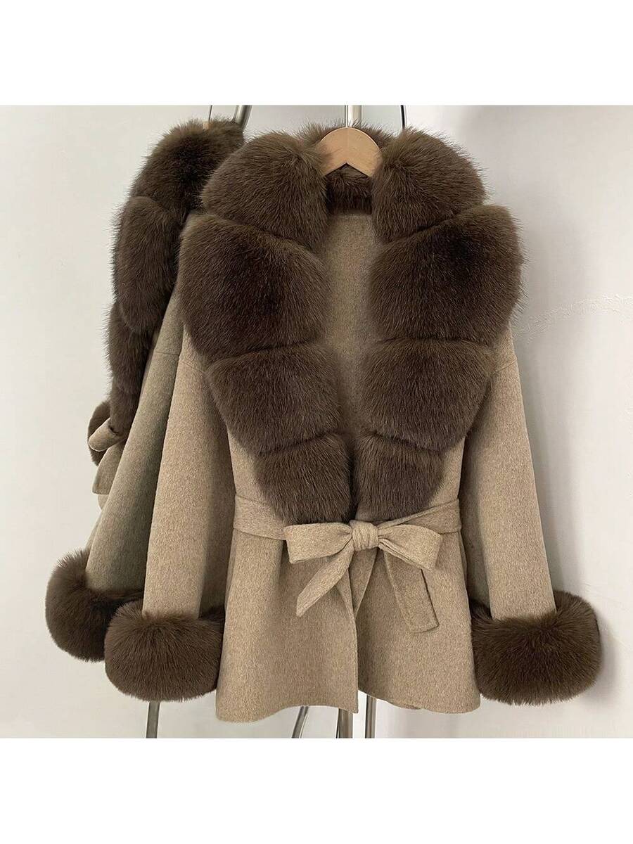 Kaput od 100% Vune s Kragnom i Pojasevima, Casual Ulični Stil za Jesen/Zimu