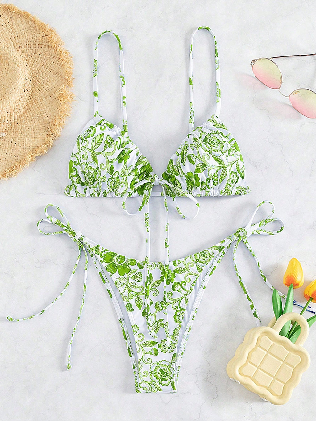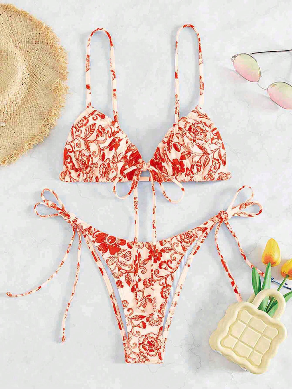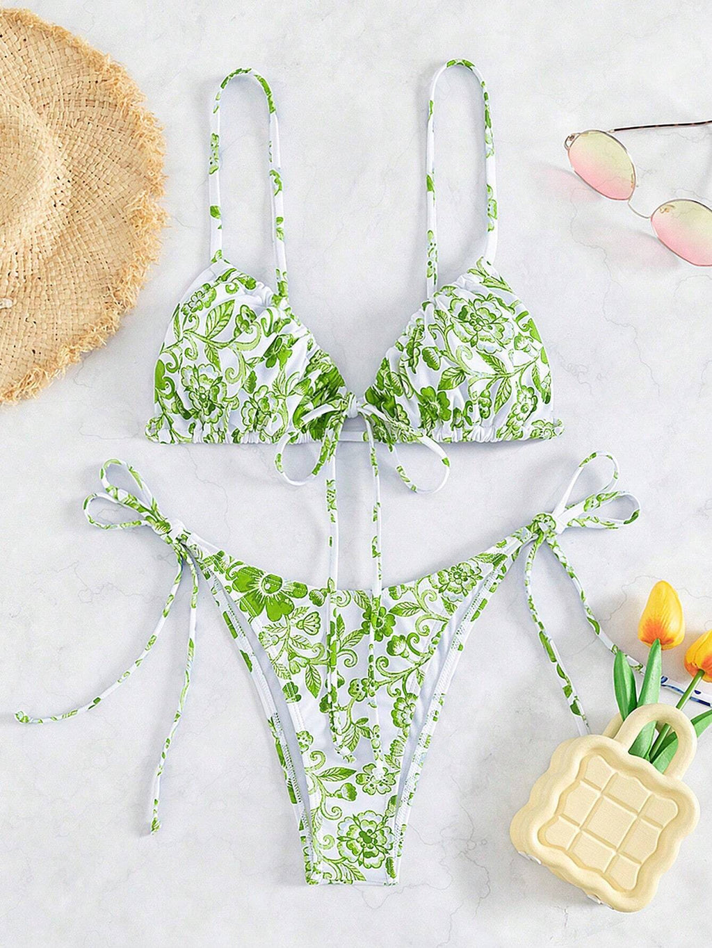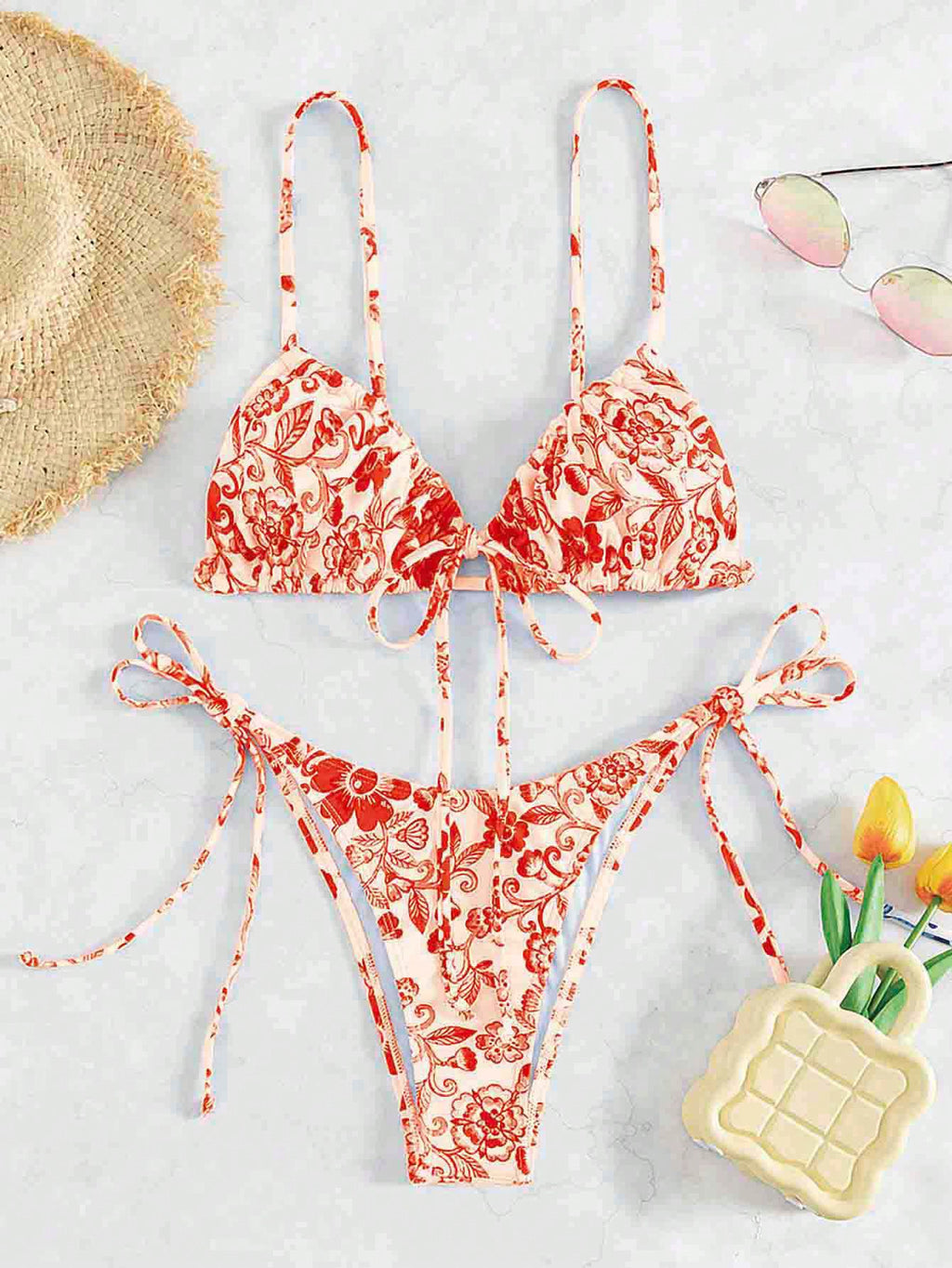 Kupaći kostim s cvjetnim printom i rubovima na vezanje sa strane