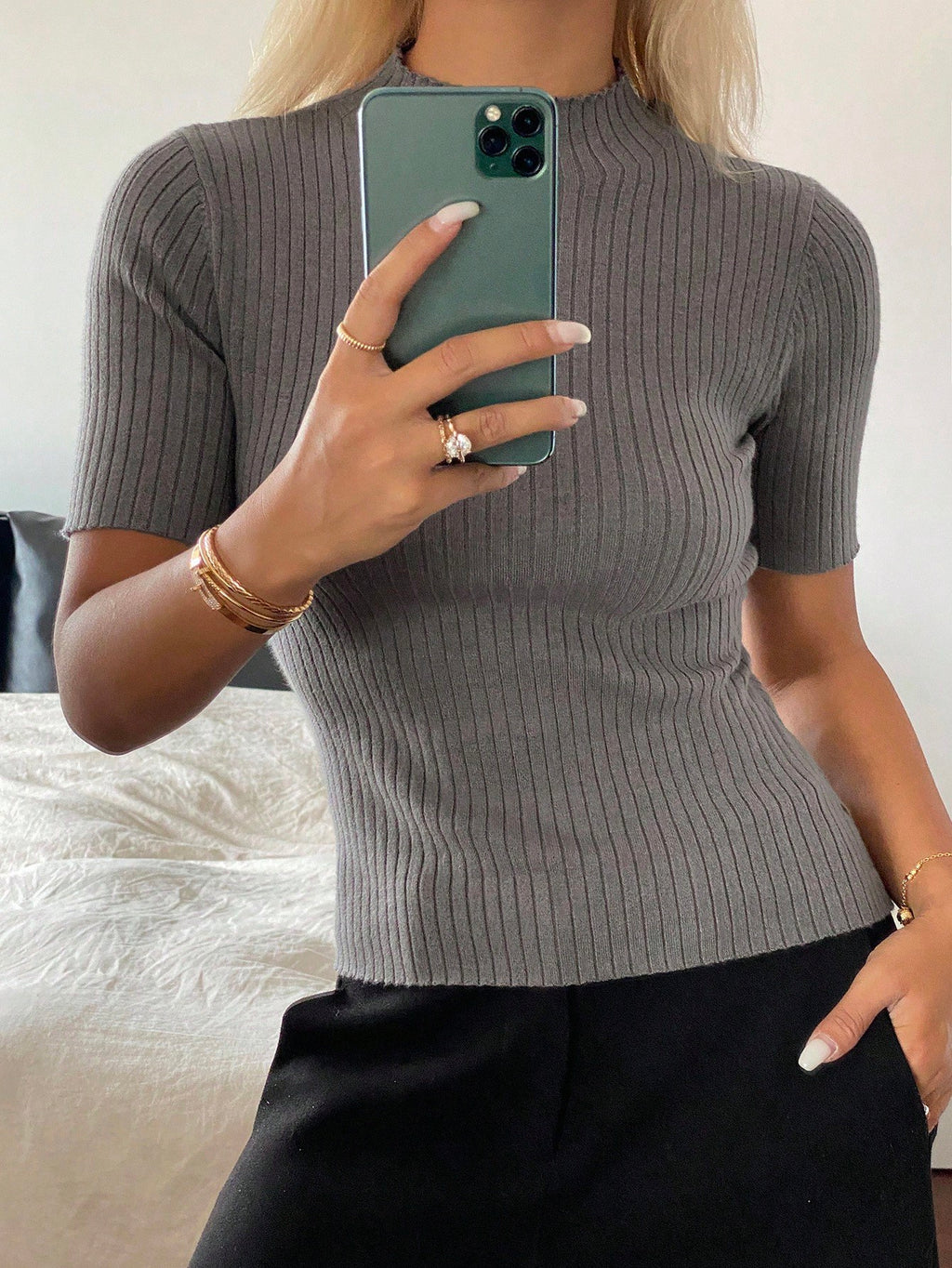 Livesso Livesso Women's Turtleneck Short Sleeve Fitted Solid Color Sweater Fall