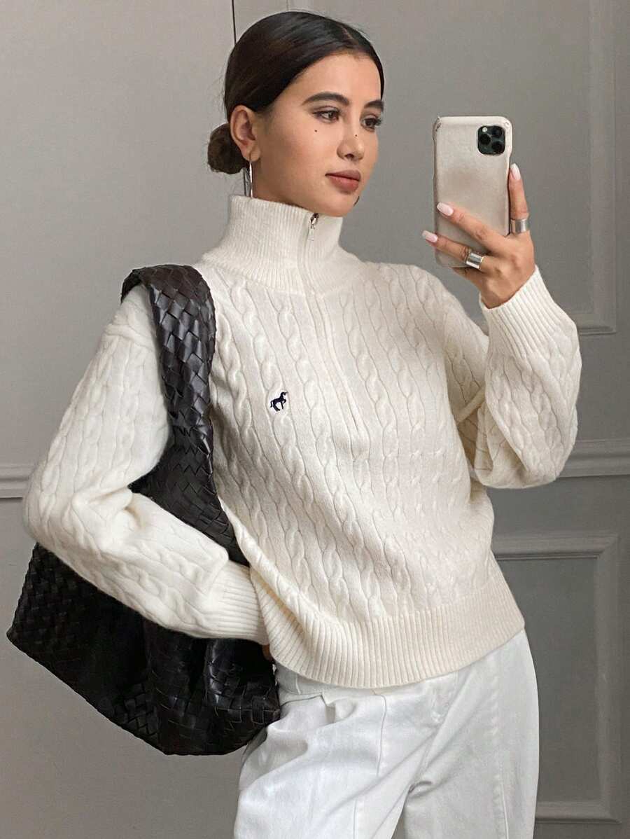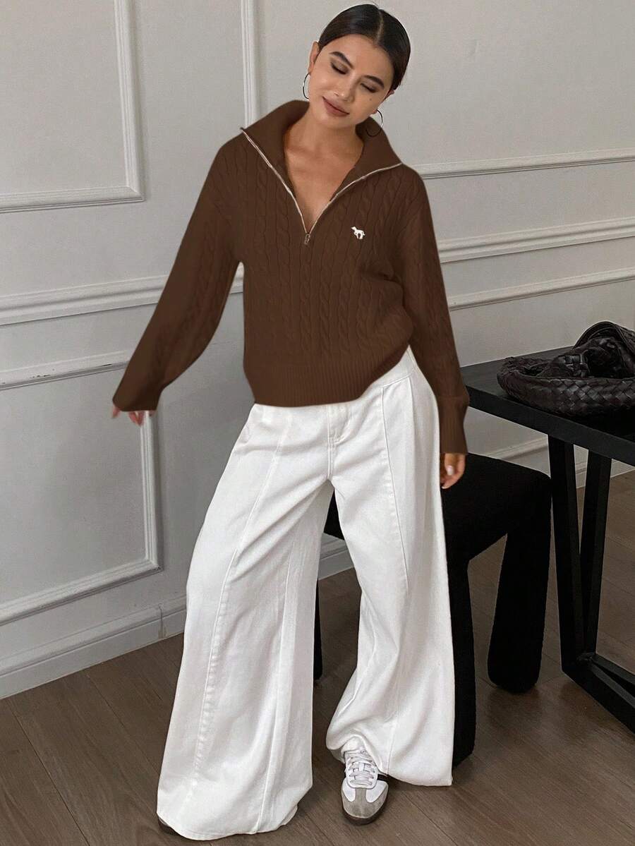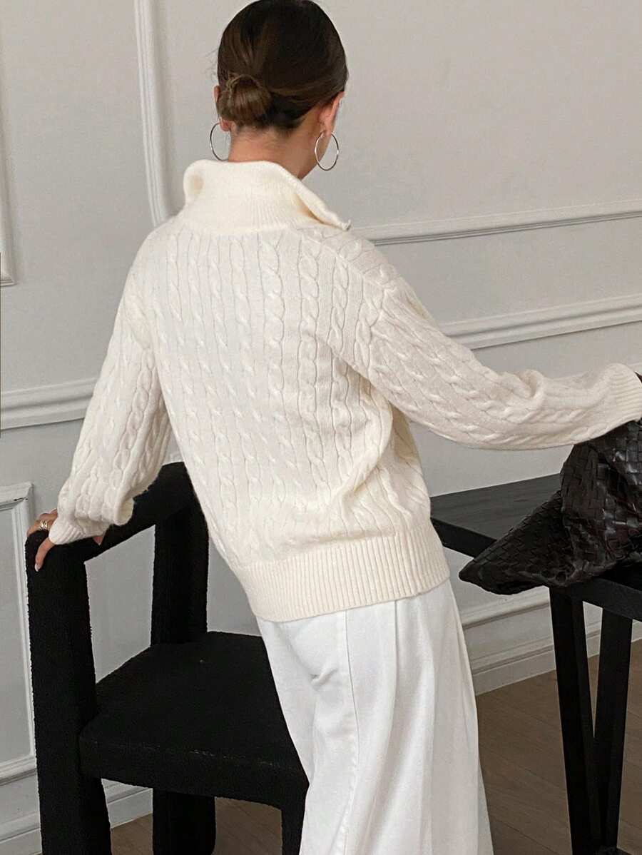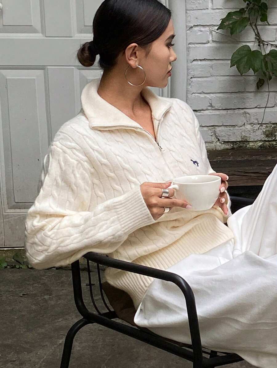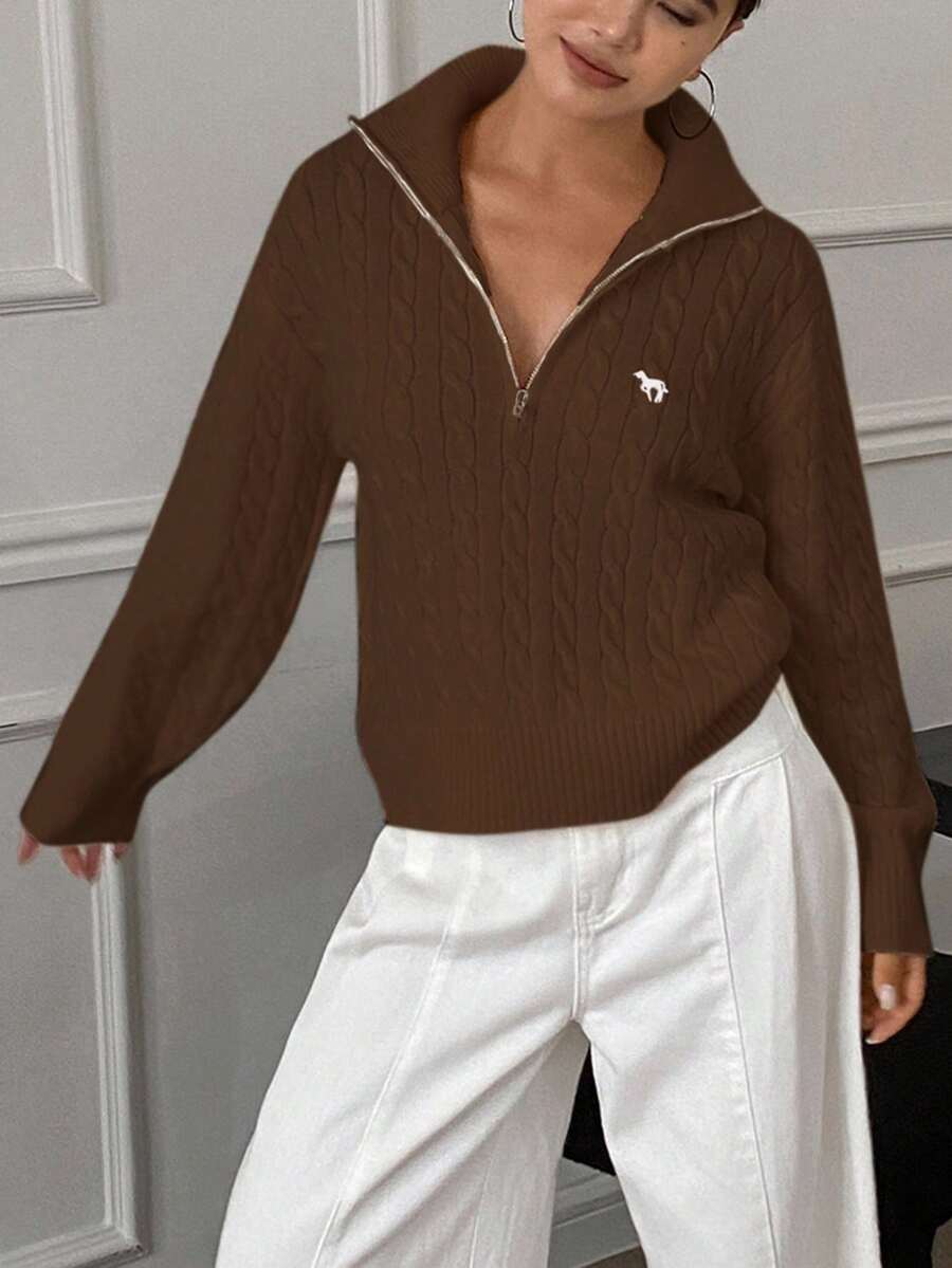 Livesso New Arrival Autumn Half-Zip Loose Casual Women Sweater