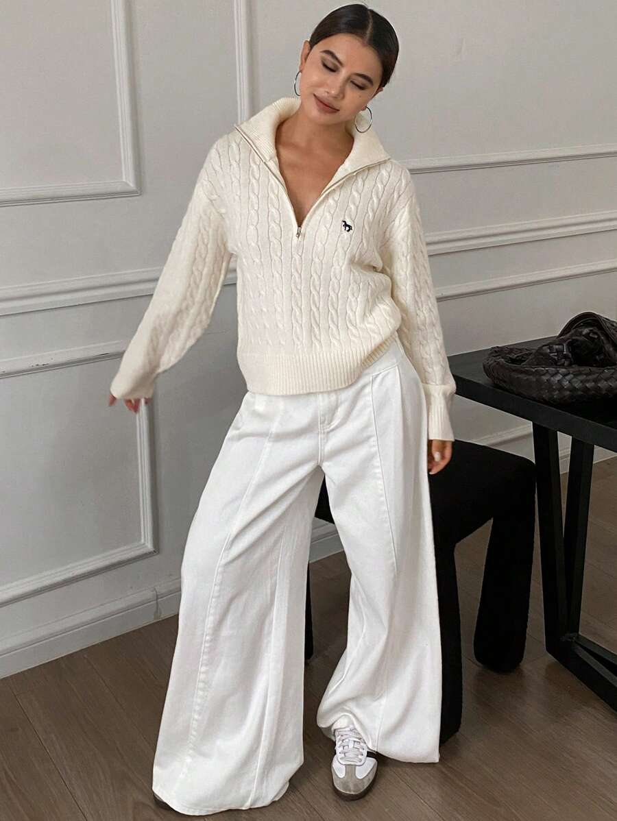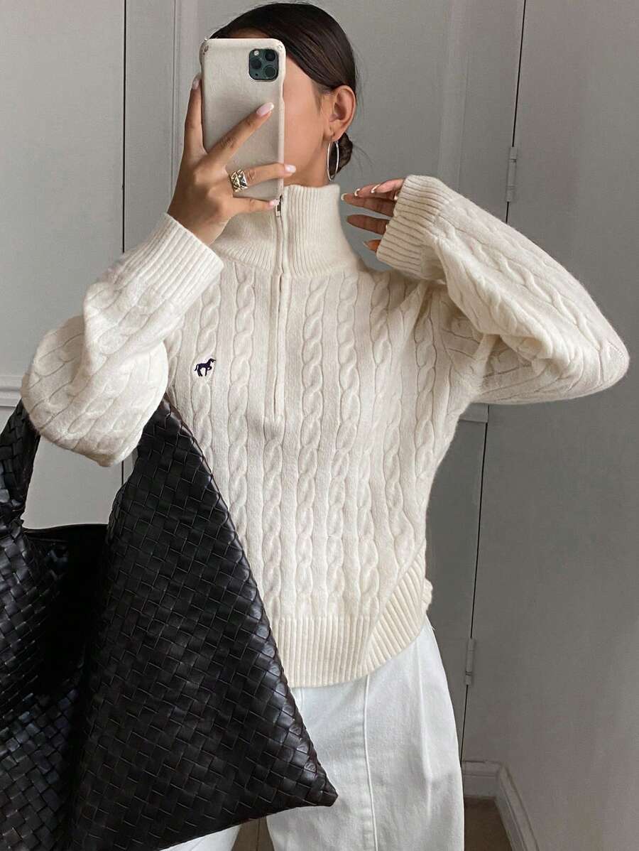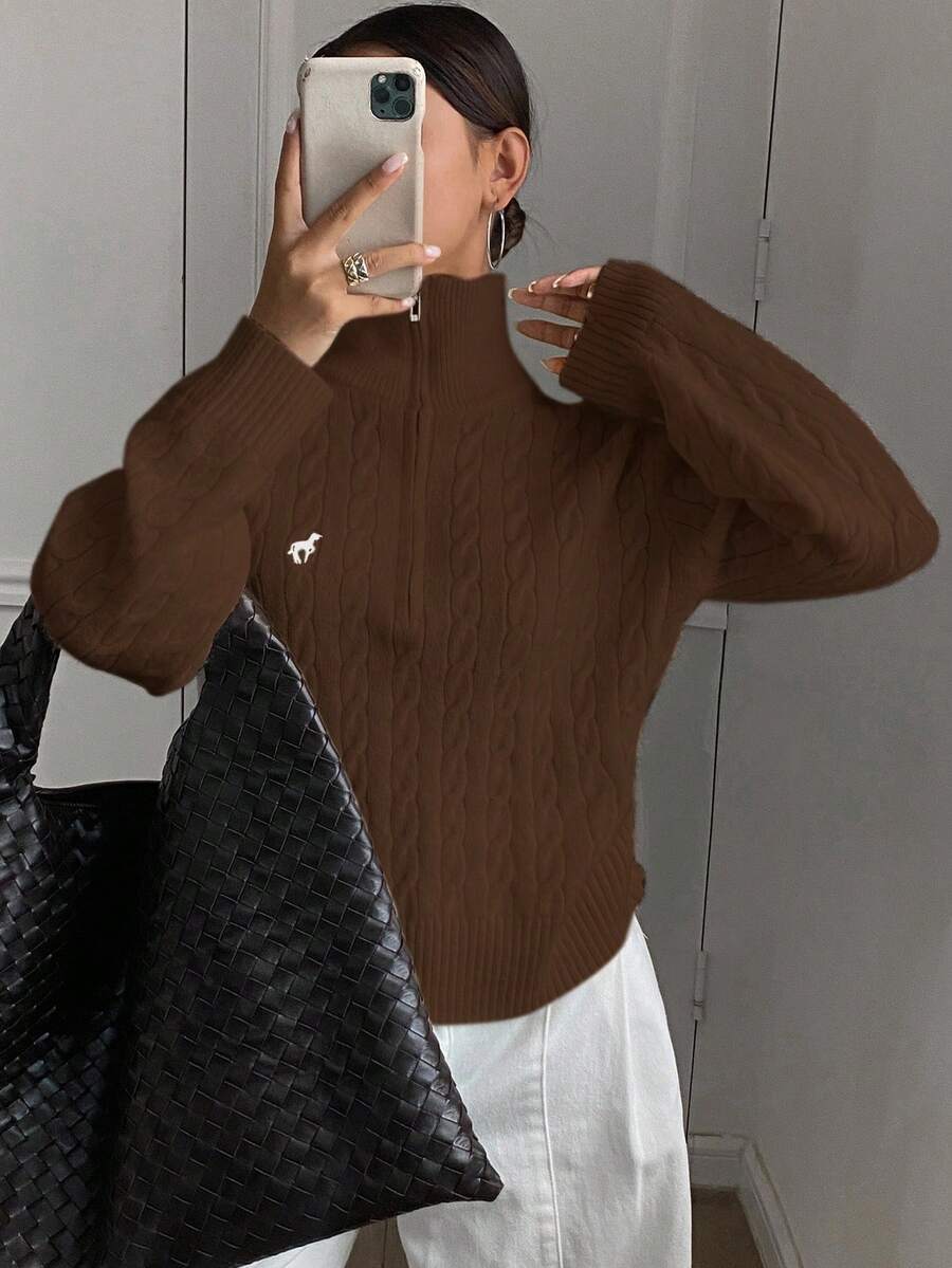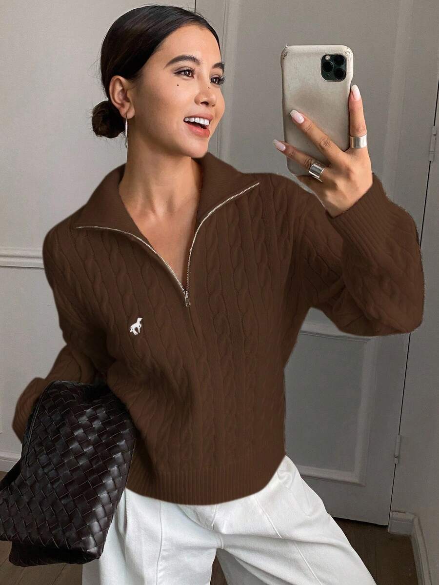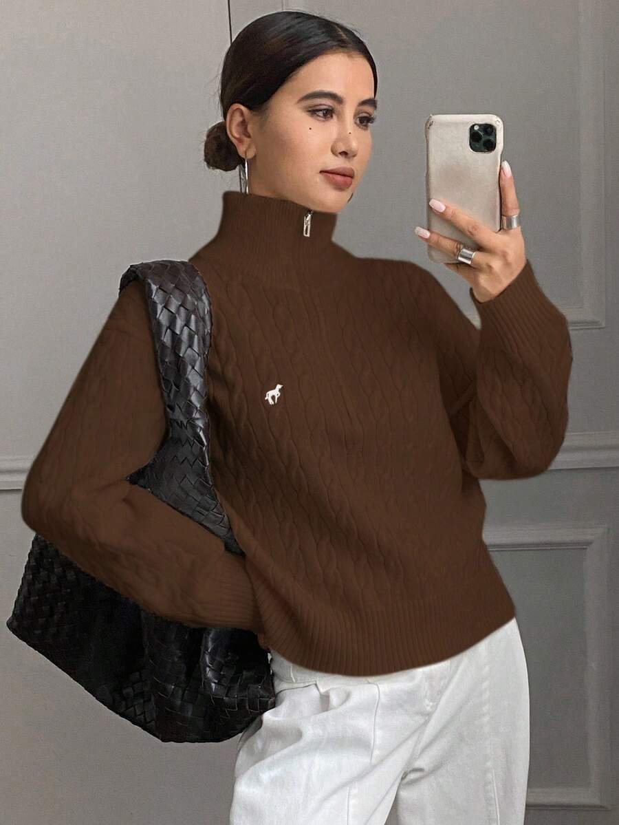 Livesso New Arrival Autumn Half-Zip Loose Casual Women Sweater