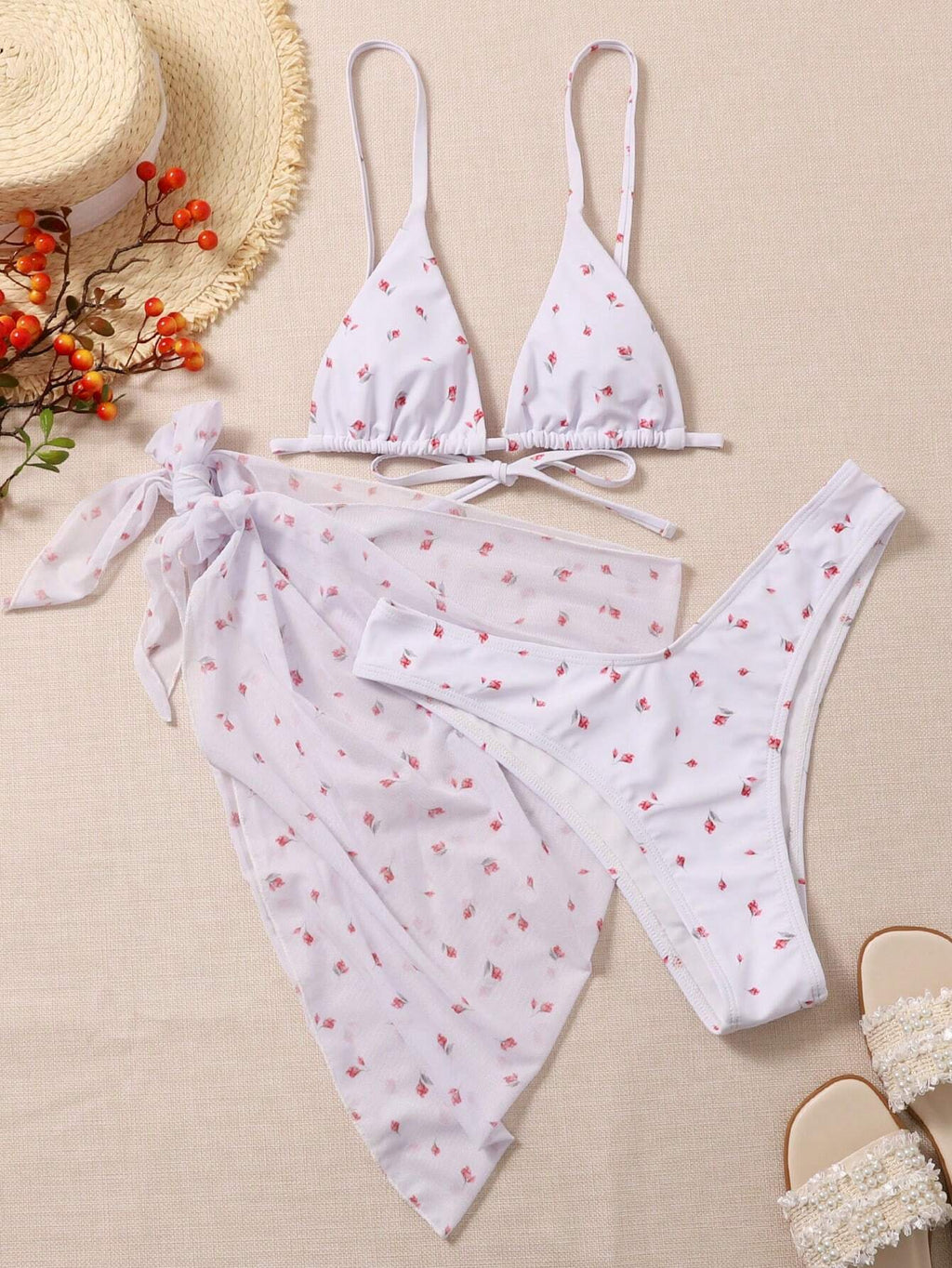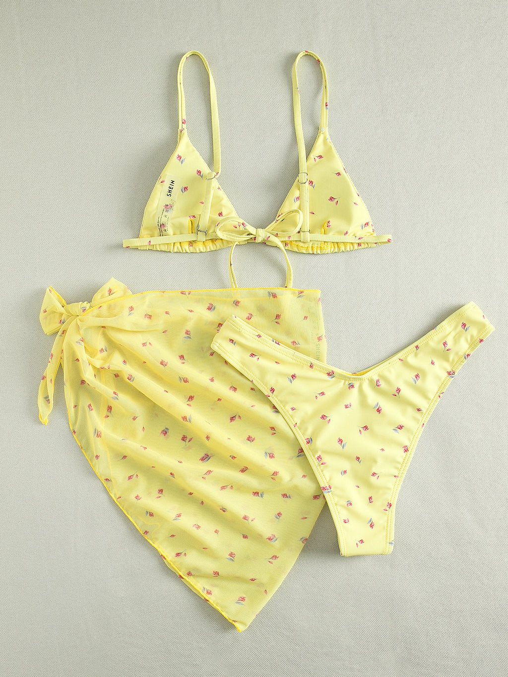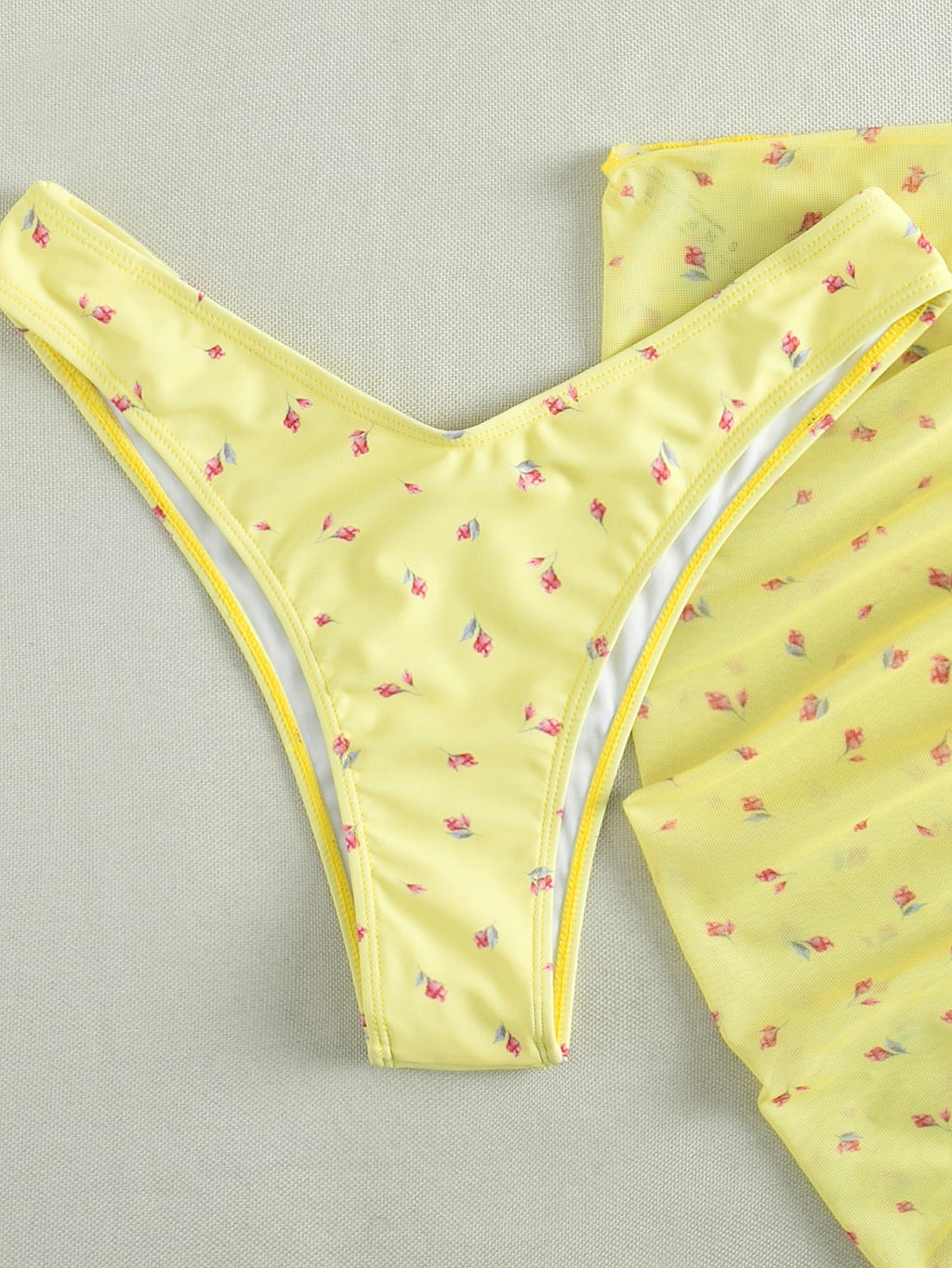 Ljetni cvjetni bikini set s trokutastim grudnjakom i visokim donjim izrezom