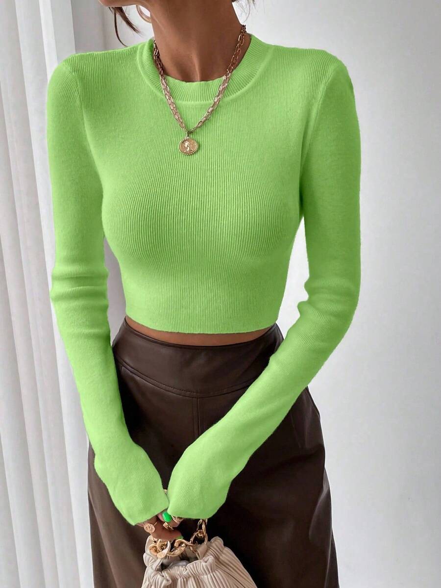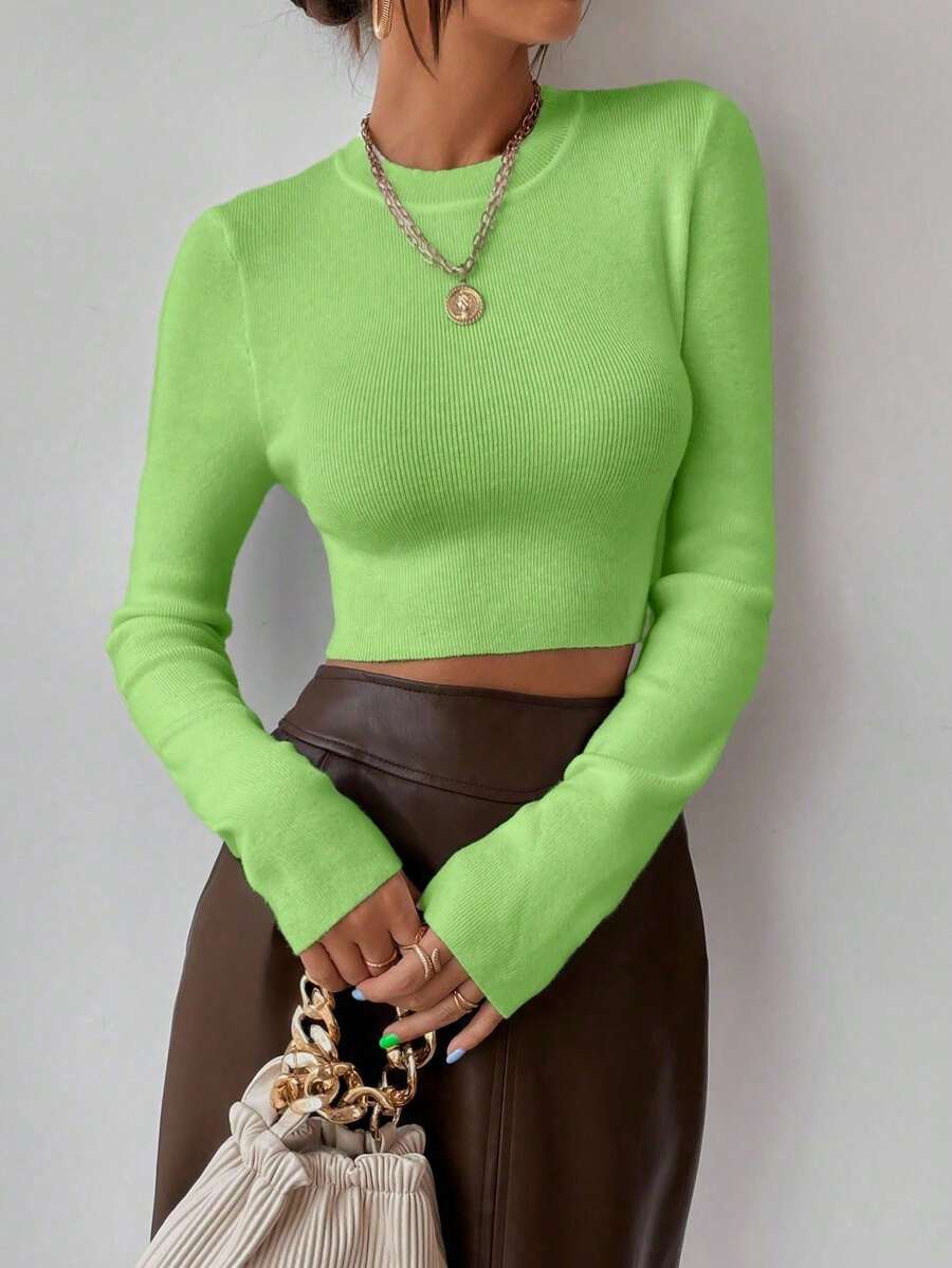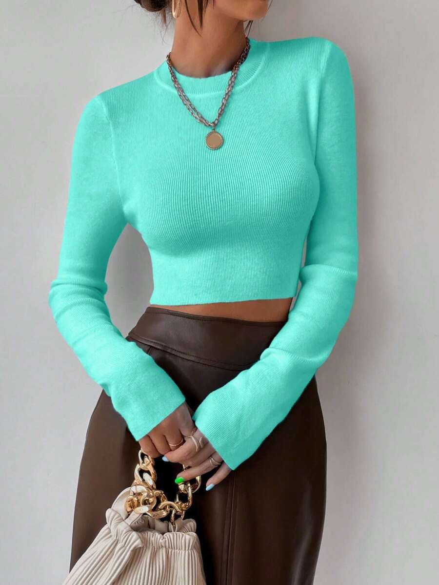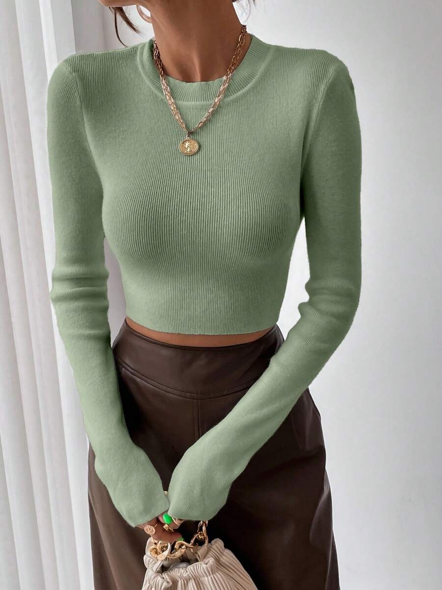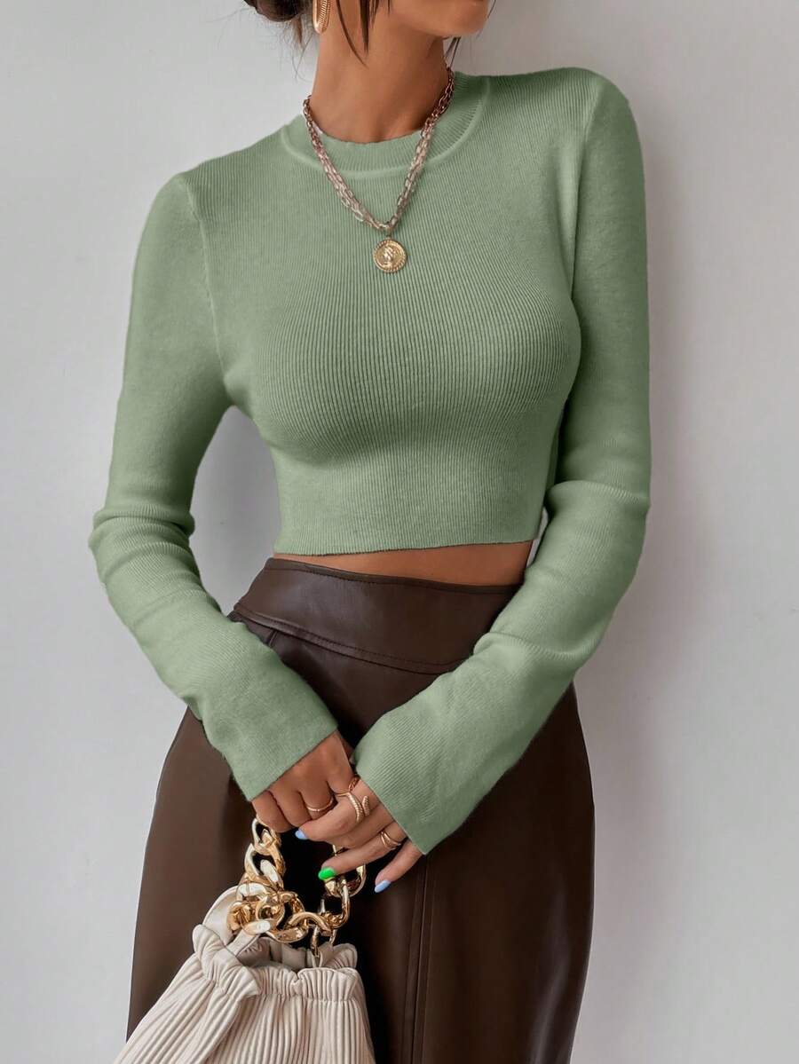 Lumivelle Women's Solid Color Crew Neck Long Sleeve Casual Pullover Sweater Knit Pullover Fall Winter Outfit