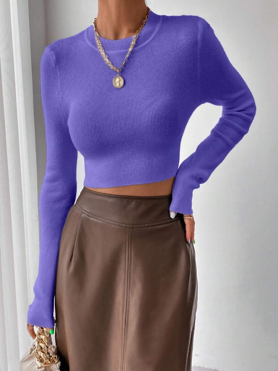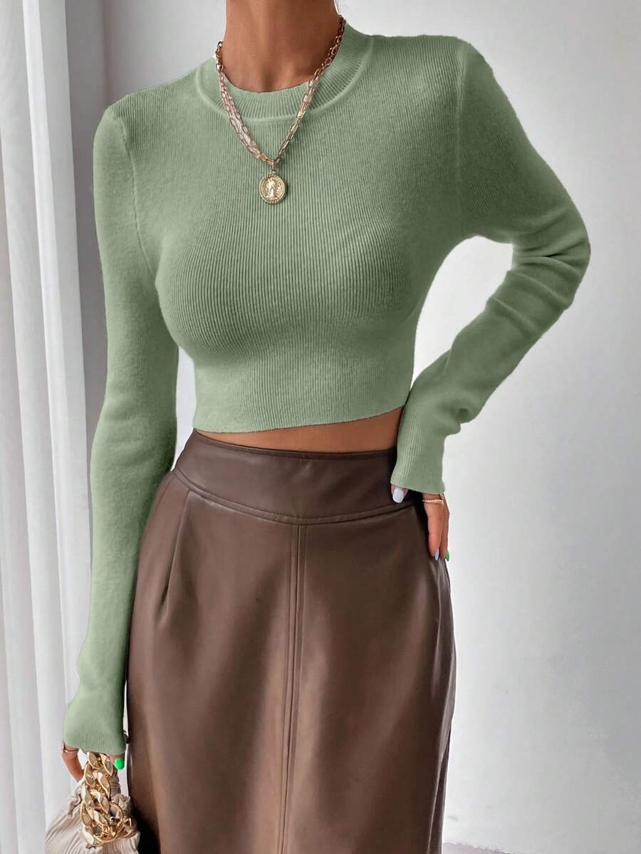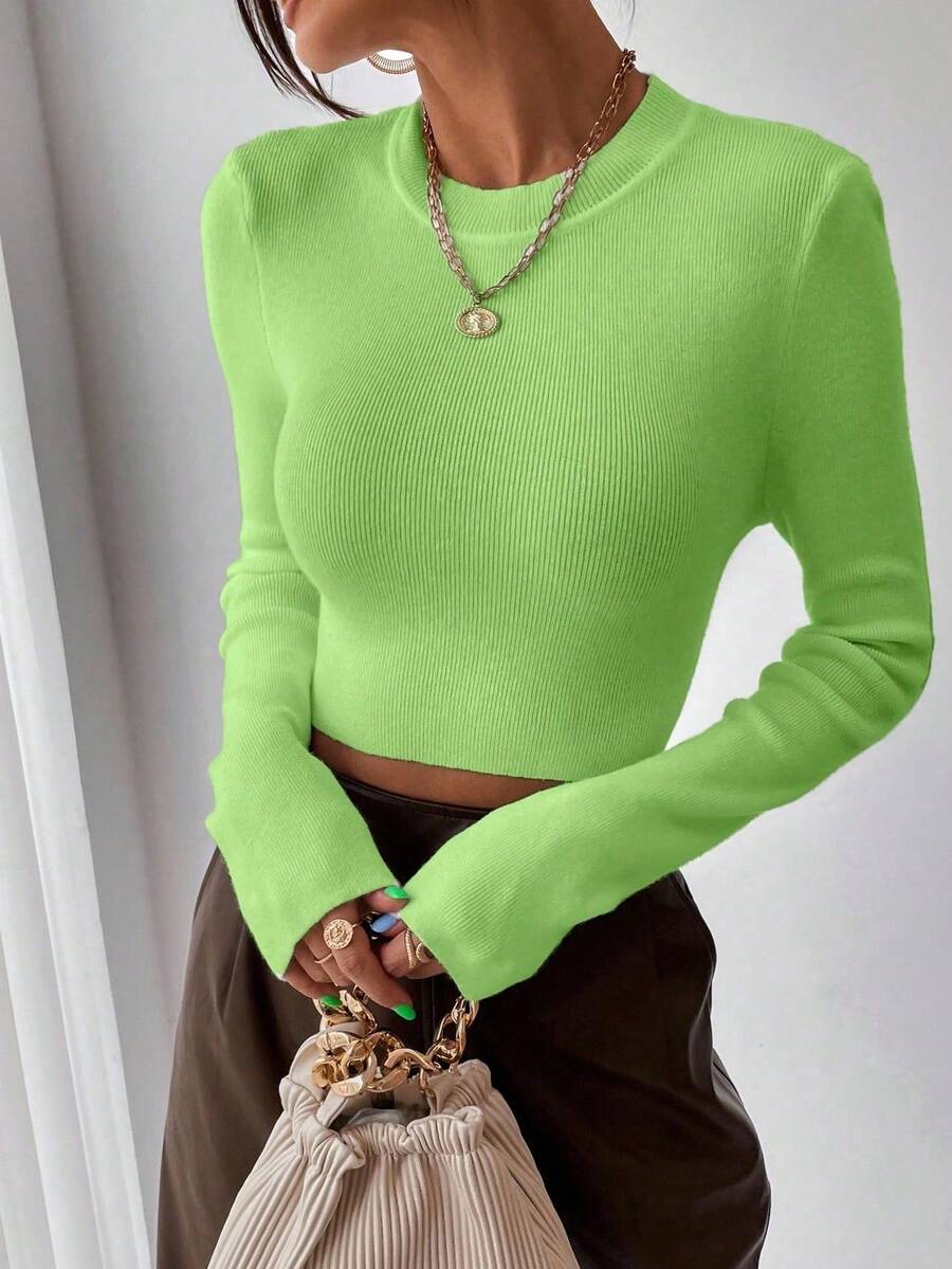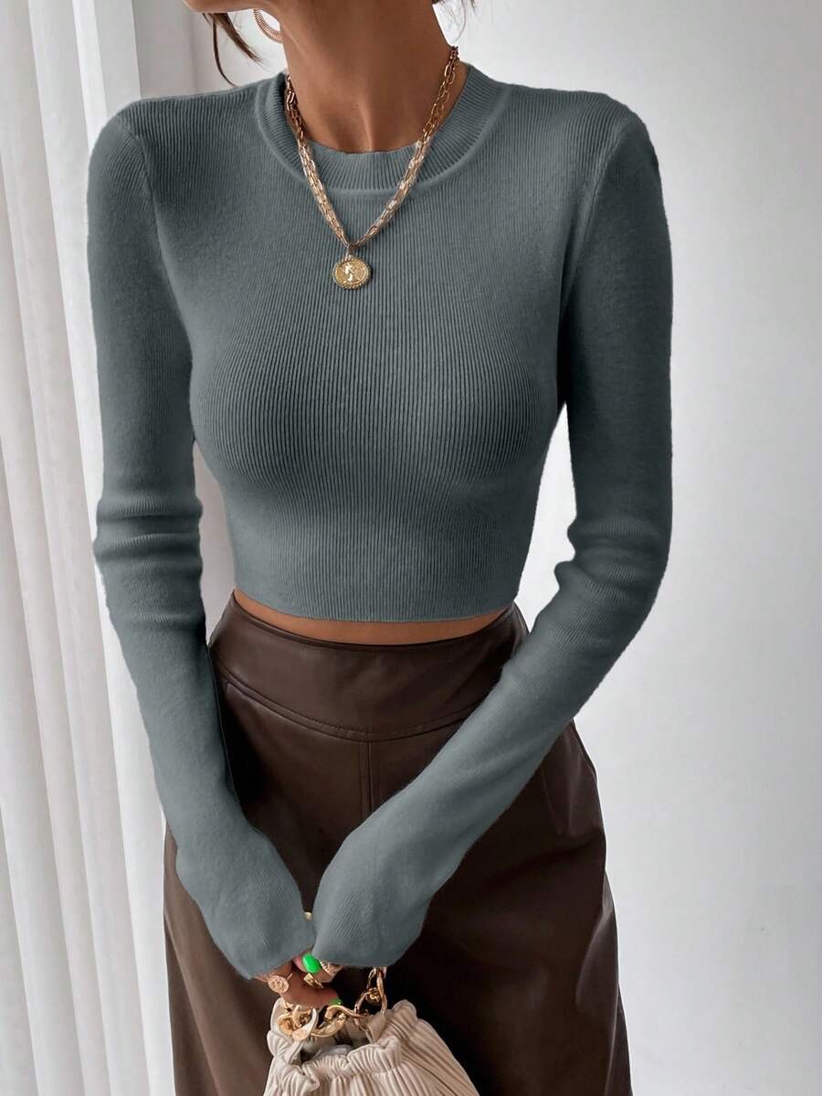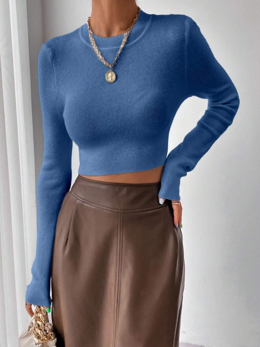 Lumivelle Women's Solid Color Crew Neck Long Sleeve Casual Pullover Sweater Knit Pullover Fall Winter Outfit