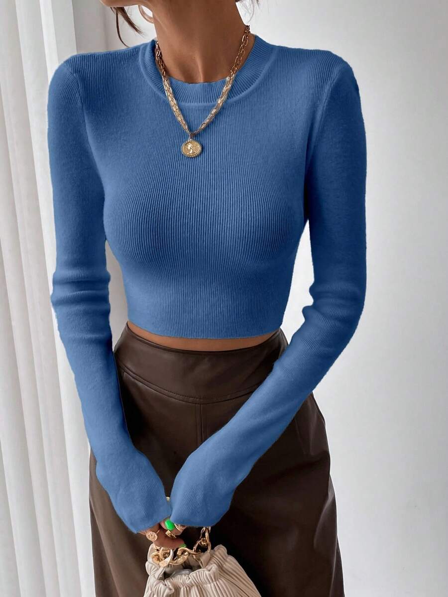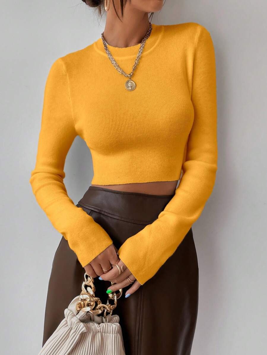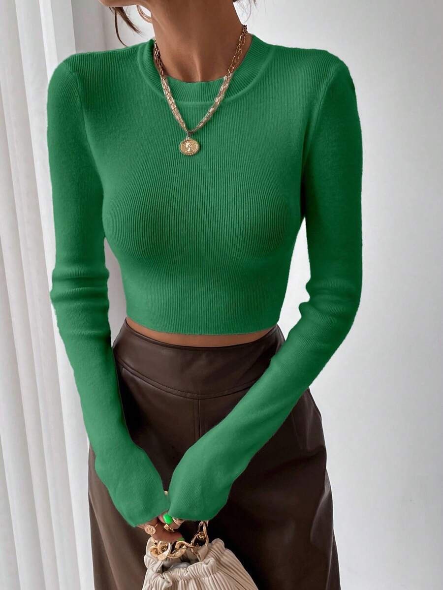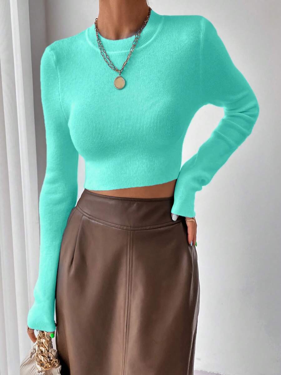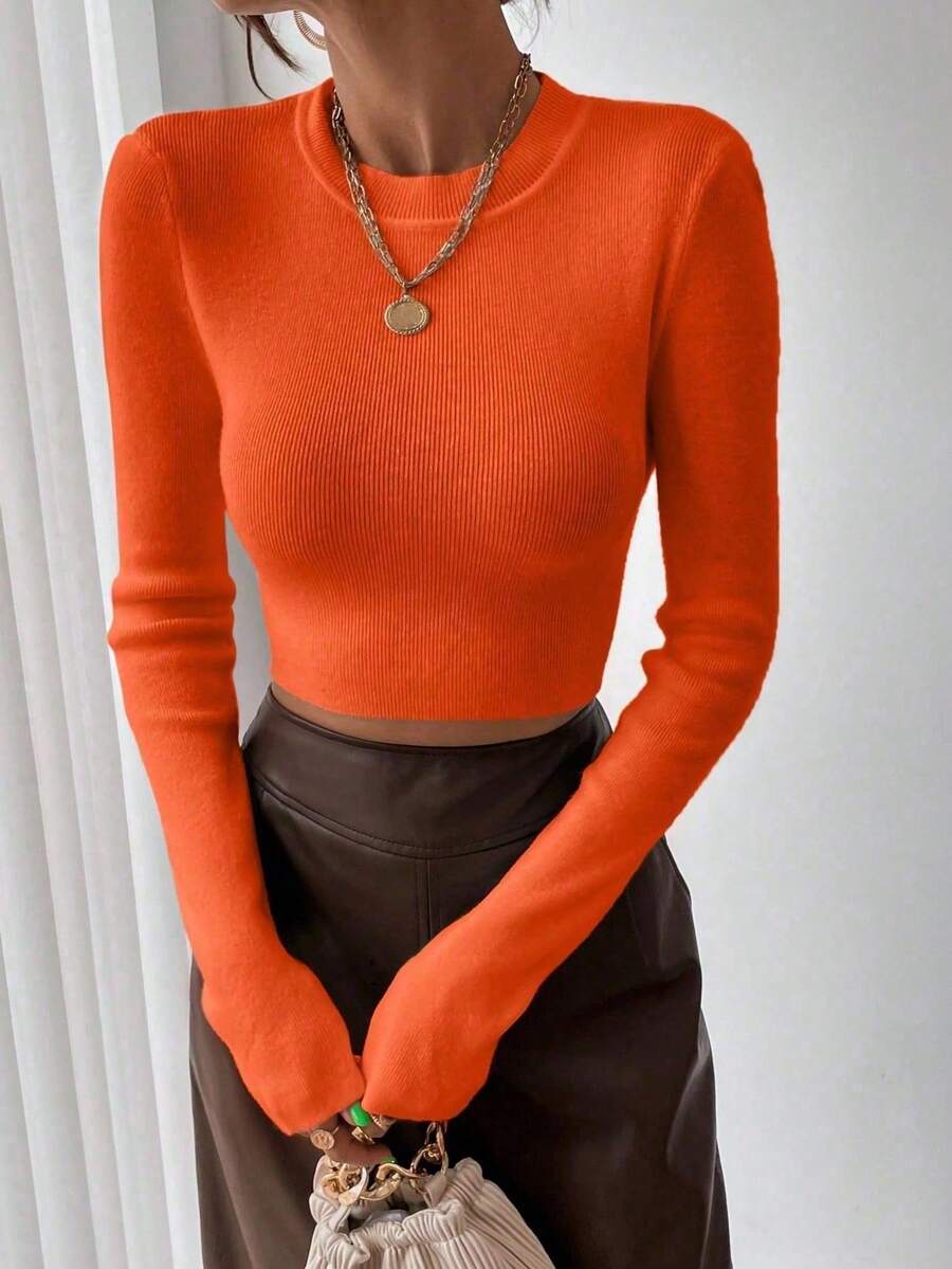 Lumivelle Women's Solid Color Crew Neck Long Sleeve Casual Pullover Sweater Knit Pullover Fall Winter Outfit