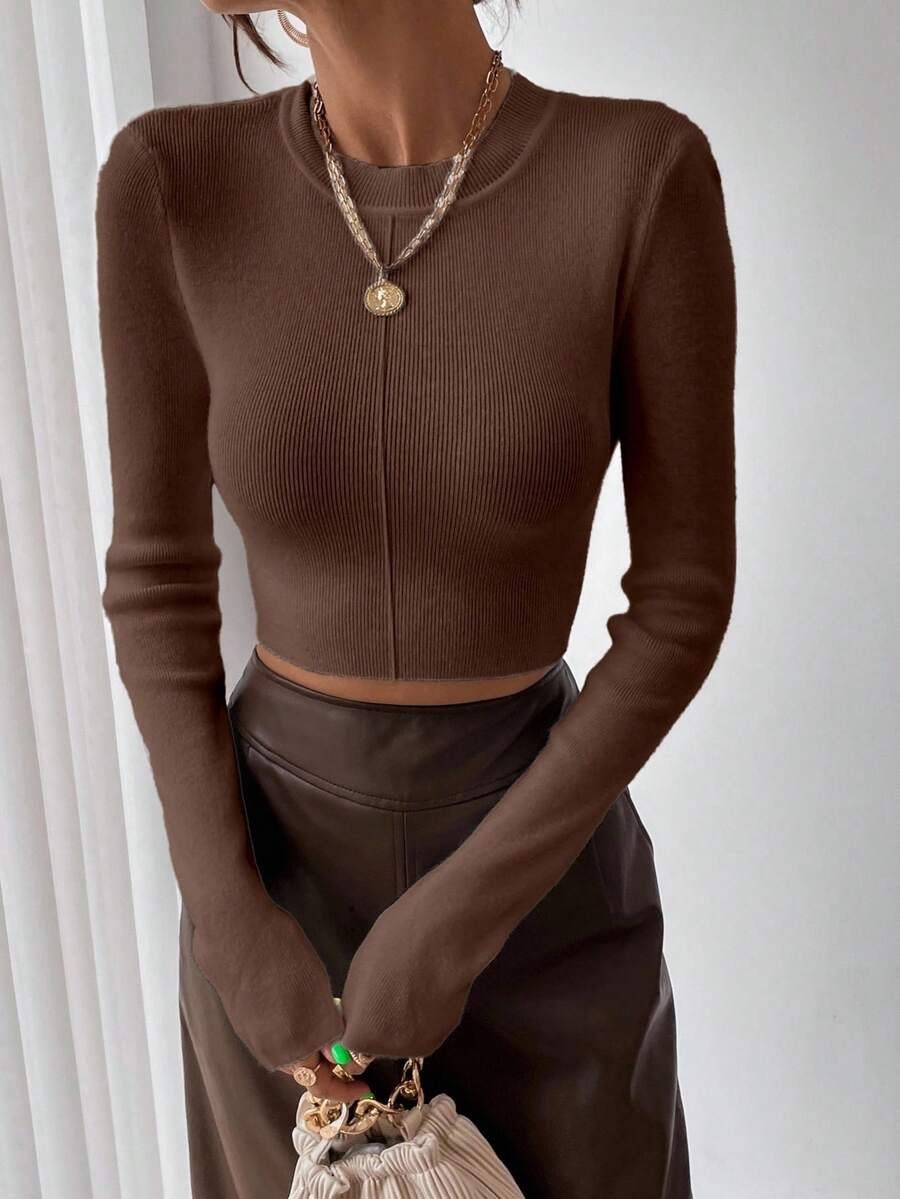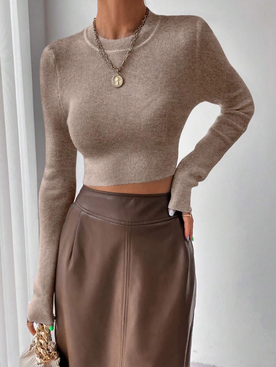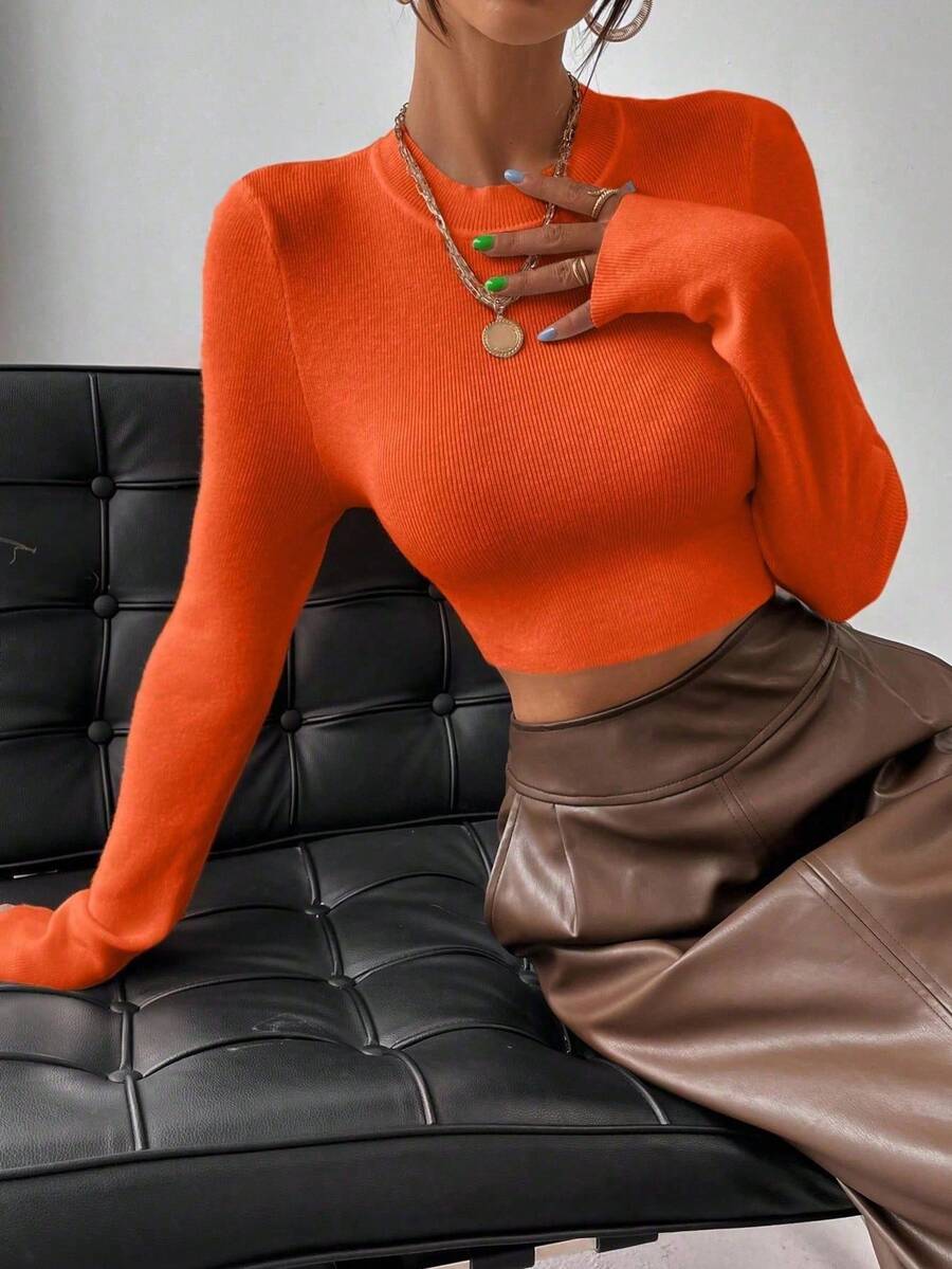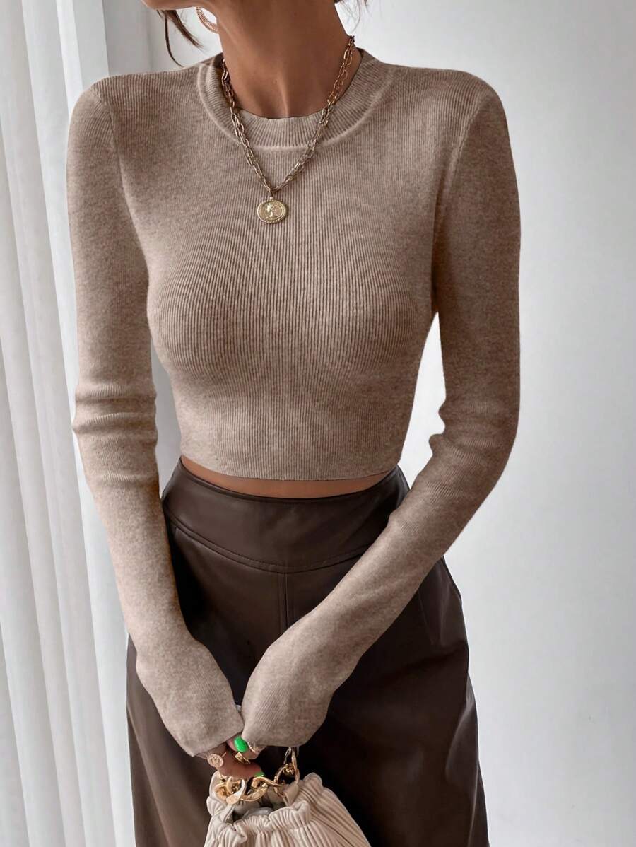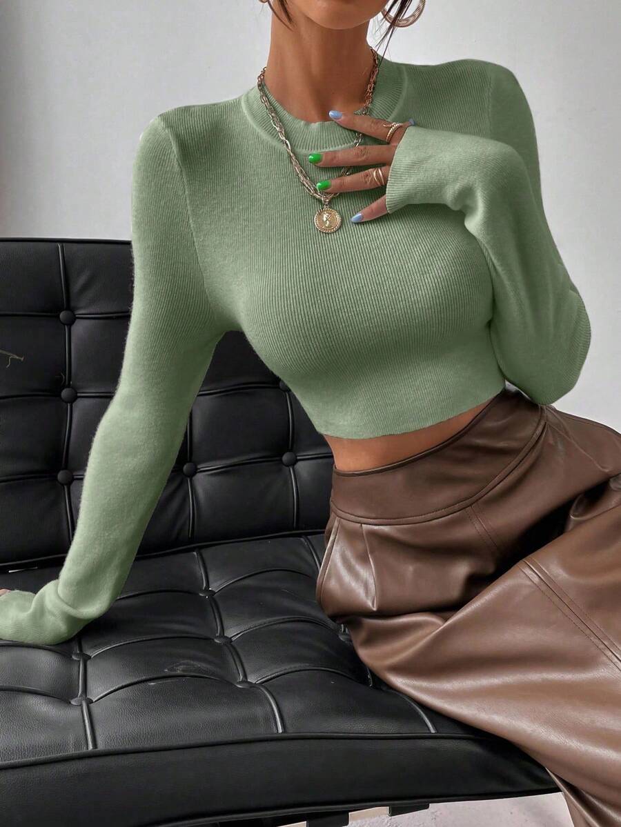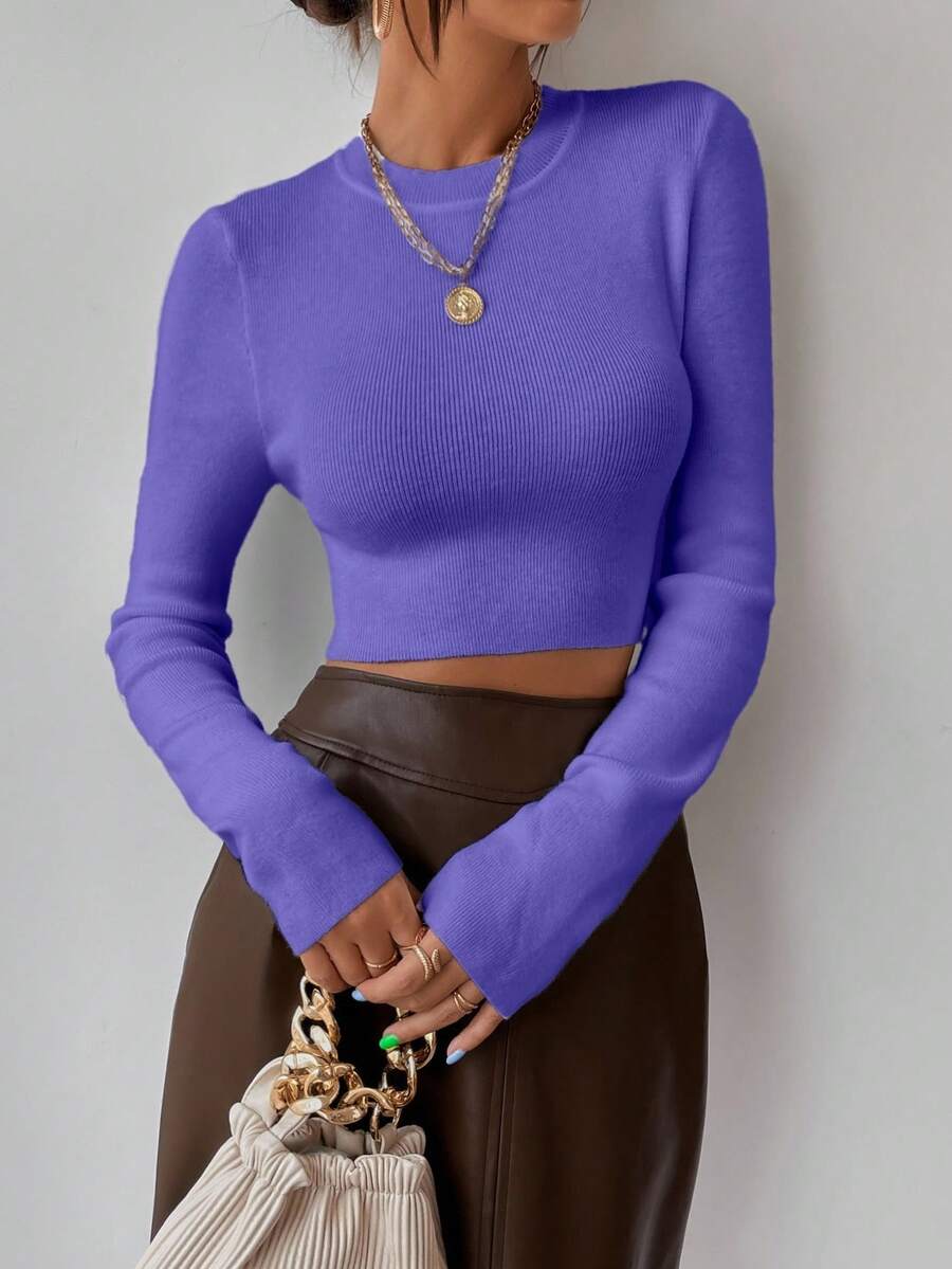 Lumivelle Women's Solid Color Crew Neck Long Sleeve Casual Pullover Sweater Knit Pullover Fall Winter Outfit